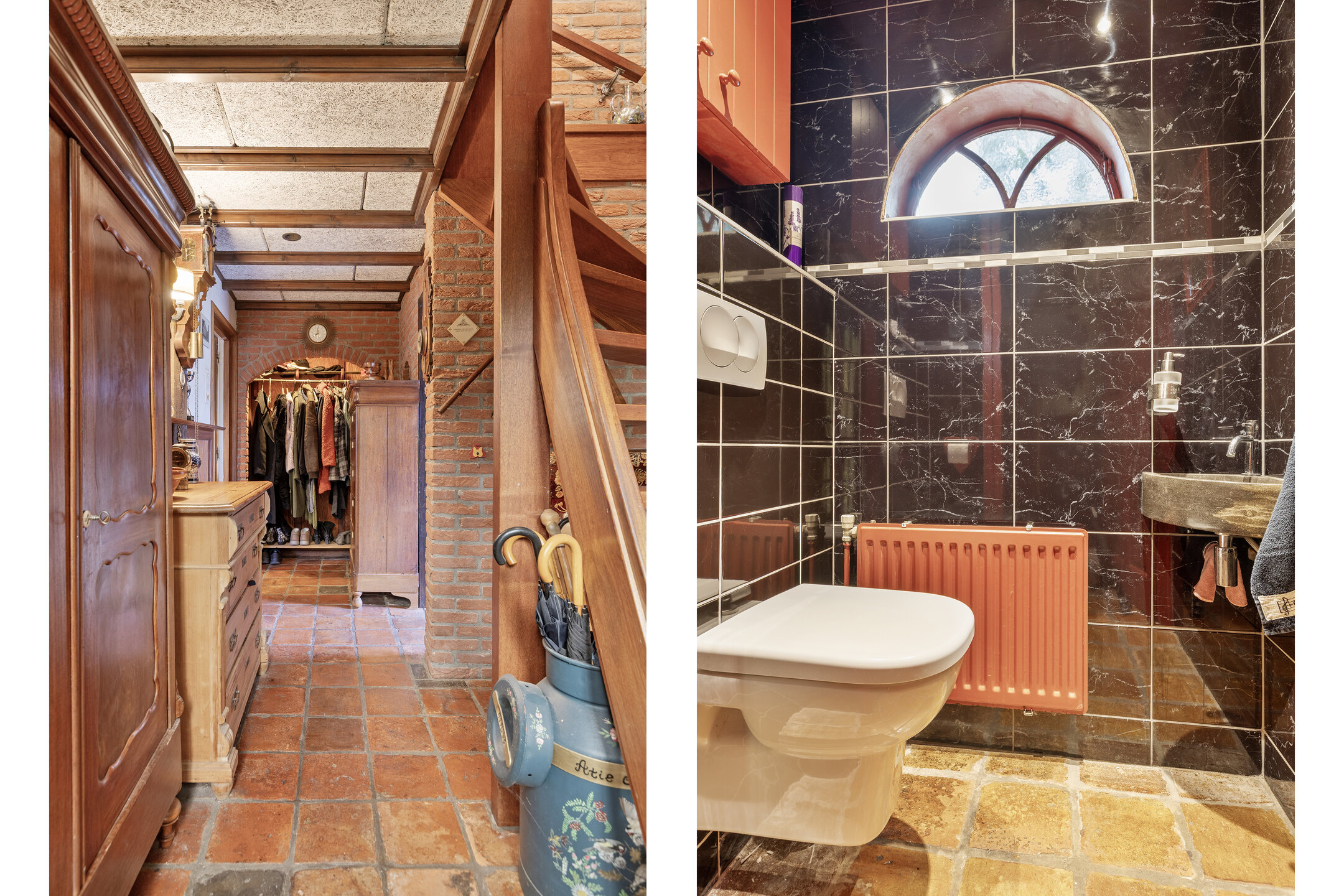 Entree/hal v.v. garderobekast, toilet met fonteintje en trapopgang.