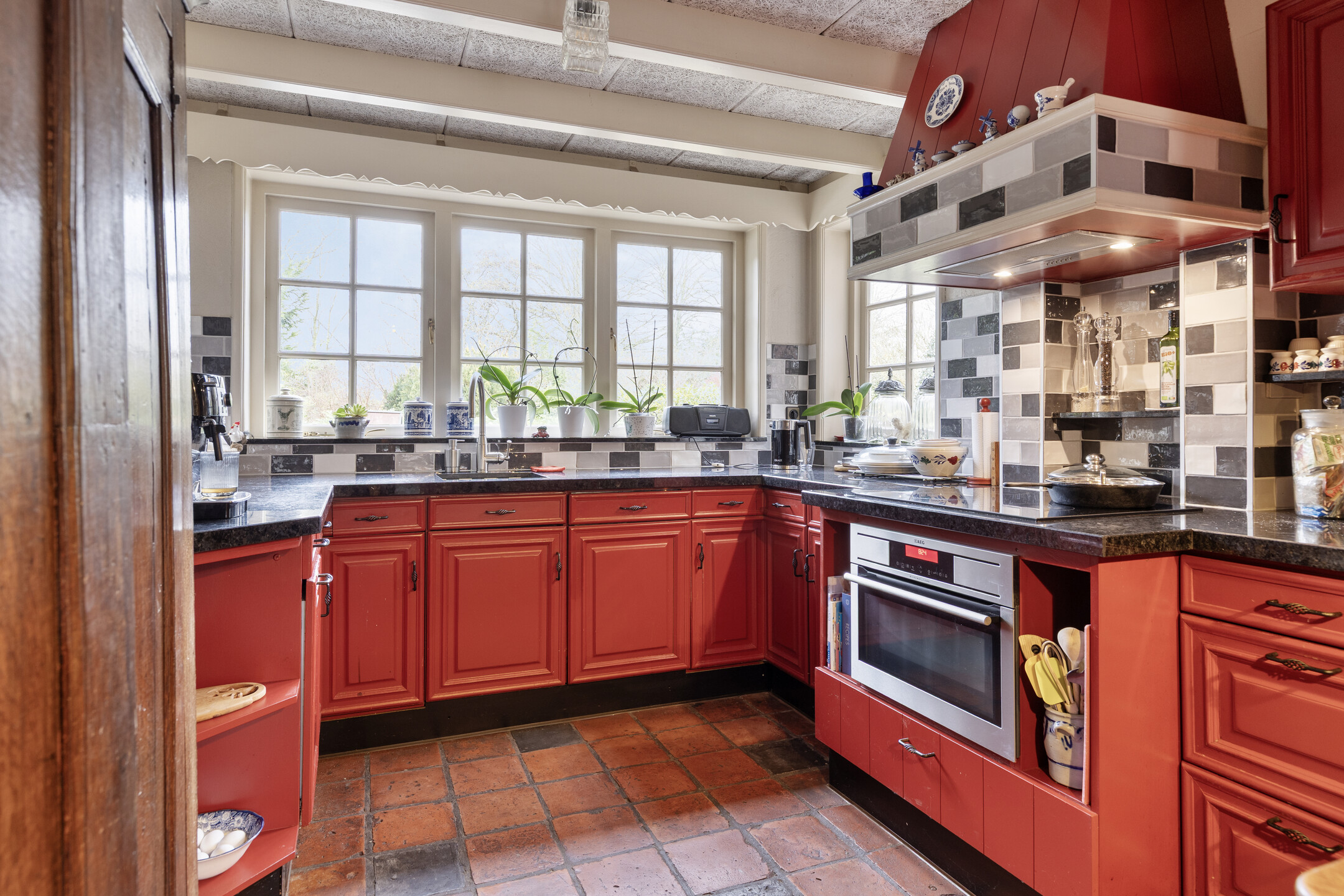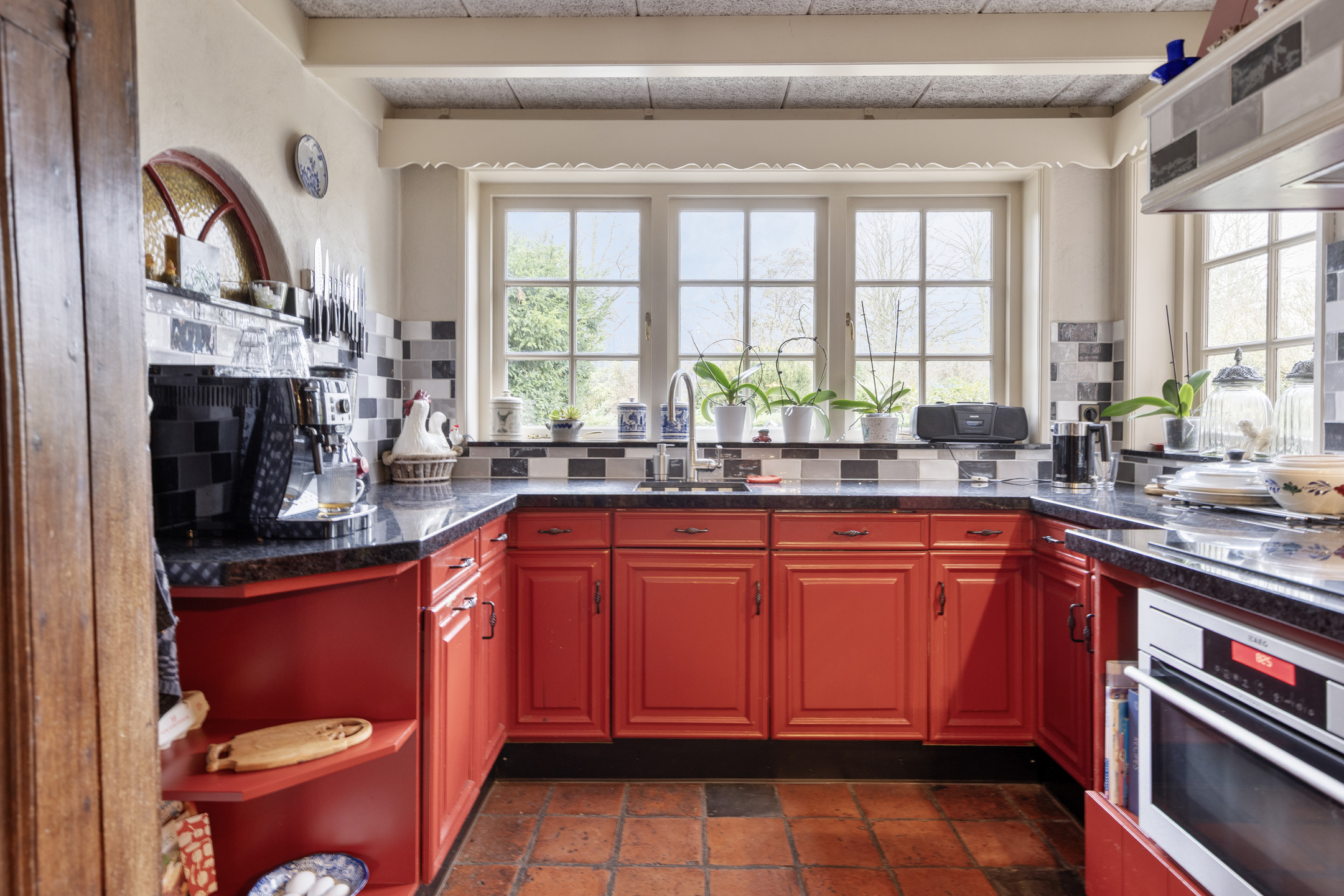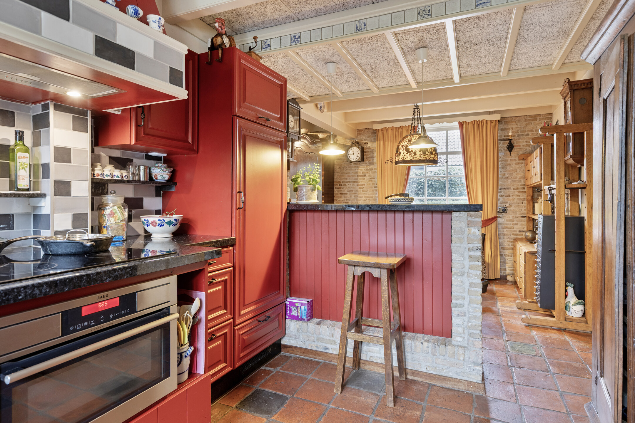 De woonkeuken is gelegen aan de achterzijde. De keuken in U-opstelling is voorzien van een hardsteen blad, keramische kookplaat, afzuigkap, heteluchtoven en koelkast. Hier is tevens een ontbijtbar. In de keuken bevindt zich ook de meterkast.