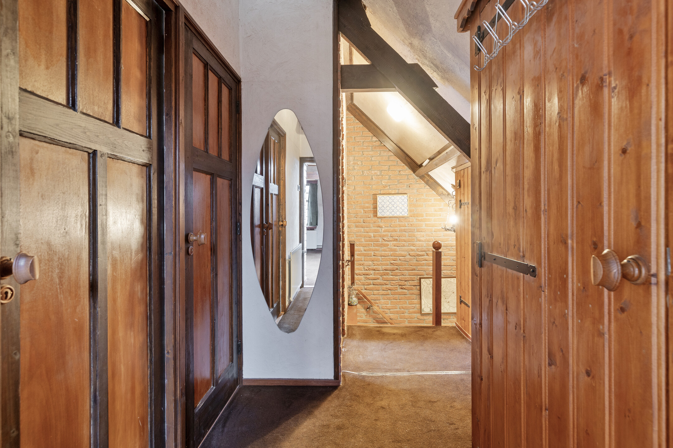 Overloop met kastenwand en toegang tot 3 slaapkamers.