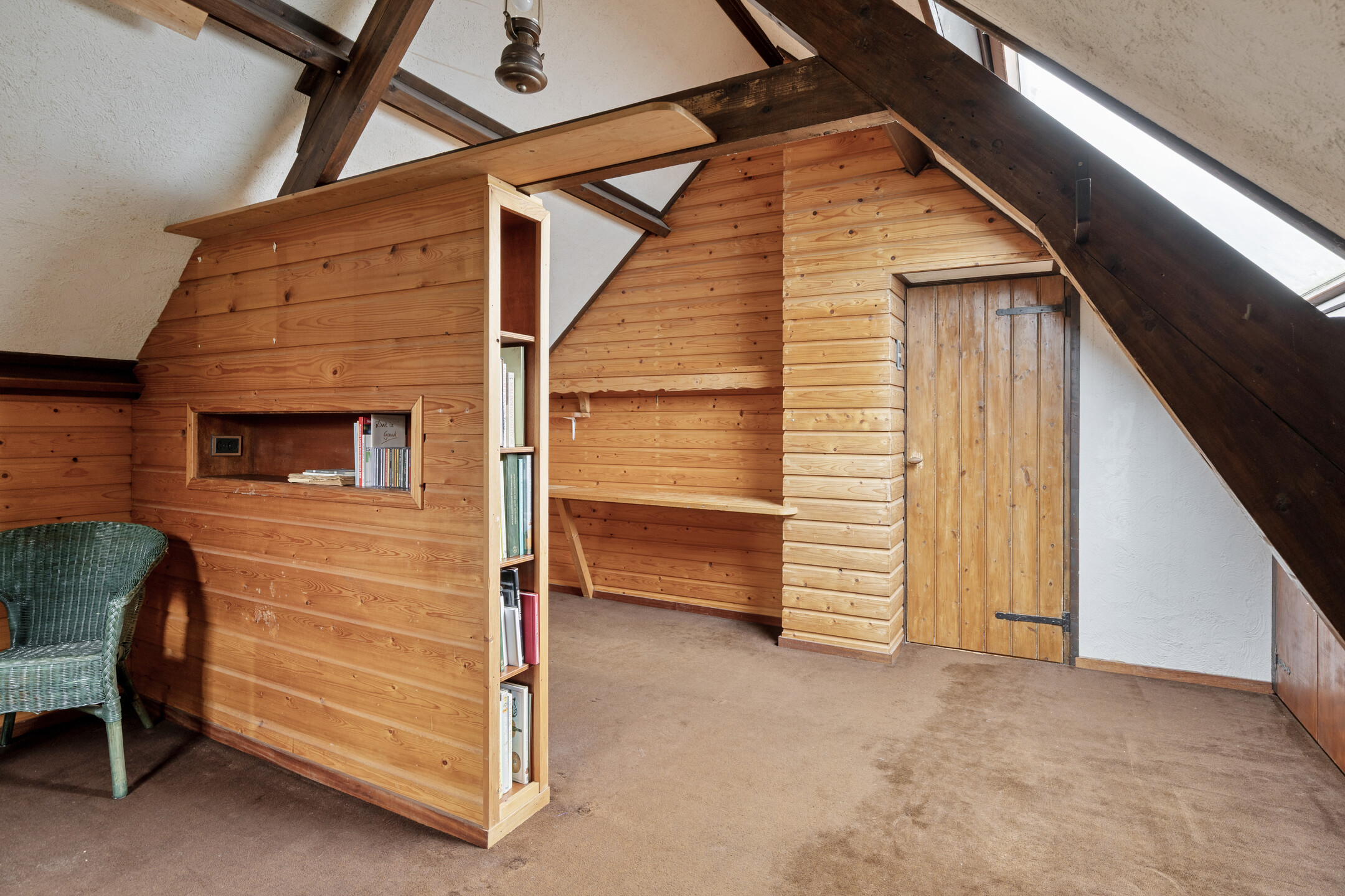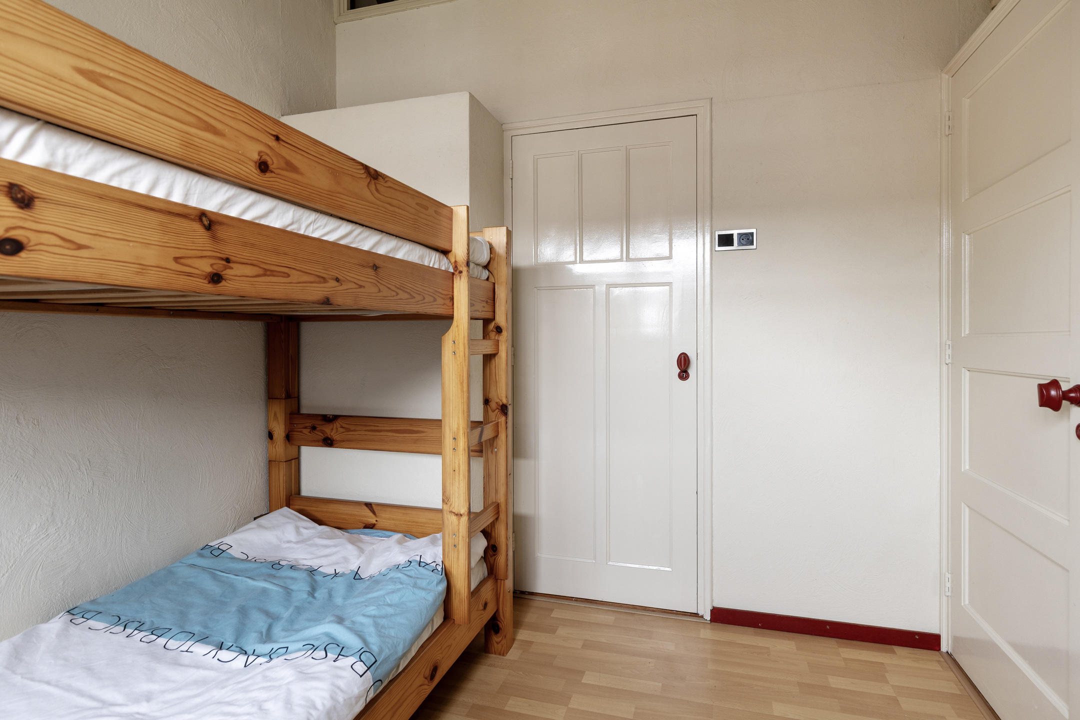 Deze slaapkamer is gelegen aan de voorzijde en v.v. dakraam. De vloer is v.v. tapijt.