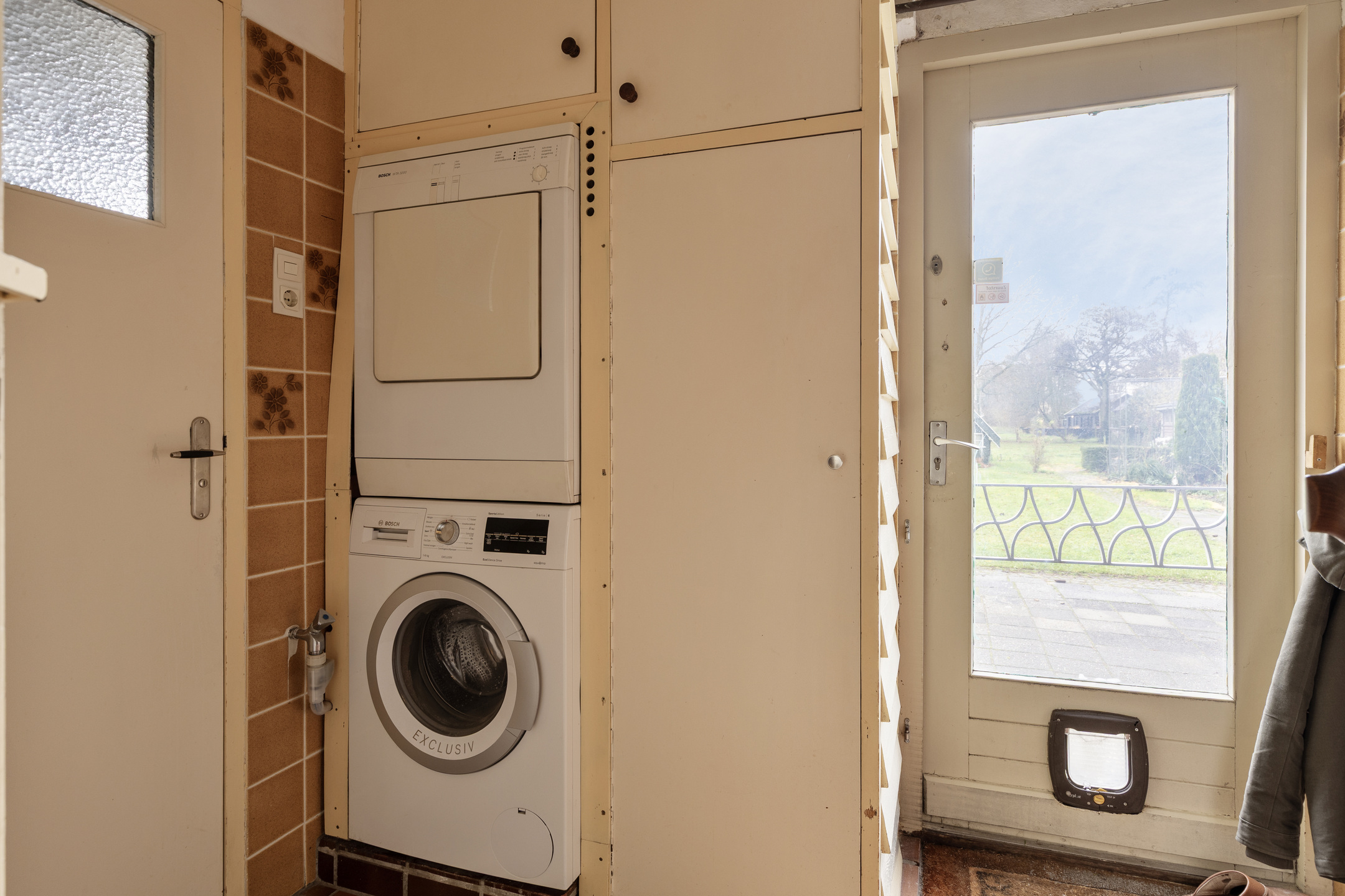 Vanuit de entree heeft u toegang tot de bijkeuken. Deze is gelegen aan de achterzijde van de woning en voorzien van achterdeur. Hier bevindt zich de opstelplaats voor cv-ketel en de wasmachineaansluiting.
