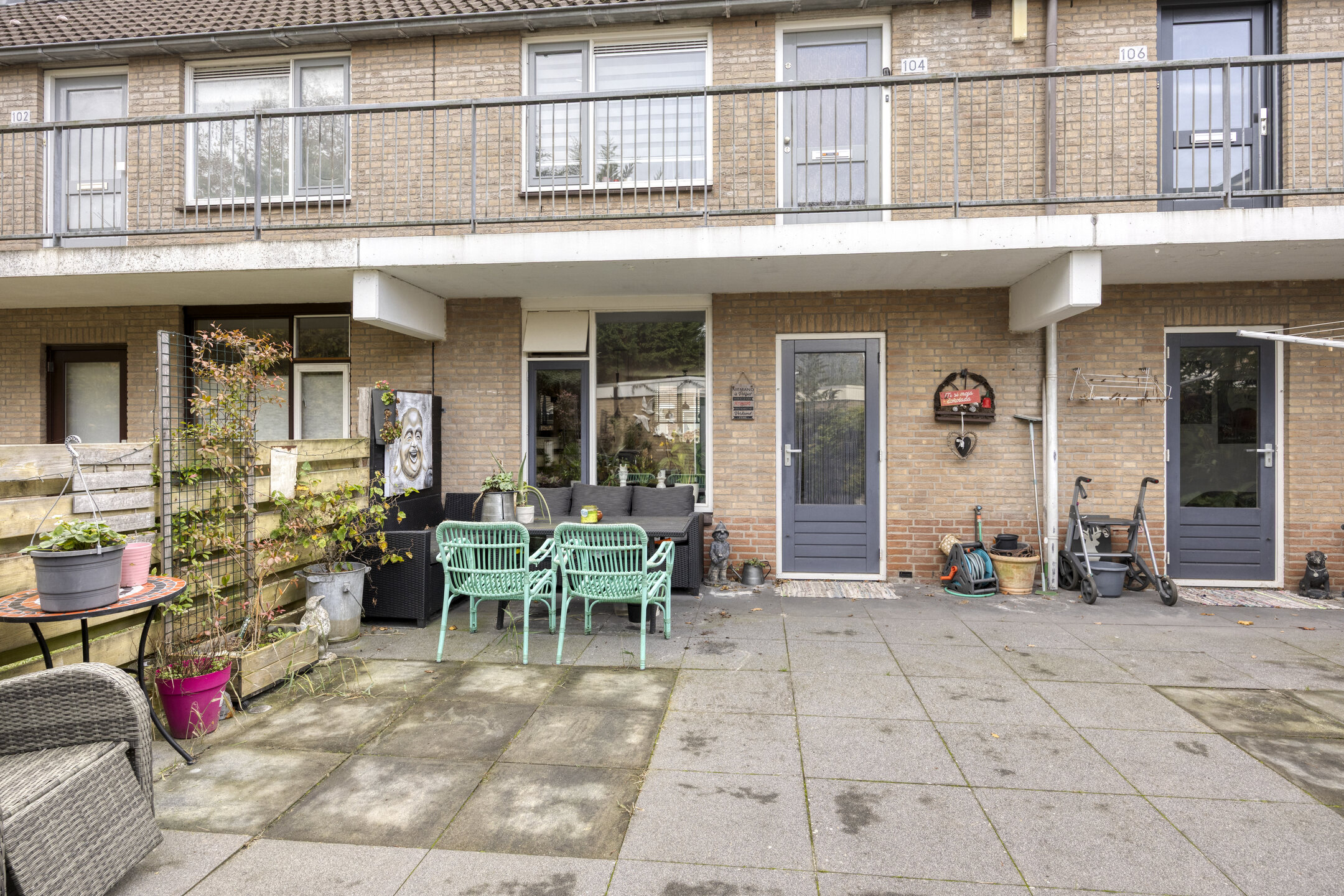 Vanaf de straat heeft dit appartement direct een eigen voordeur.