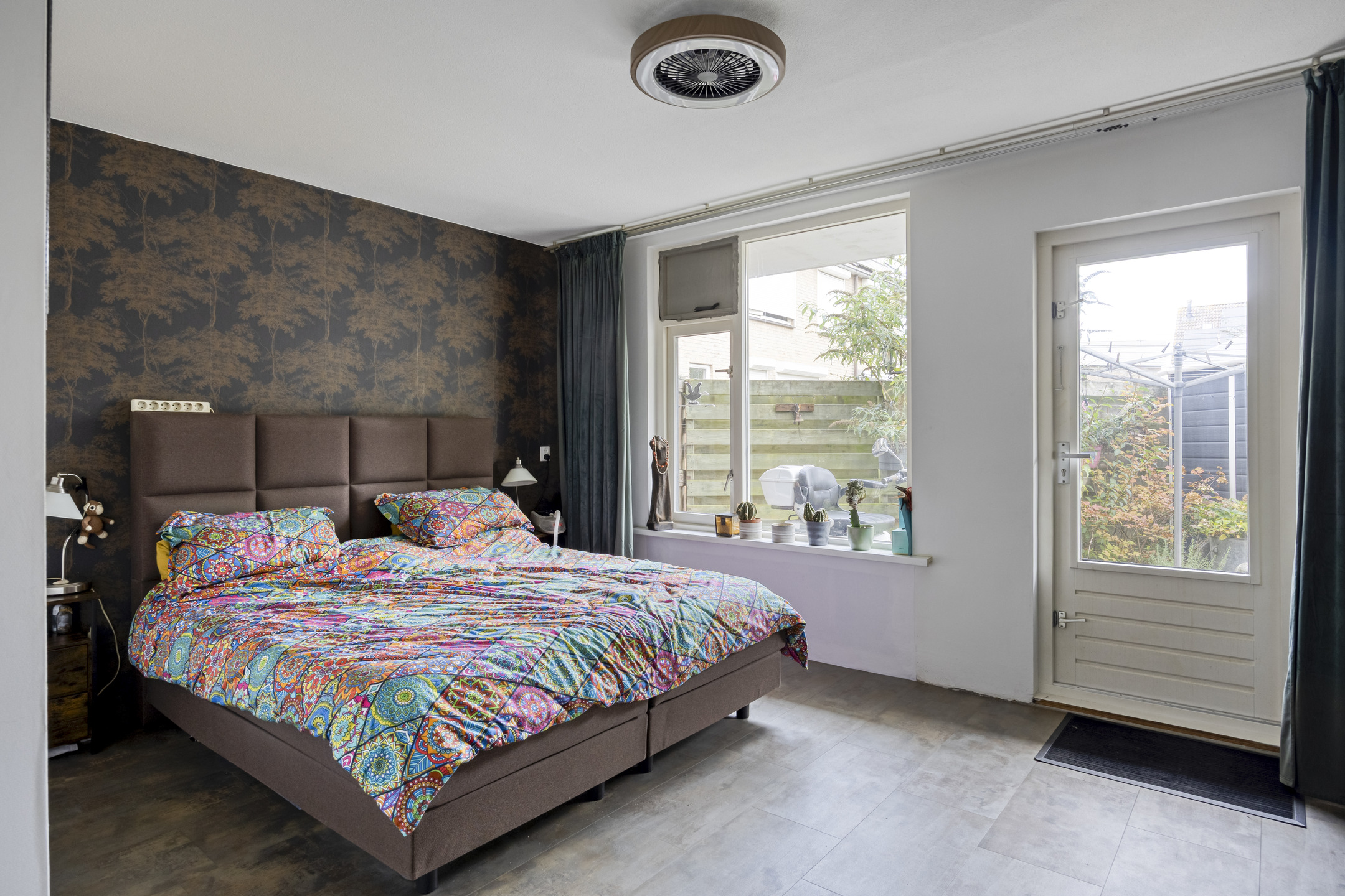 De hoofdslaapkamer is gelegen aan de achterzijde en heeft een deur naar de tuin. De vloer is voorzien van PVC.