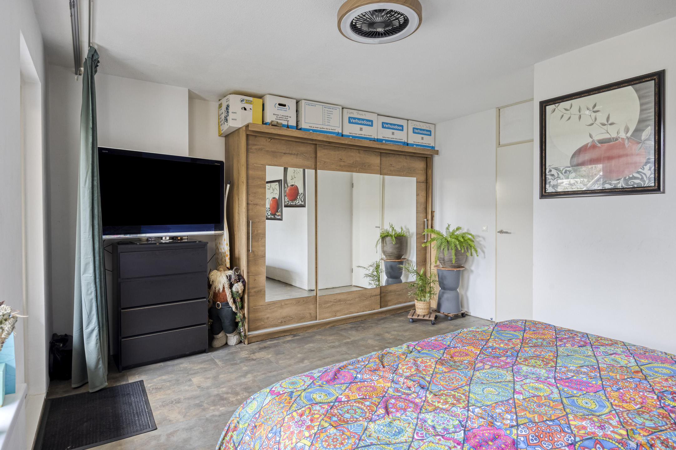Deze slaapkamer is gelegen aan de voorzijde en beschikt over veel daglicht, een grote kastenwand en is voorzien van PVC.