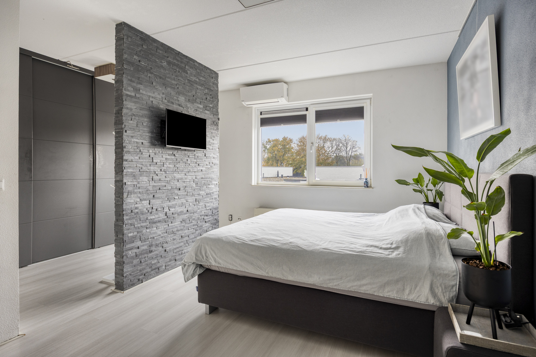 Hoofdslaapkamer gelegen aan de achterzijde en voorzien van airconditioning en een royale inloopkast. Deze kamer is eenvoudig terug te brengen naar 2 slaapkamers indien gewenst.