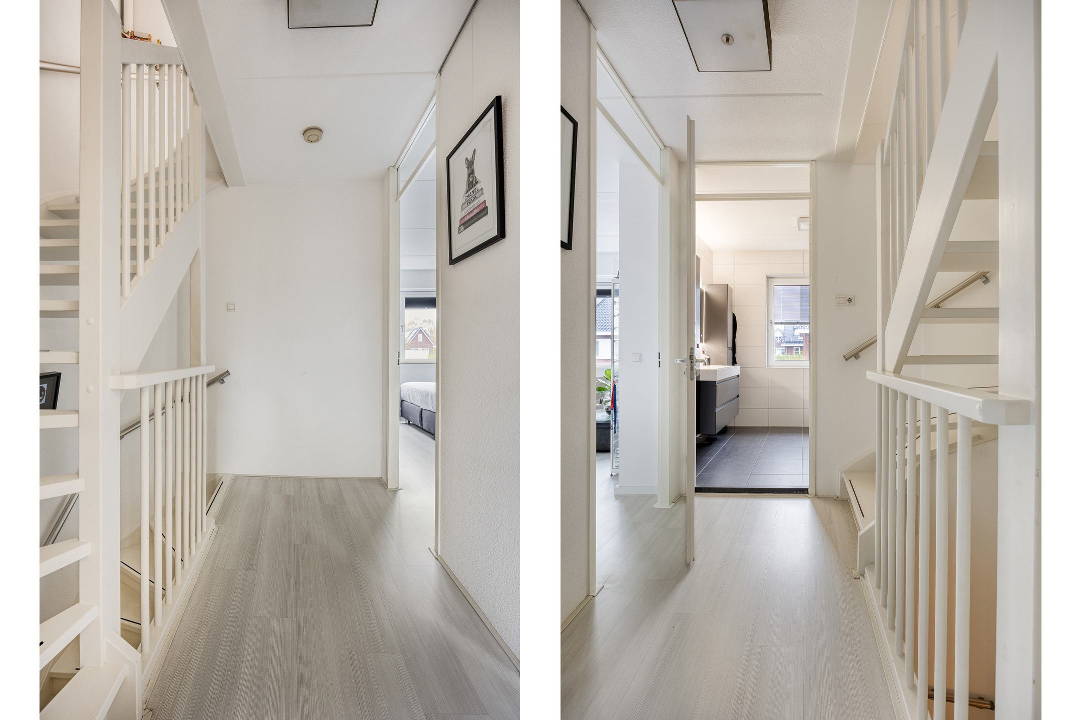 Overloop met toegang tot de wasruimte en de slaapkamer.