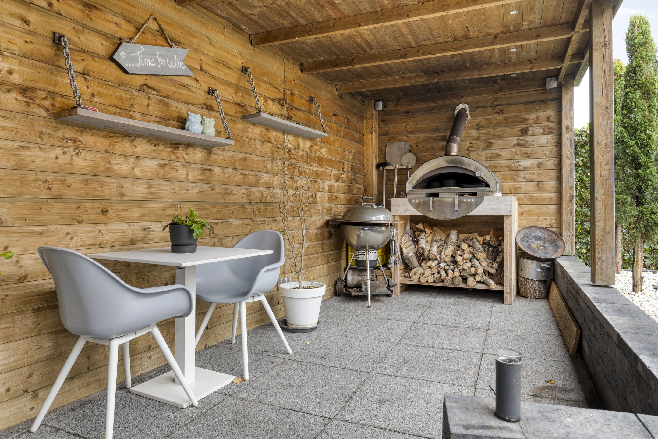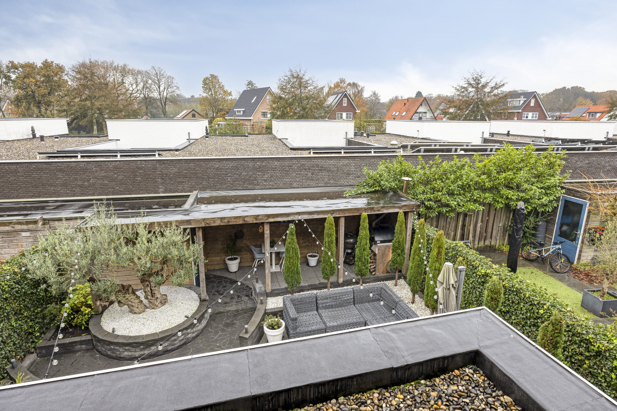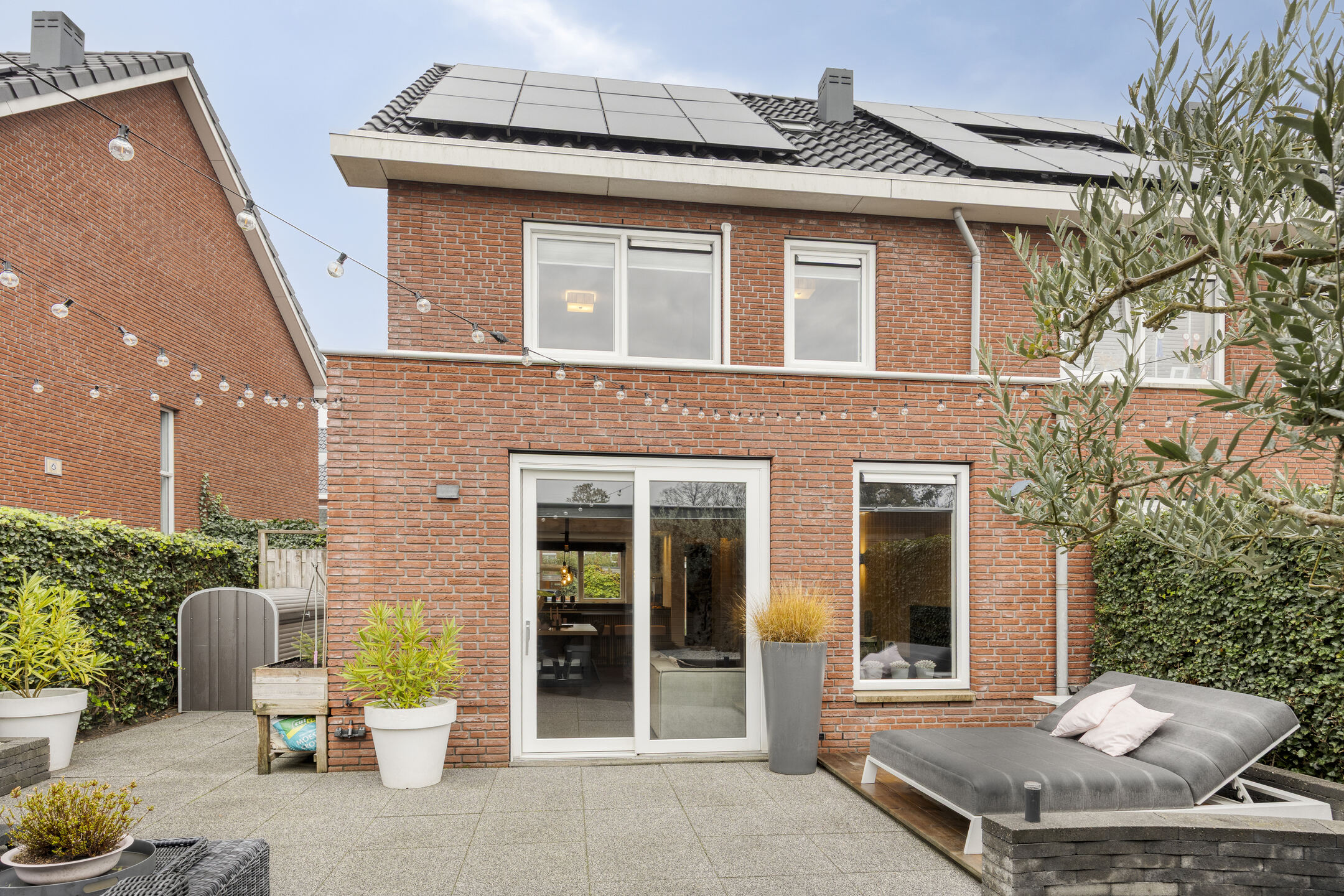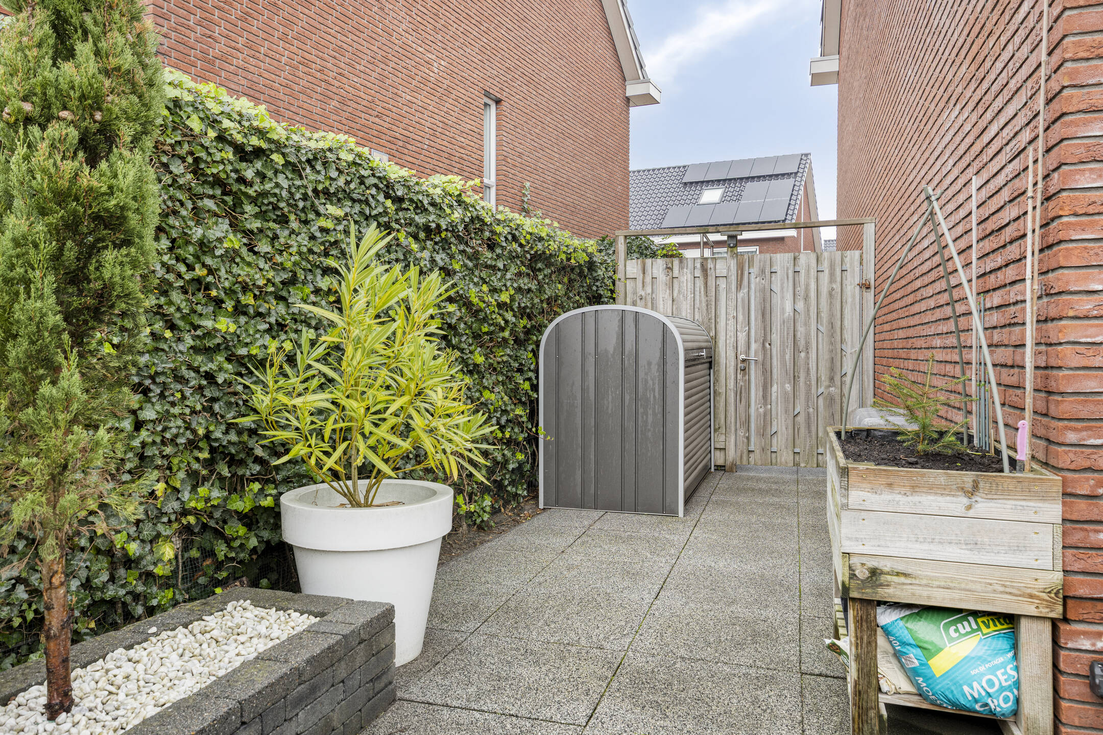 De sfeervolle achtertuin is gelegen op het zuiden en is fraai aangelegd met een terras, border met olijfboom en sfeervolle terrasoverkapping. Verder bevindt zich hier de fietsenberging. De tuin heeft een achterom via de zijtuin van de woning.