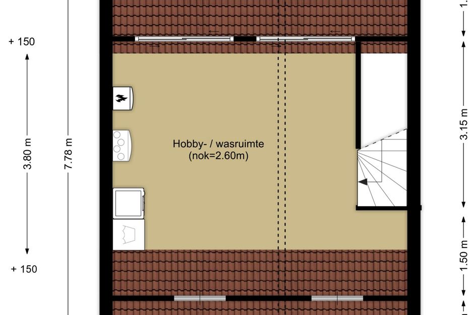 De tweede verdieping is een lichte en open ruimte waar de mogelijkheden legio zijn. In 2025 zijn hier 2 dakramen geplaats, waardoor deze verdieping alle kansen biedt om een extra kamer te creëren. Op deze verdieping vind je de aansluitingen voor wasmachine en droger, de WTW-installatie en de cv-ketel (Intergas 2017). Er is volop bergruimte door de knieschotten. Dankzij de dwarskap en de authentieke, in het zicht gelaten balken heeft deze verdieping een sfeervolle uitstraling.