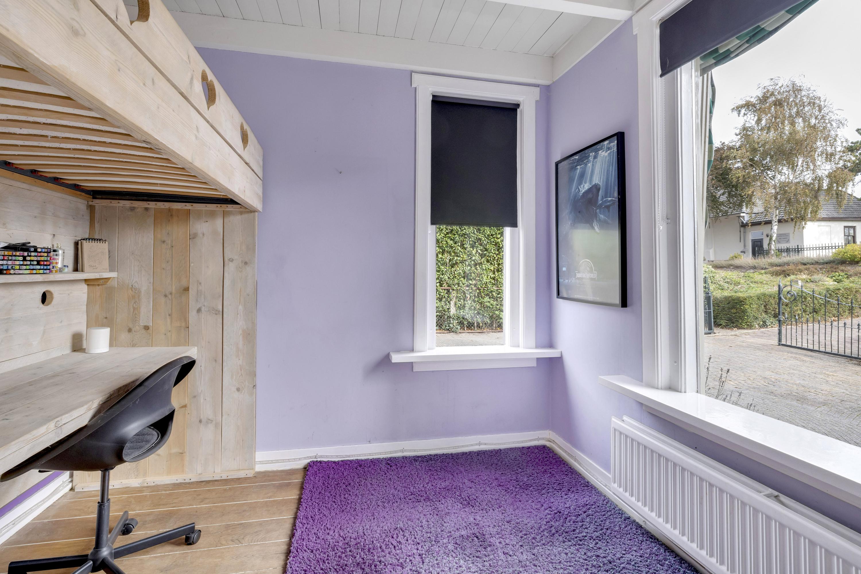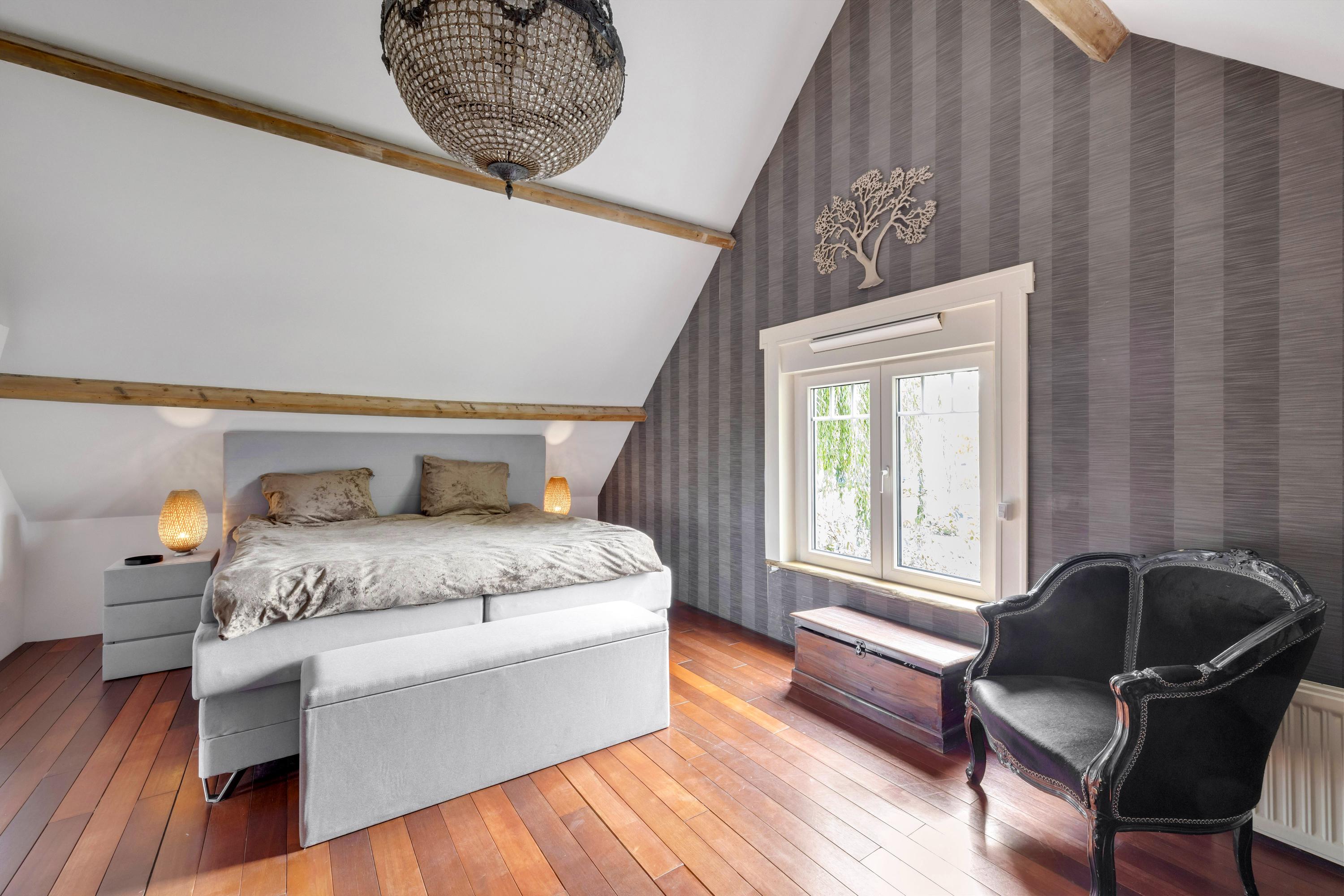 Deze lichte slaapkamer is gelegen aan de voorzijde van de woning en beschikt over airconditioning en eiken vloerdelen.