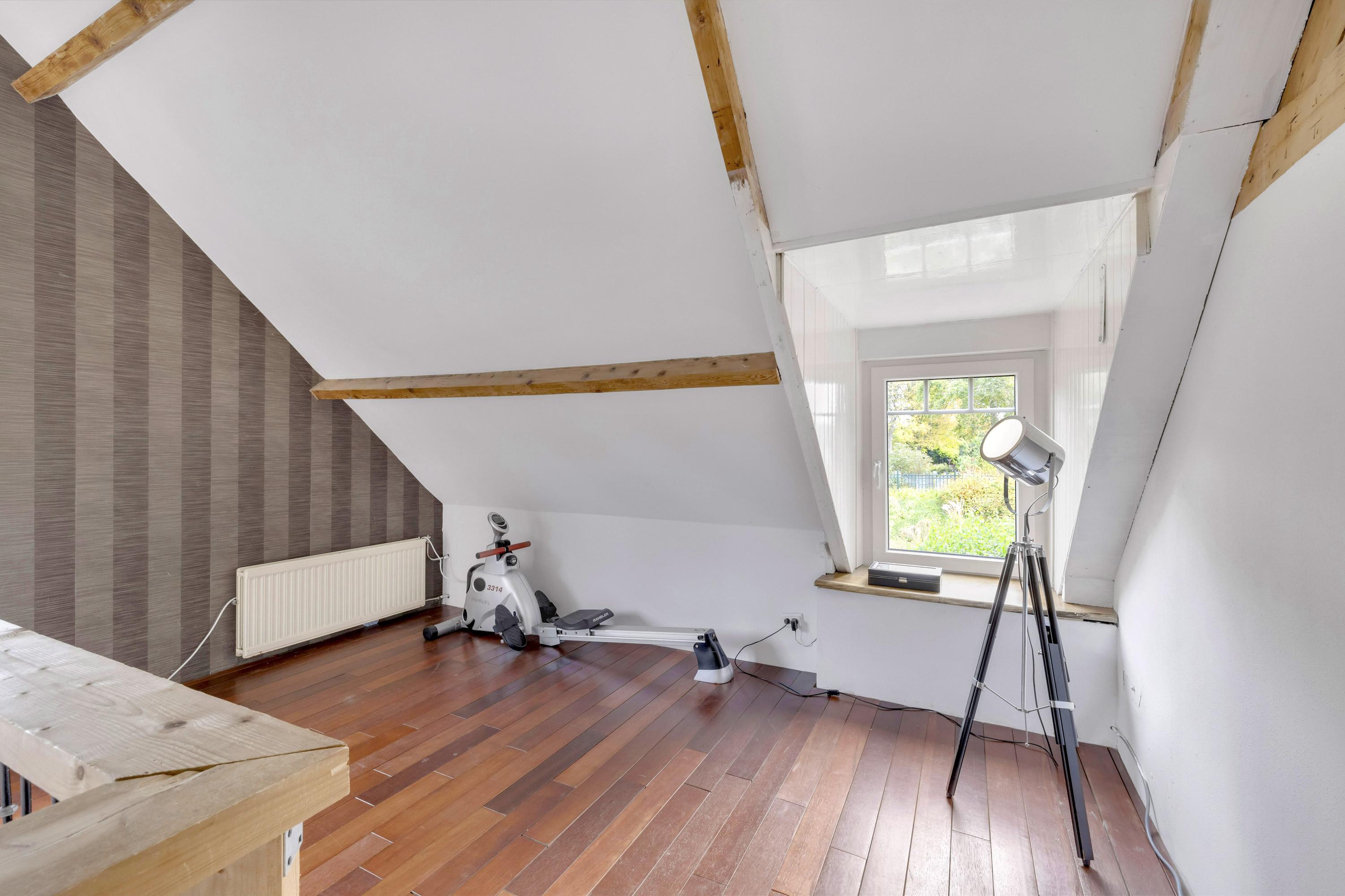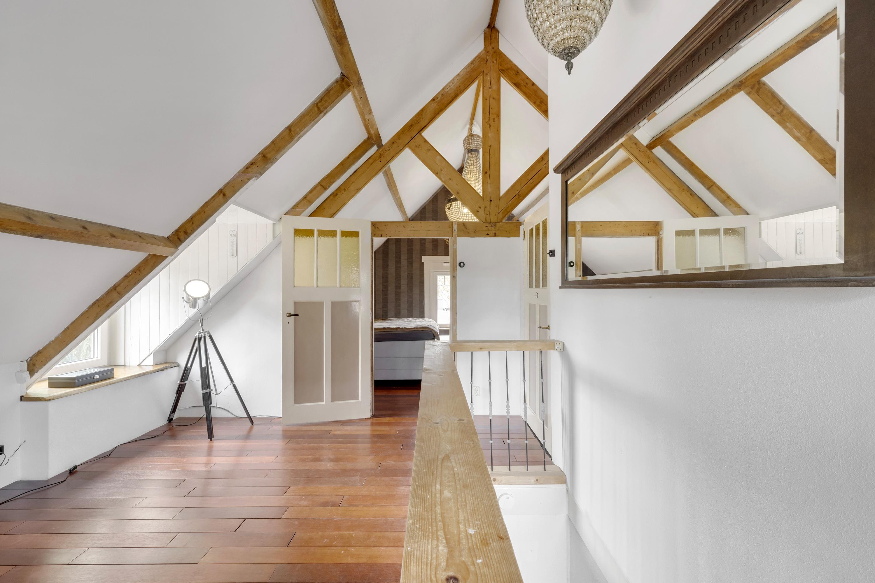 Grote overloop met dakkapel en separaat toilet. Deze ruimte zou kunnen dienen als werkplek. De verdieping is v.v. houten vloerdelen.