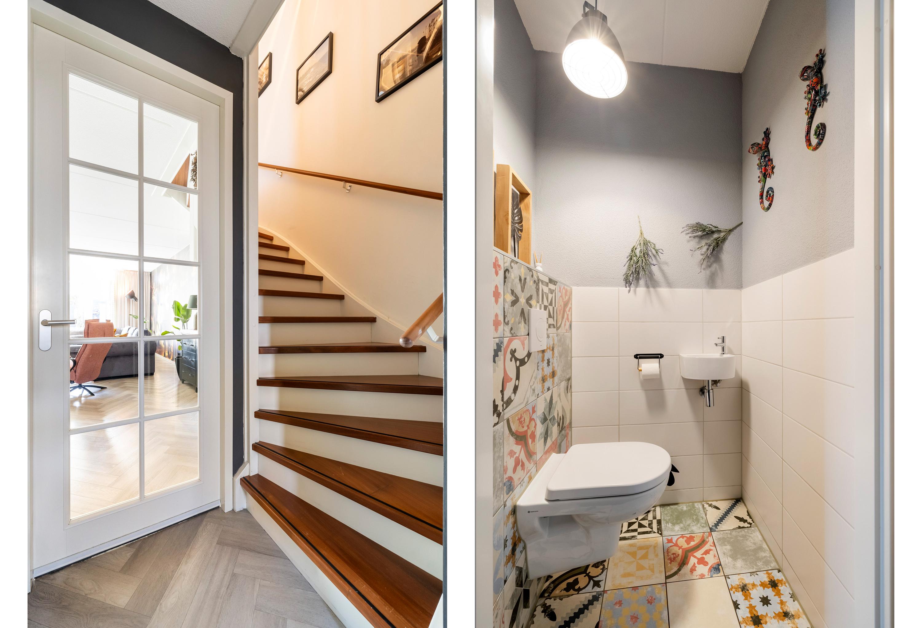 Entree/ hal met garderobe, toilet met fonteintje, kast met boiler en warmtepomp en meterkast.