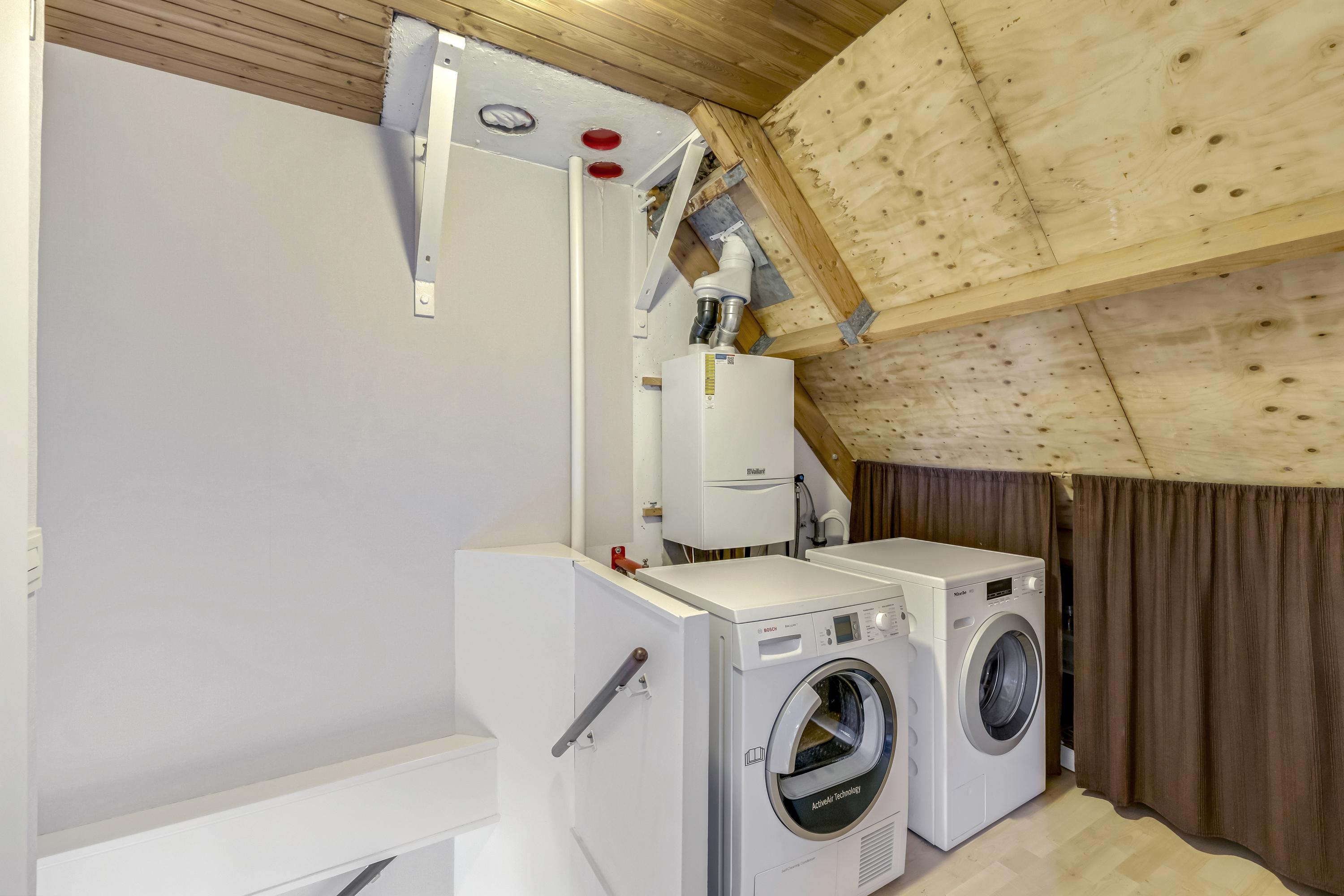 Overloop met de aansluitingen voor het witgoed, de opstelplaats van de cv combiketel en een ruime inloopkast.