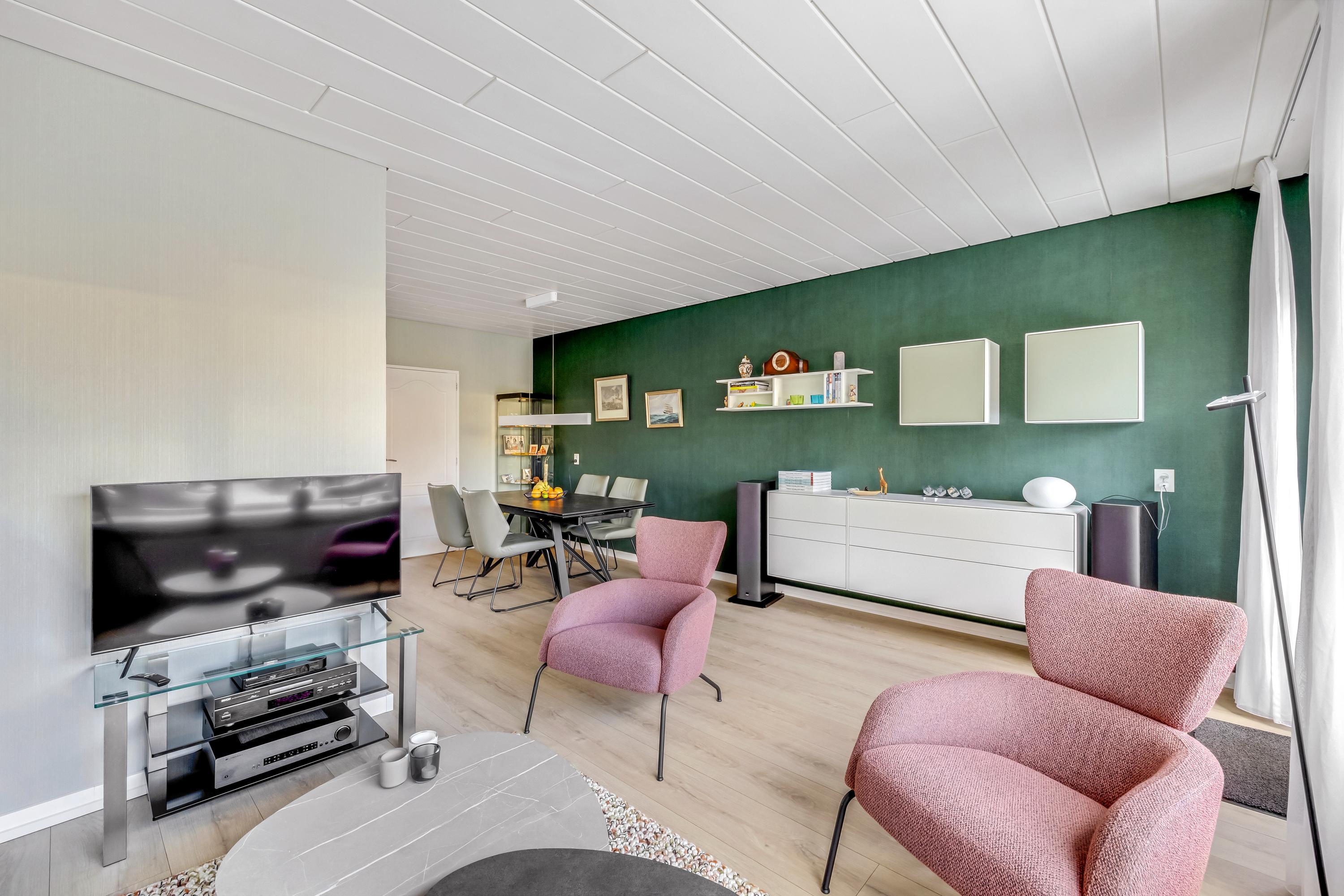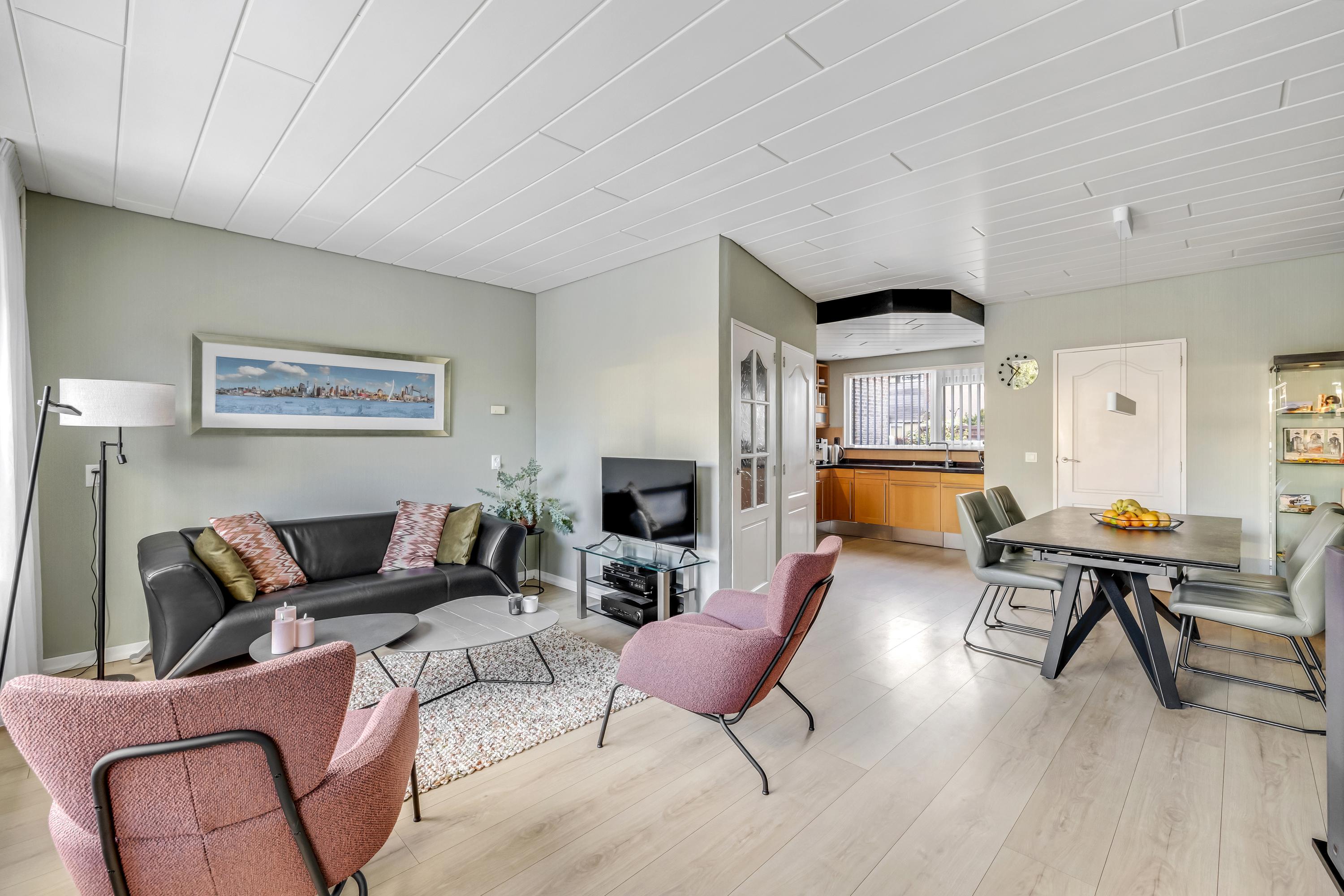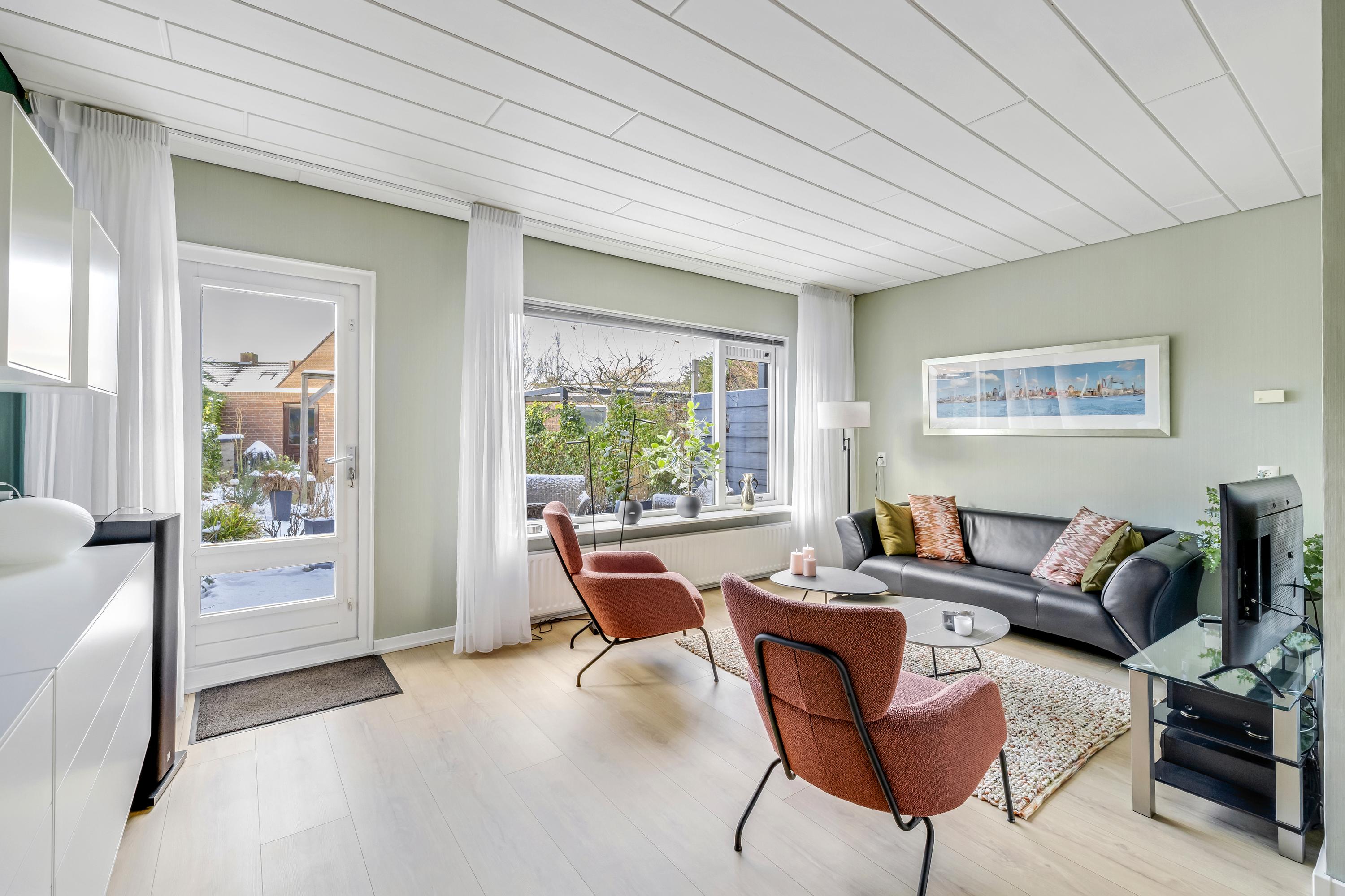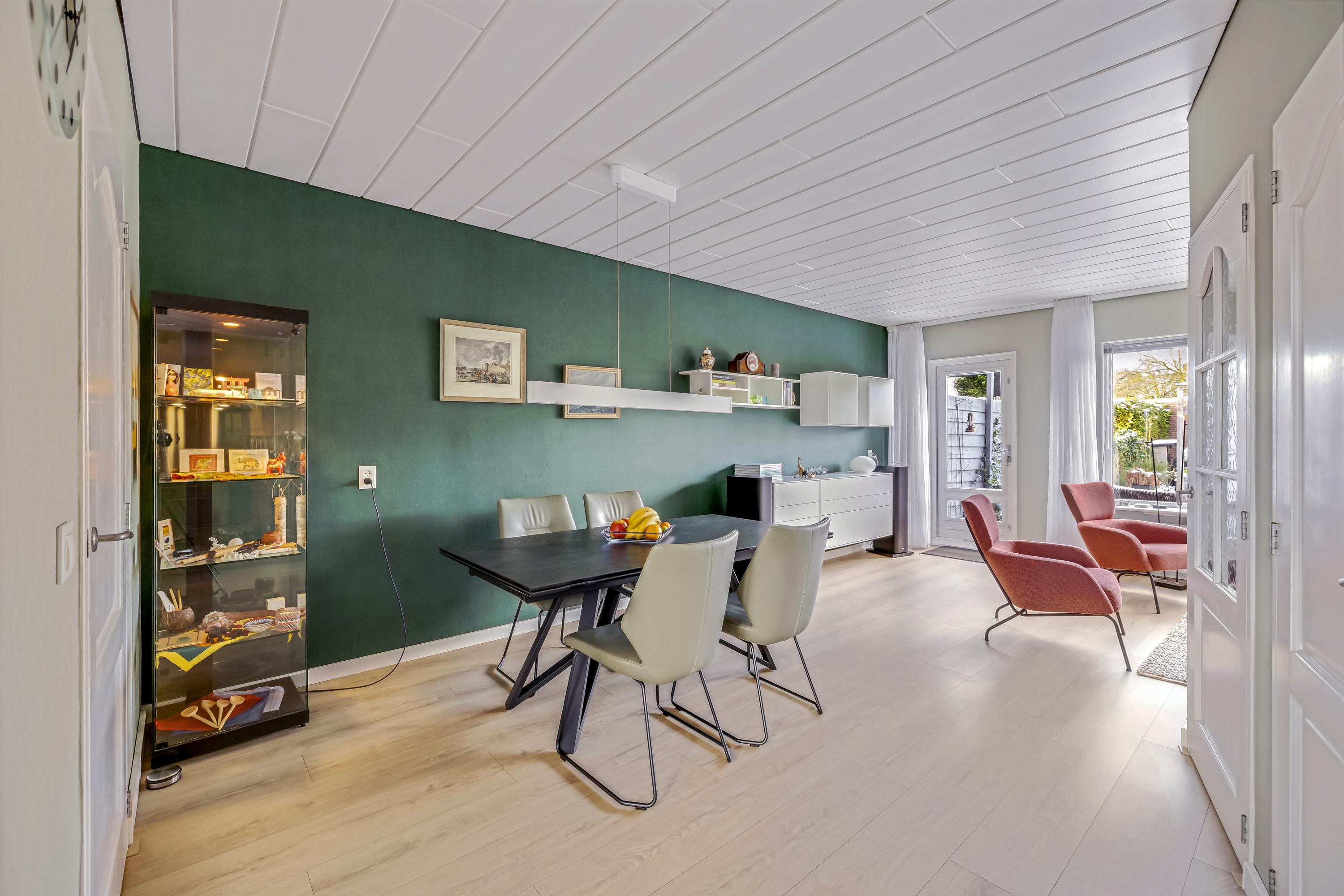 De gezellige woonkamer is gelegen aan de achterzijde van de woning en kijkt uit over de achtertuin. Middels een enkele deur is de tuin te bereiken. In de woonkamer bevindt zich de deur naar de tussenhal met trap naar de eerste verdieping en een trapkast.