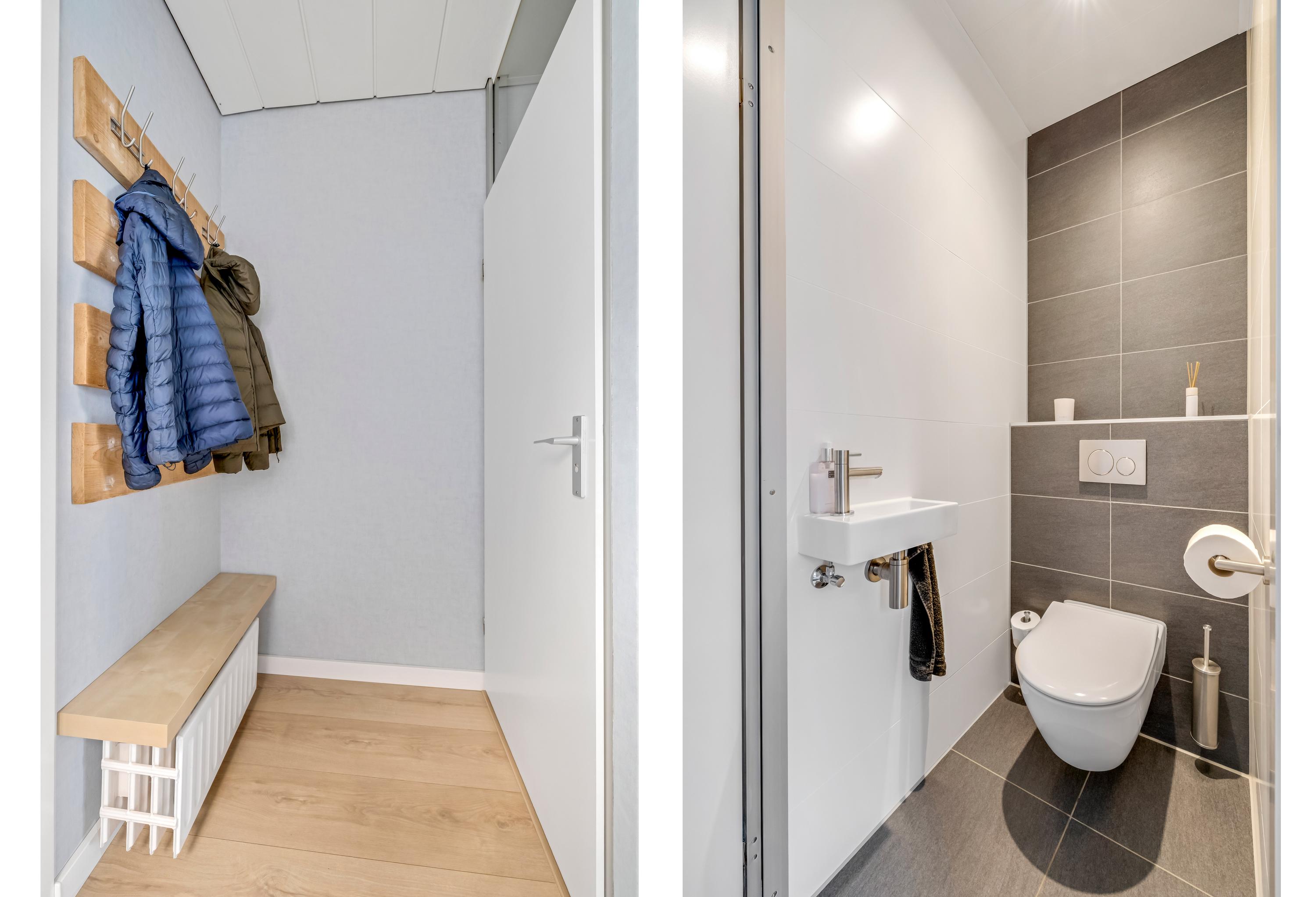 Entree/ hal met meterkast en toilet. Vanuit de hal heeft u toegang tot de woonkamer en de bijkeuken.