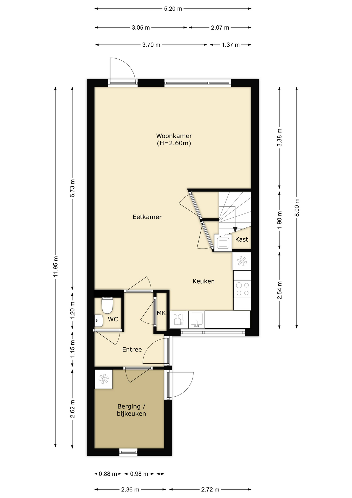 - woonoppervlakte ca. 106 m2 (incl bijkeuken/ berging);
