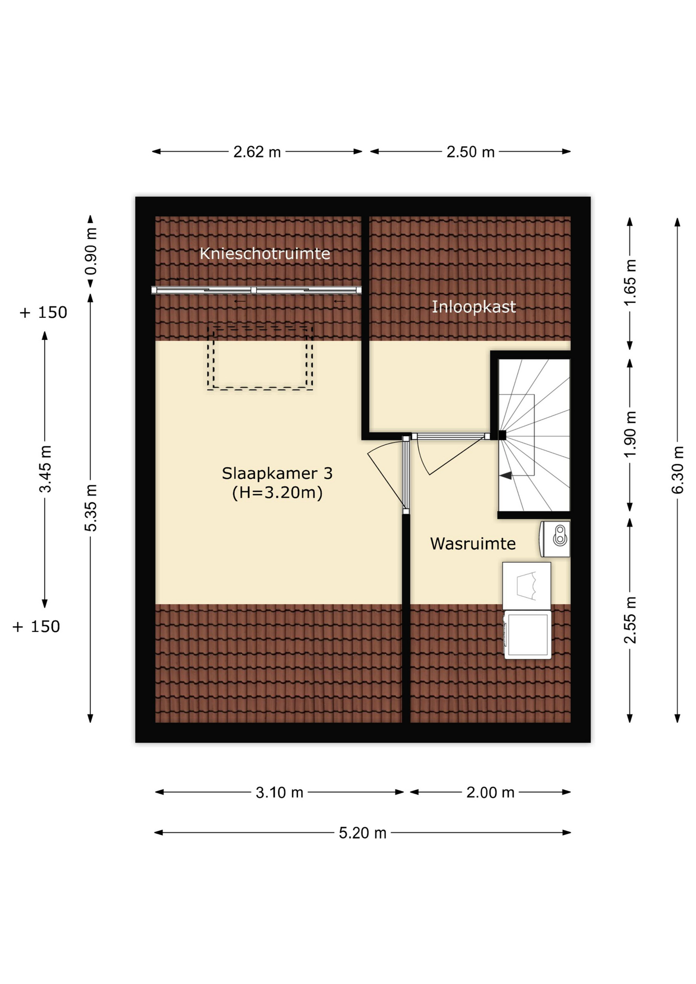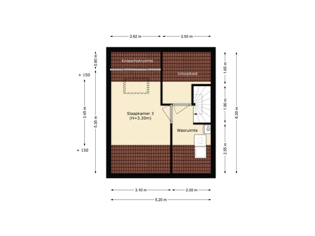 Deze slaapkamer is voorzien van een groot dakraam en bergruimte achter de knieschotten.