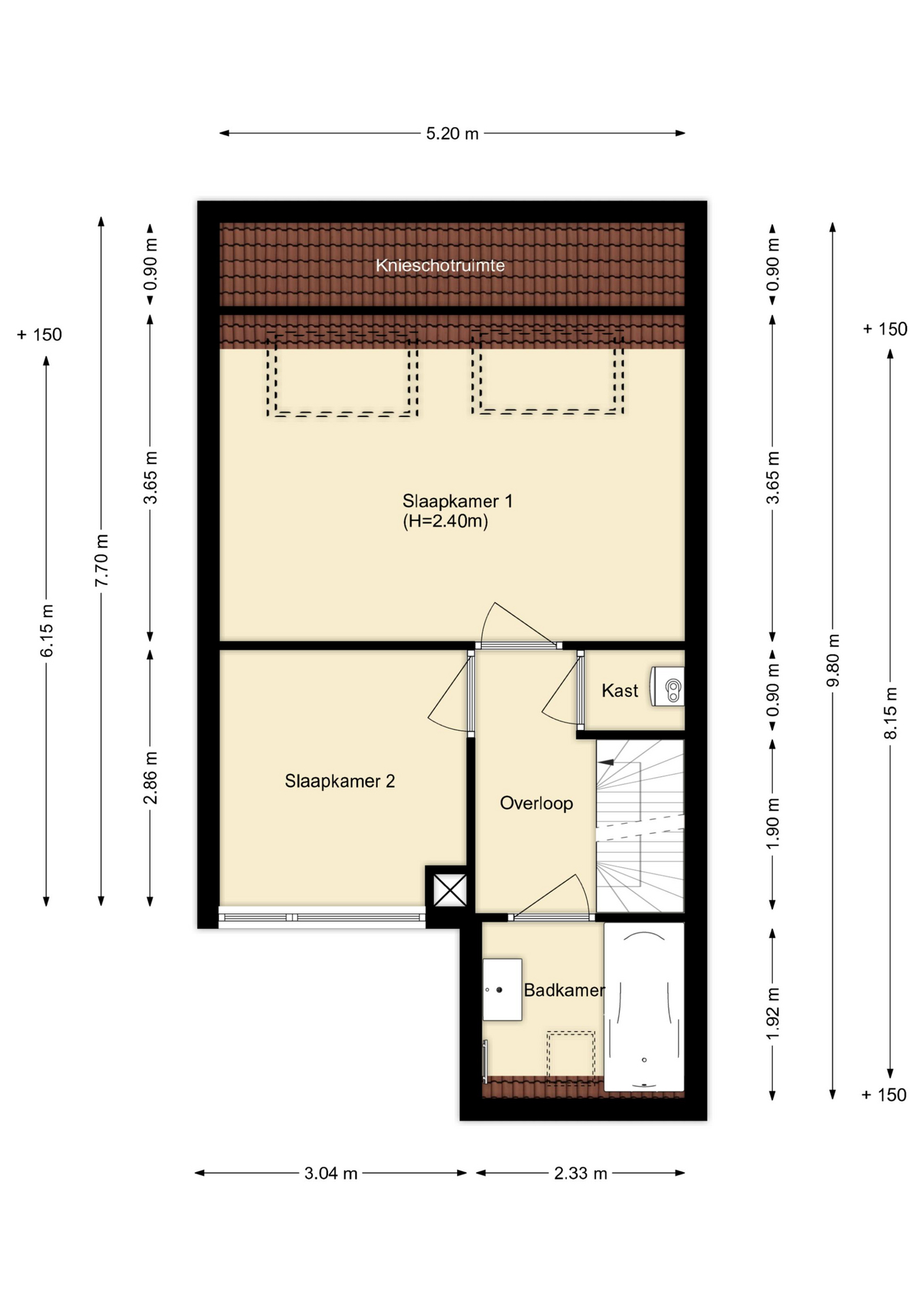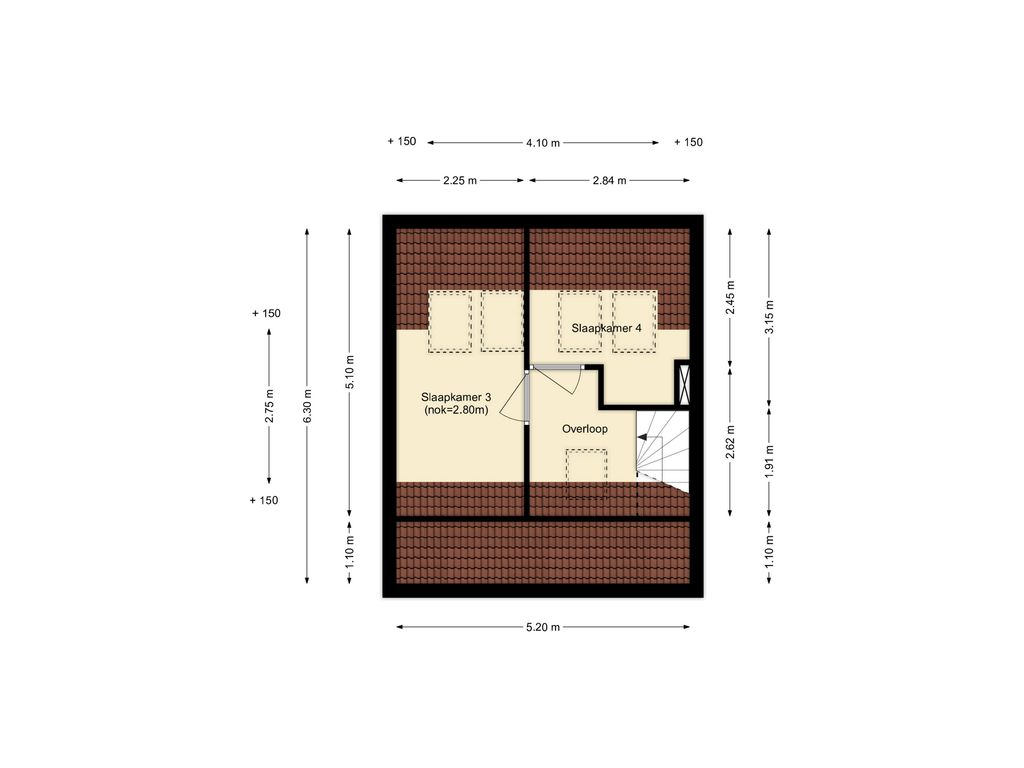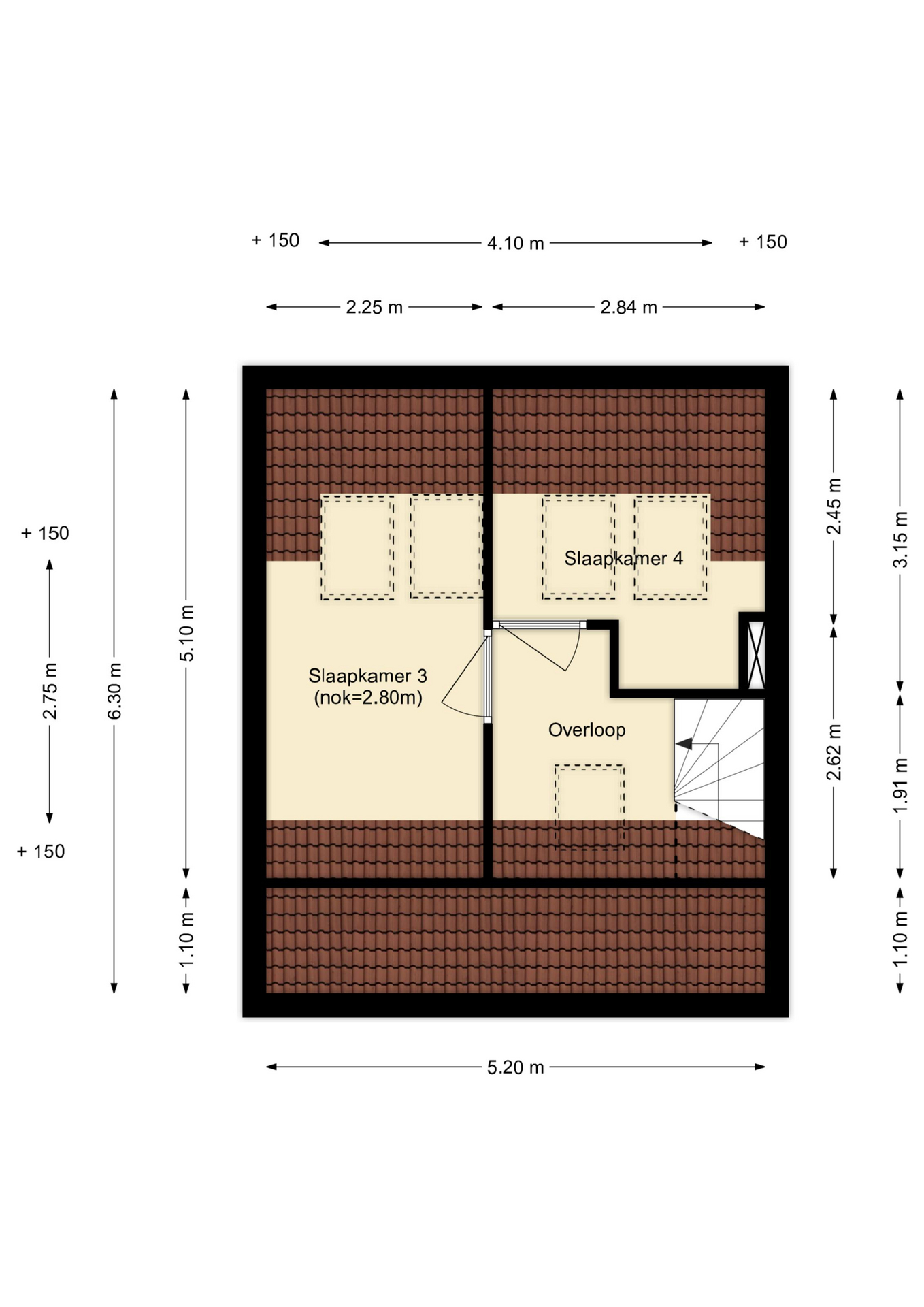 Voorzolder met dakraam.