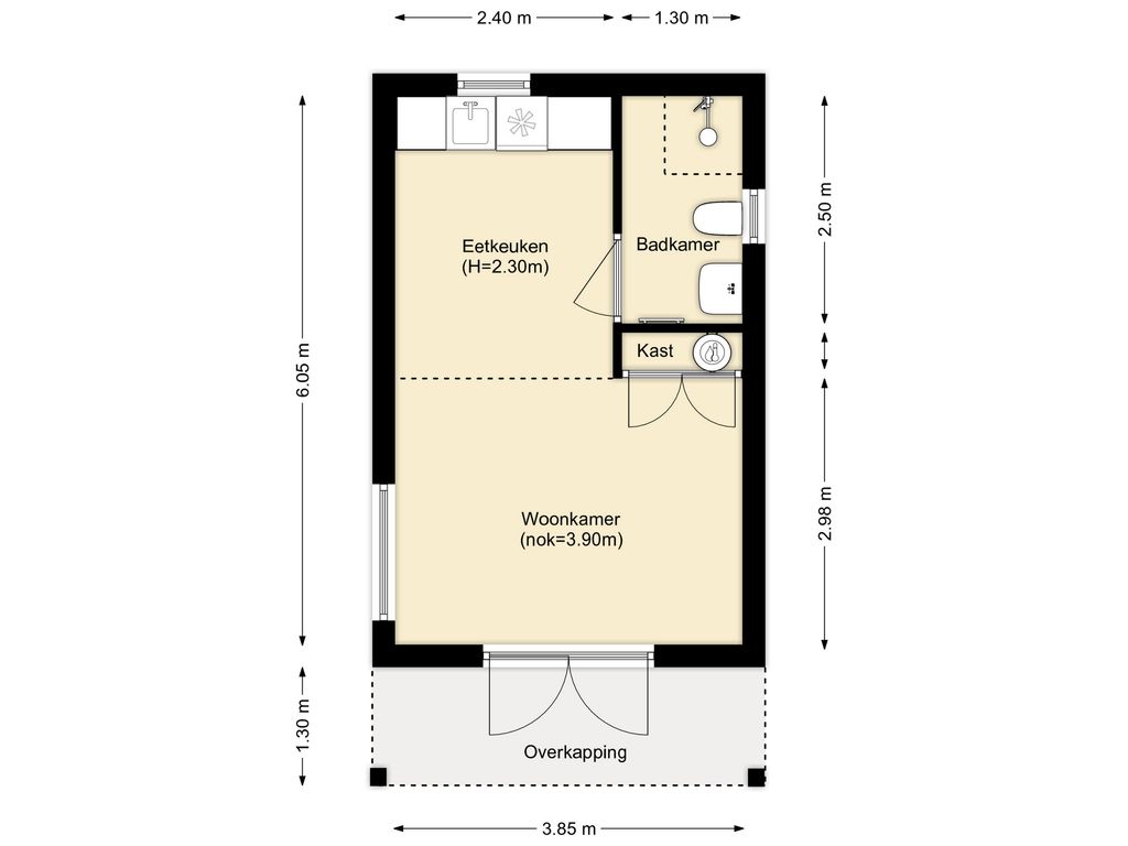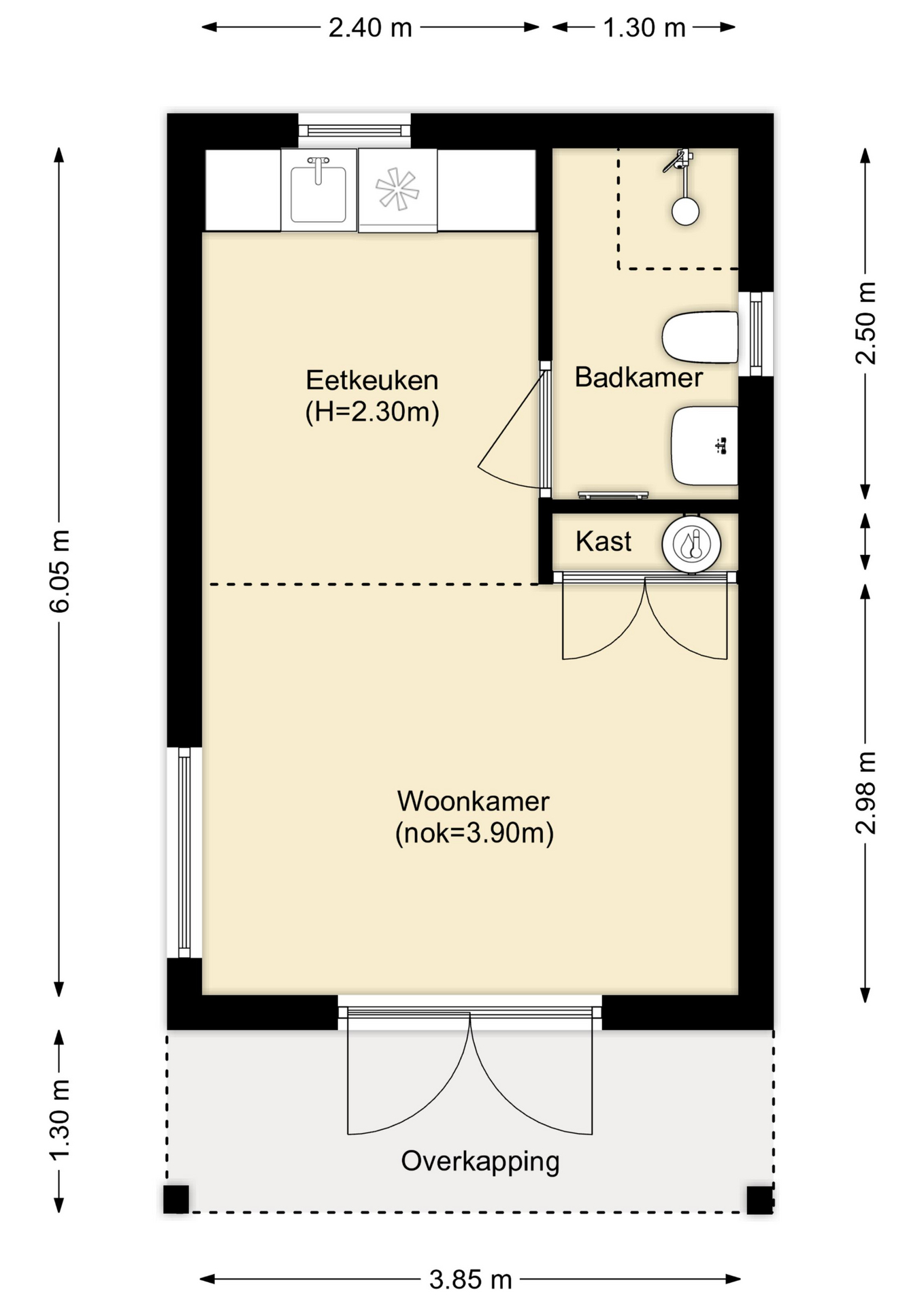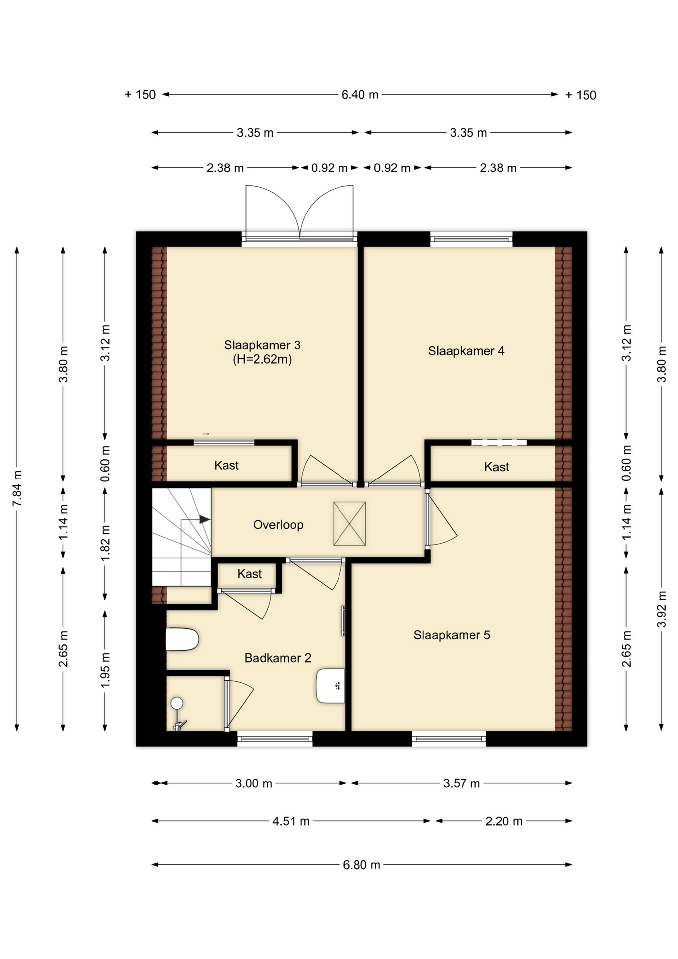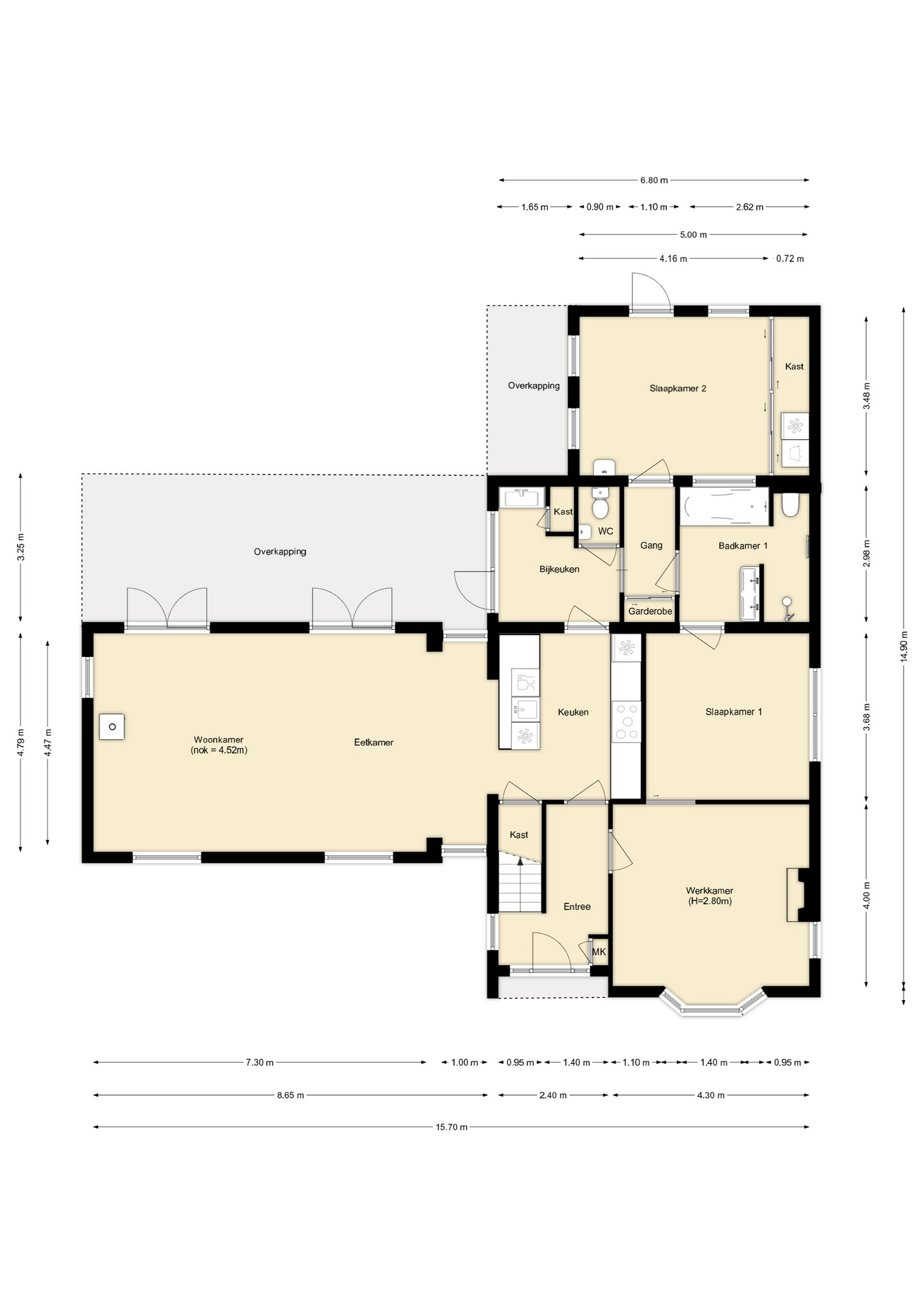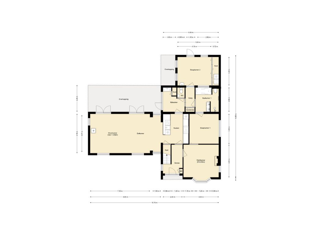 Geheel voorzien van laminaat.