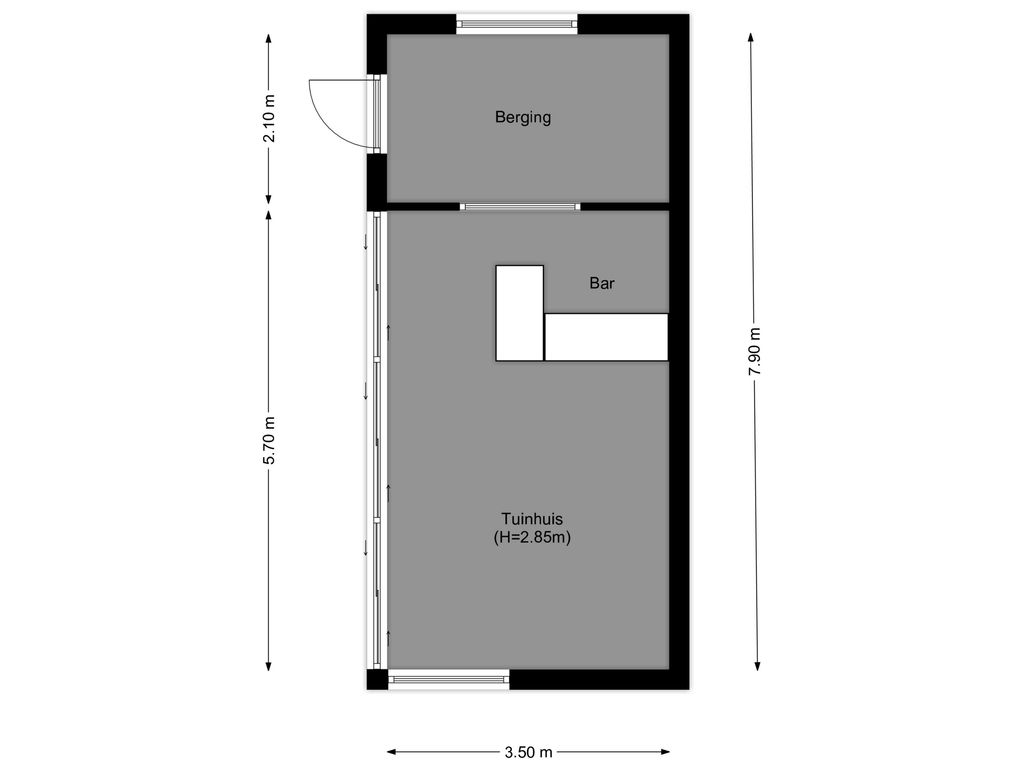 Gelegen achterin de tuin voorzien van elektra en ruime bergvliering.