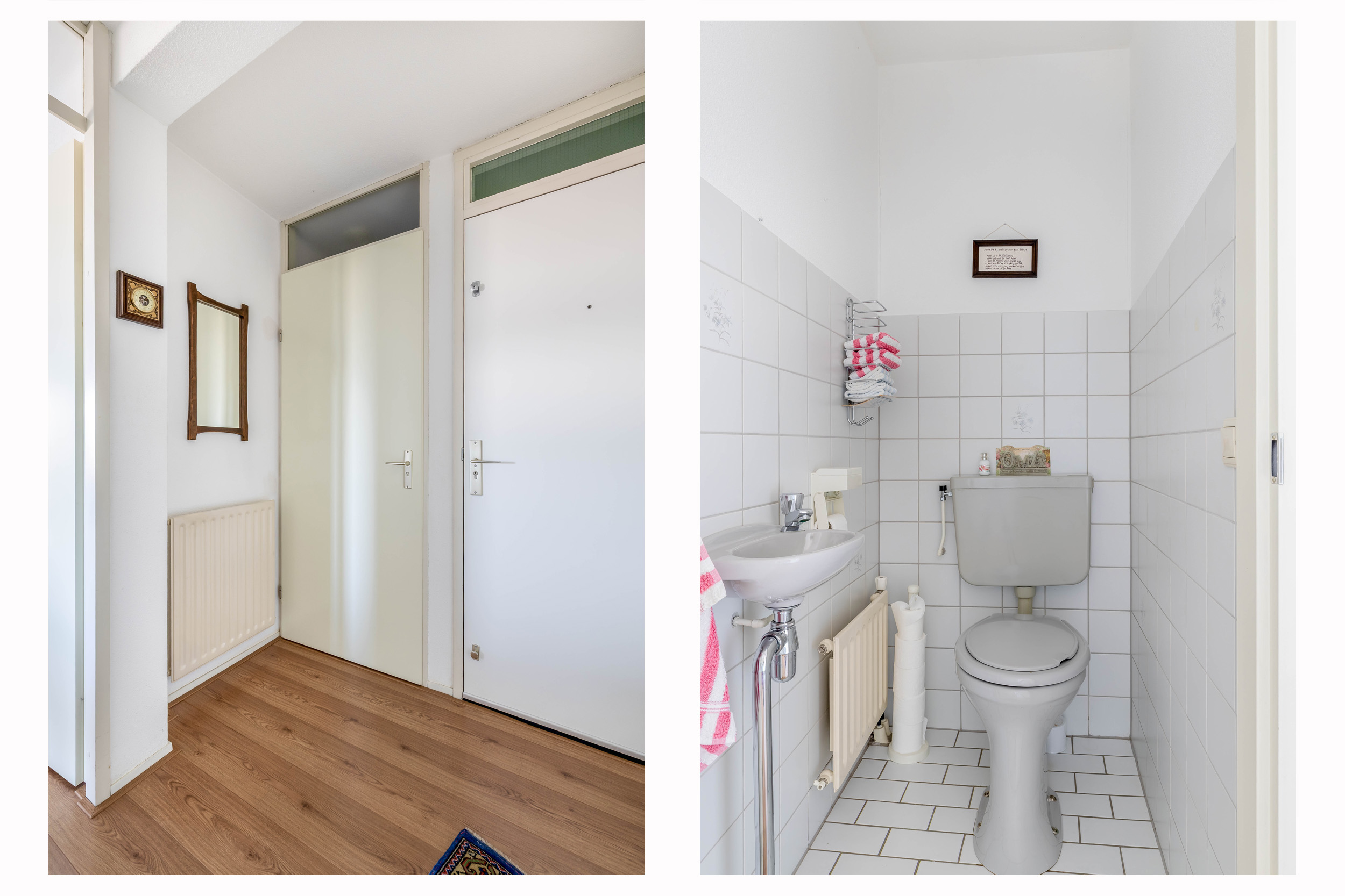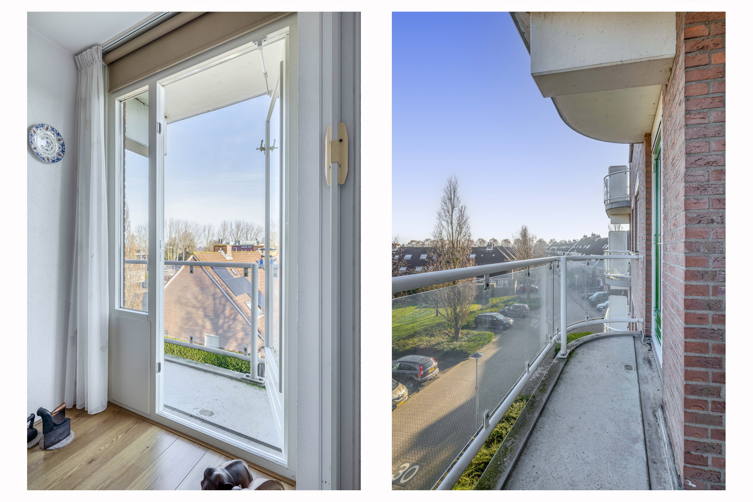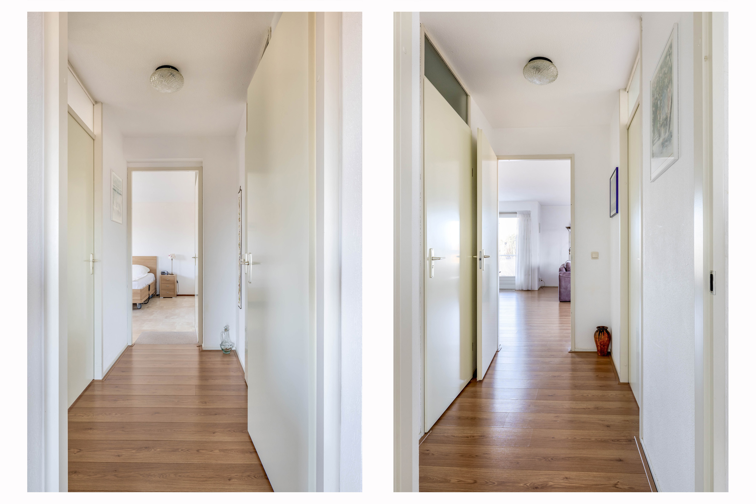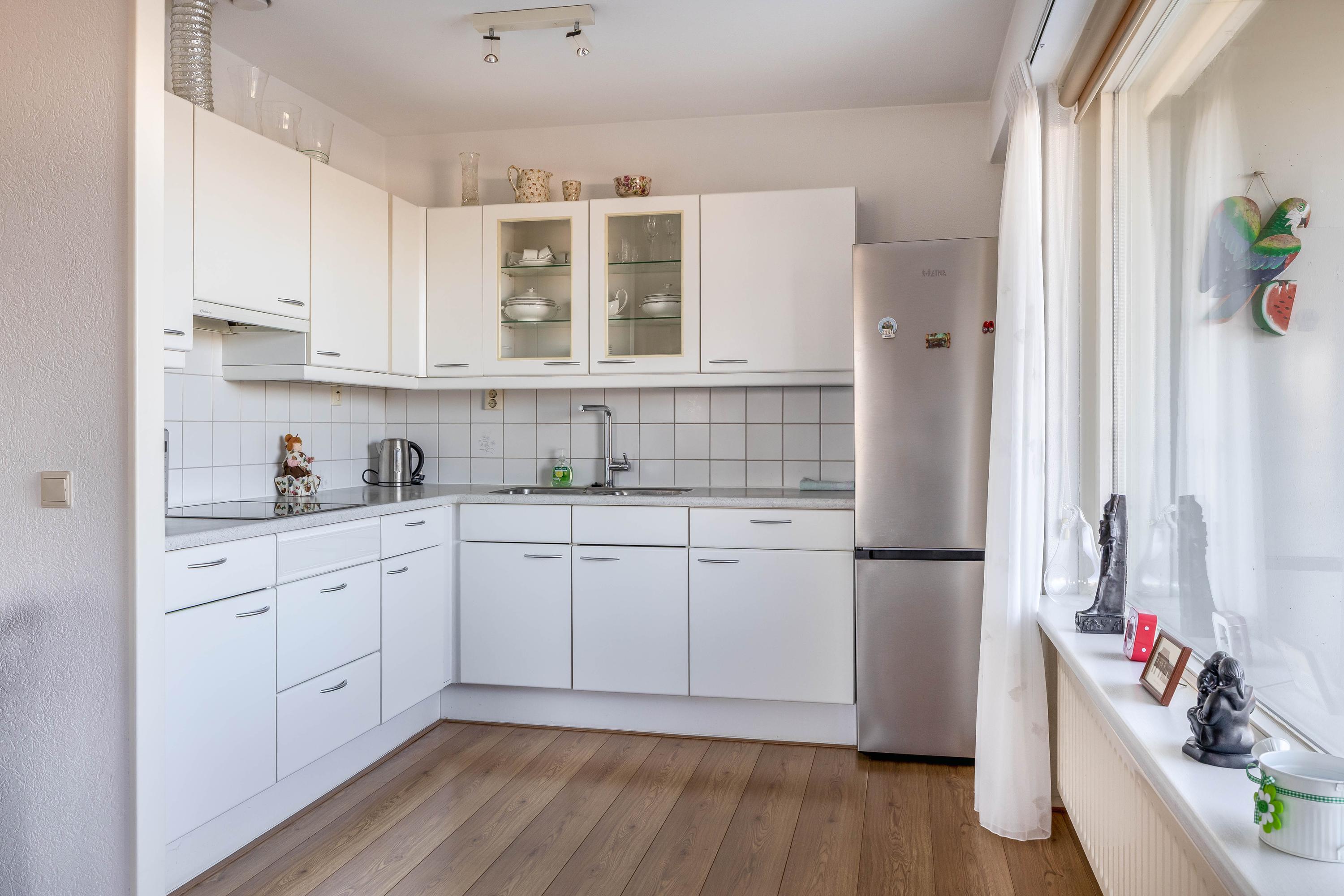 De entree biedt toegang tot de stookruimte met cv-combiketel (Remeha, 2024), de meterkast, een aparte berging met mechanische ventilatie-unit (2003) en de deels betegelde toiletruimte met toilet en fonteintje. Vanuit hier kom je in de royale en lichte woonkamer met eethoek, die toegang geeft tot een balkon op het noordoosten waar je heerlijk van de ochtendzon kunt genieten. De open keuken, voorzien van diverse inbouwapparatuur, sluit direct aan op de woonkamer en biedt toegang tot het grotere balkon op het noordwesten, dat tevens beschikt over een directe verbinding met de buitentrap als extra (brand)vluchtroute. Via een vouwdeur in de woonkamer bereik je één van de slaapkamers, welke ook toegankelijk is vanuit de hal. Vanuit de hal zijn daarnaast de hoofdslaapkamer bereikbaar, voorzien van een vinylvloer en een eigen balkon op het noordoosten, en de badkamer met wastafelmeubel, inloopdouche, hangend closet en designradiator. Het overige deel van het appartement is afgewerkt met een laminaatvloer, wat zorgt voor een warme en verzorgde uitstraling.