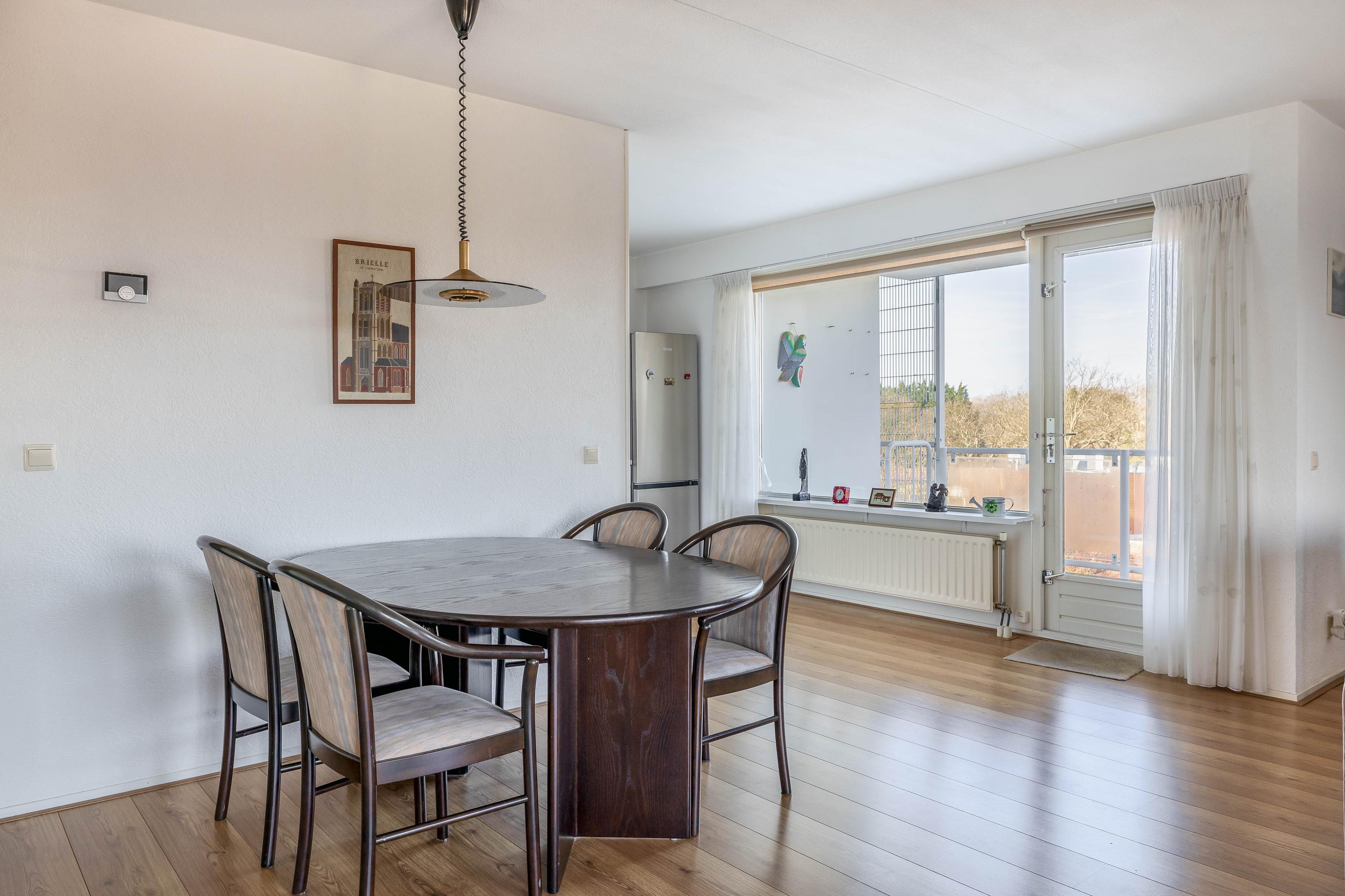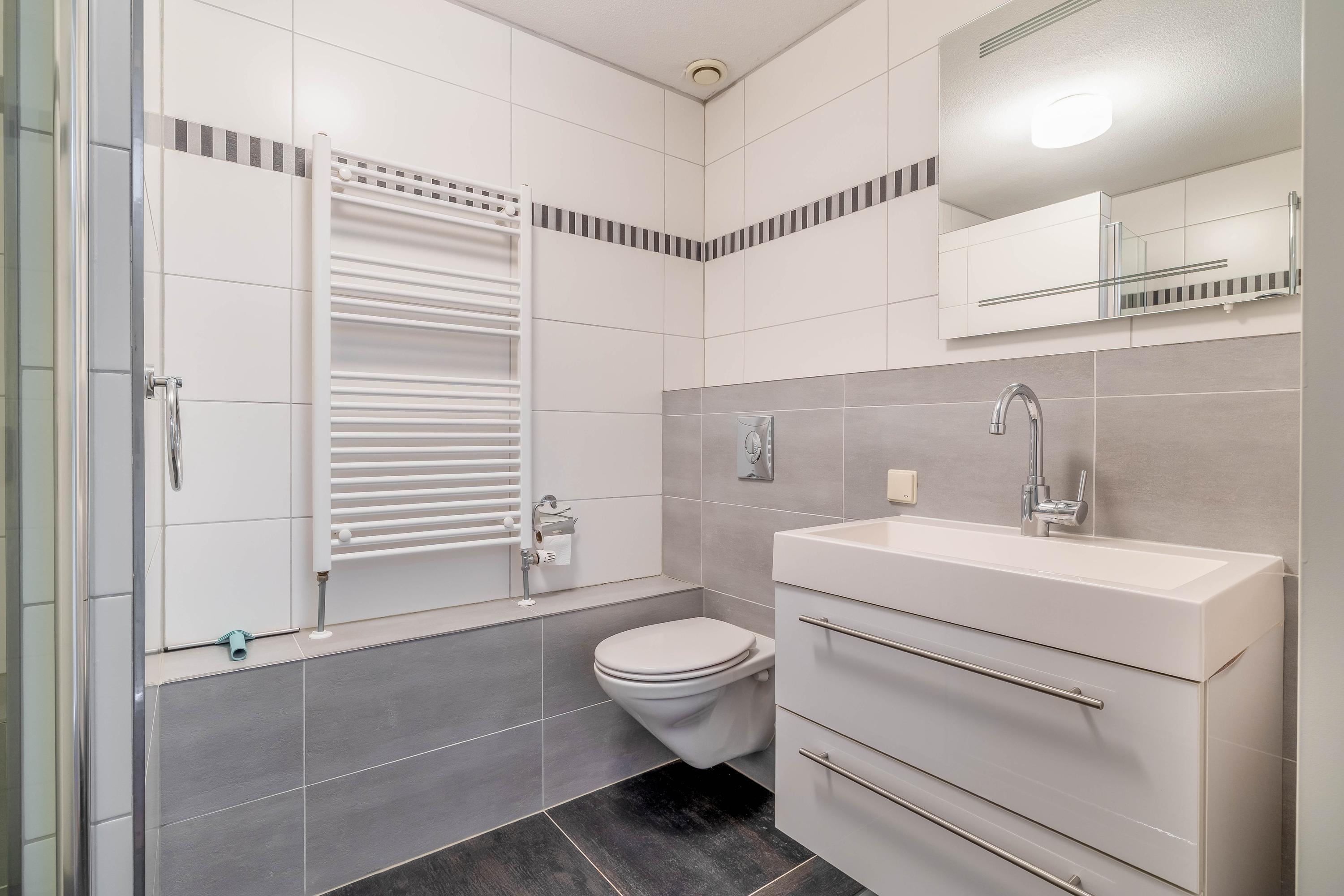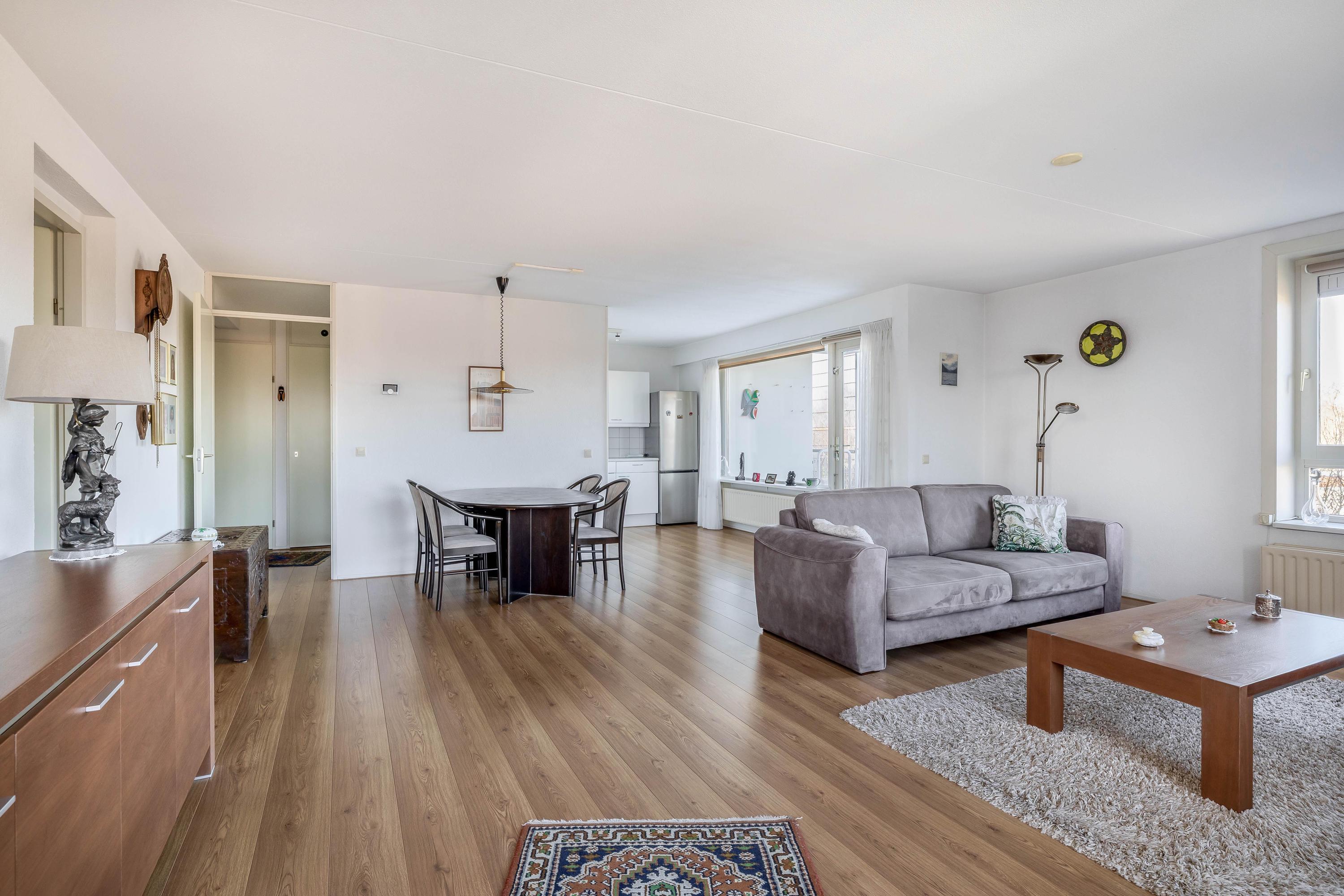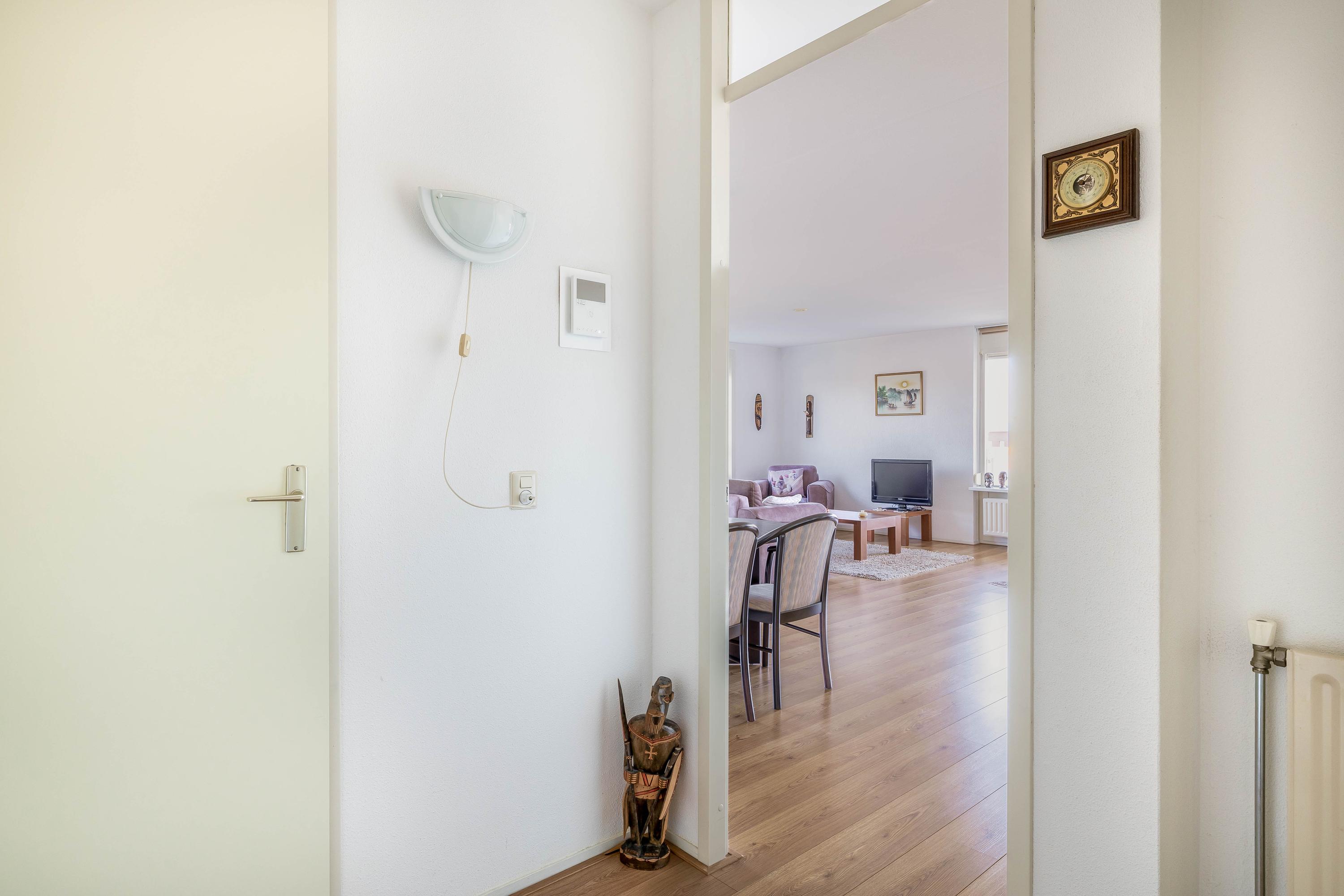 De entree biedt toegang tot de stookruimte met cv-combiketel (Remeha, 2024), de meterkast, een aparte berging met mechanische ventilatie-unit (2003) en de deels betegelde toiletruimte met toilet en fonteintje. Vanuit hier kom je in de royale en lichte woonkamer met eethoek, die toegang geeft tot een balkon op het noordoosten waar je heerlijk van de ochtendzon kunt genieten. De open keuken, voorzien van diverse inbouwapparatuur, sluit direct aan op de woonkamer en biedt toegang tot het grotere balkon op het noordwesten, dat tevens beschikt over een directe verbinding met de buitentrap als extra (brand)vluchtroute. Via een vouwdeur in de woonkamer bereik je één van de slaapkamers, welke ook toegankelijk is vanuit de hal. Vanuit de hal zijn daarnaast de hoofdslaapkamer bereikbaar, voorzien van een vinylvloer en een eigen balkon op het noordoosten, en de badkamer met wastafelmeubel, inloopdouche, hangend closet en designradiator. Het overige deel van het appartement is afgewerkt met een laminaatvloer, wat zorgt voor een warme en verzorgde uitstraling.