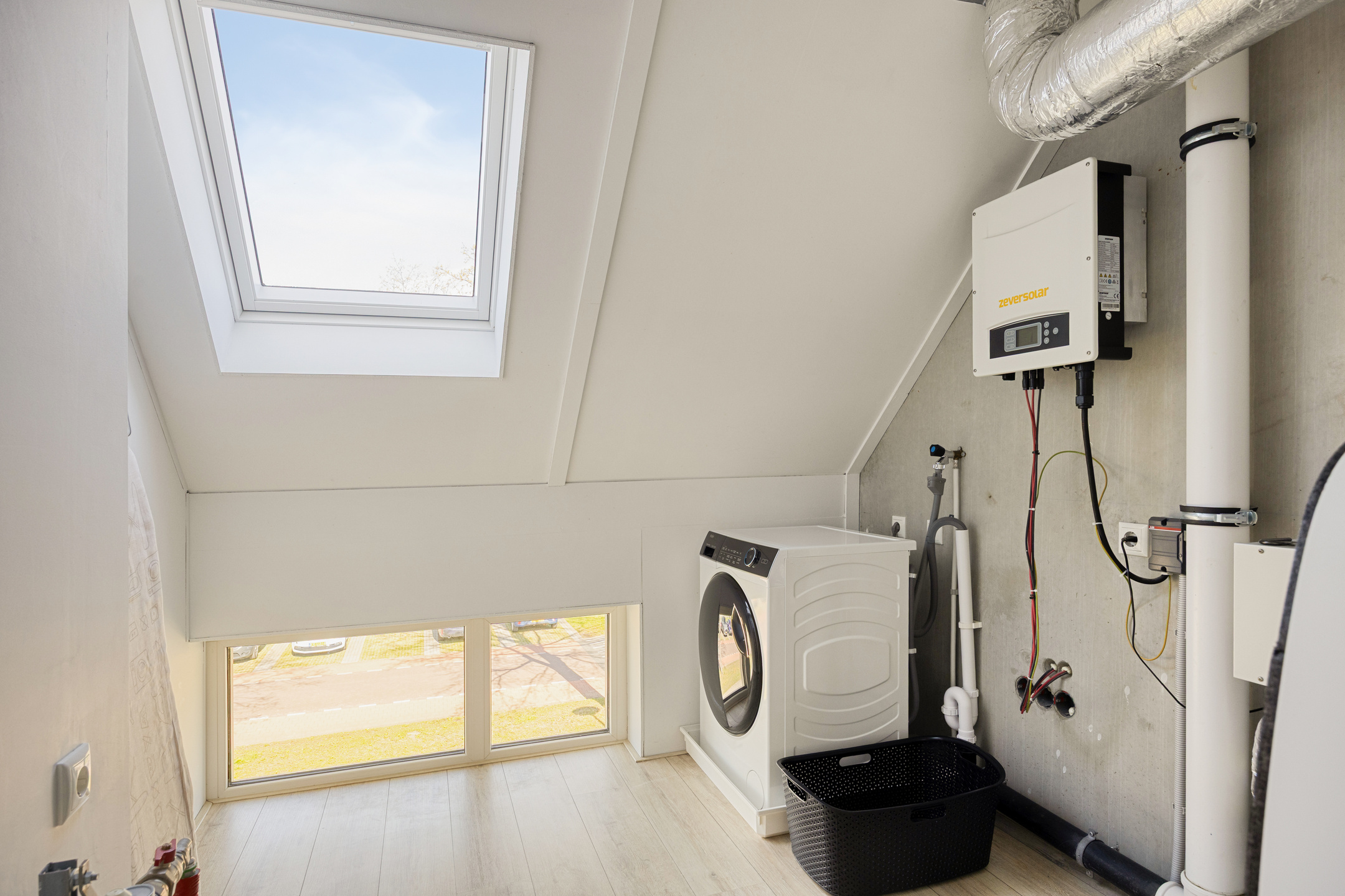 De wasruimte met dakraam ligt aan de voorzijde. Deze is voorzien van wasmachineaansluiting en balans ventilatieunit.