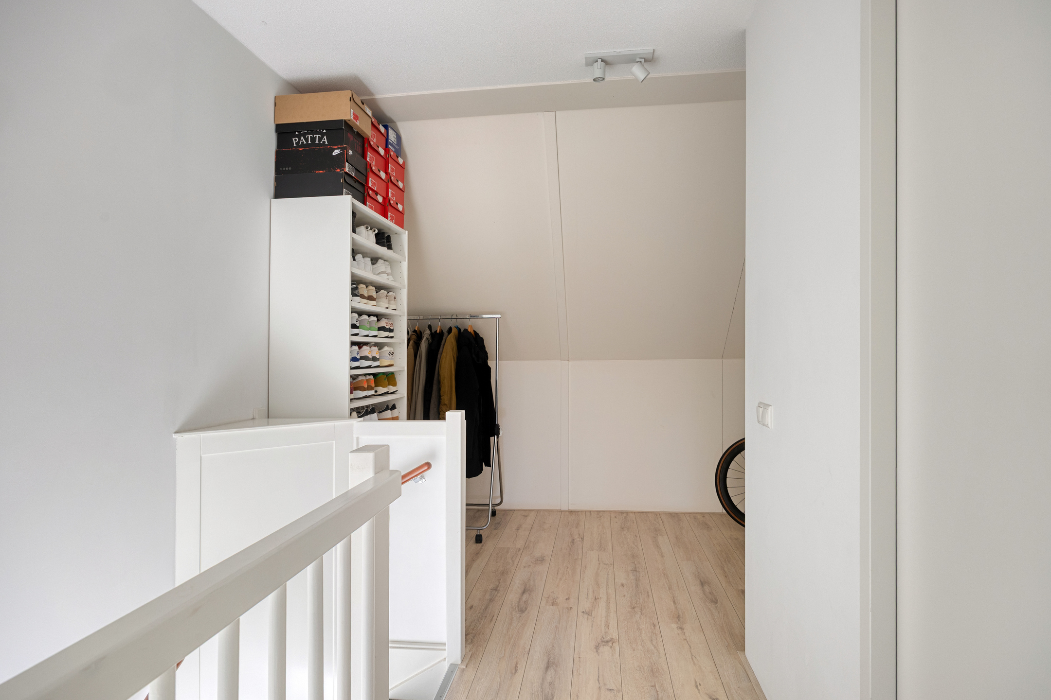 Ruime overloop voorzien van vlizotrap naar de bergvliering. De zeer ruime voorzolder is mogelijk ook een mooie hobbyruimte.