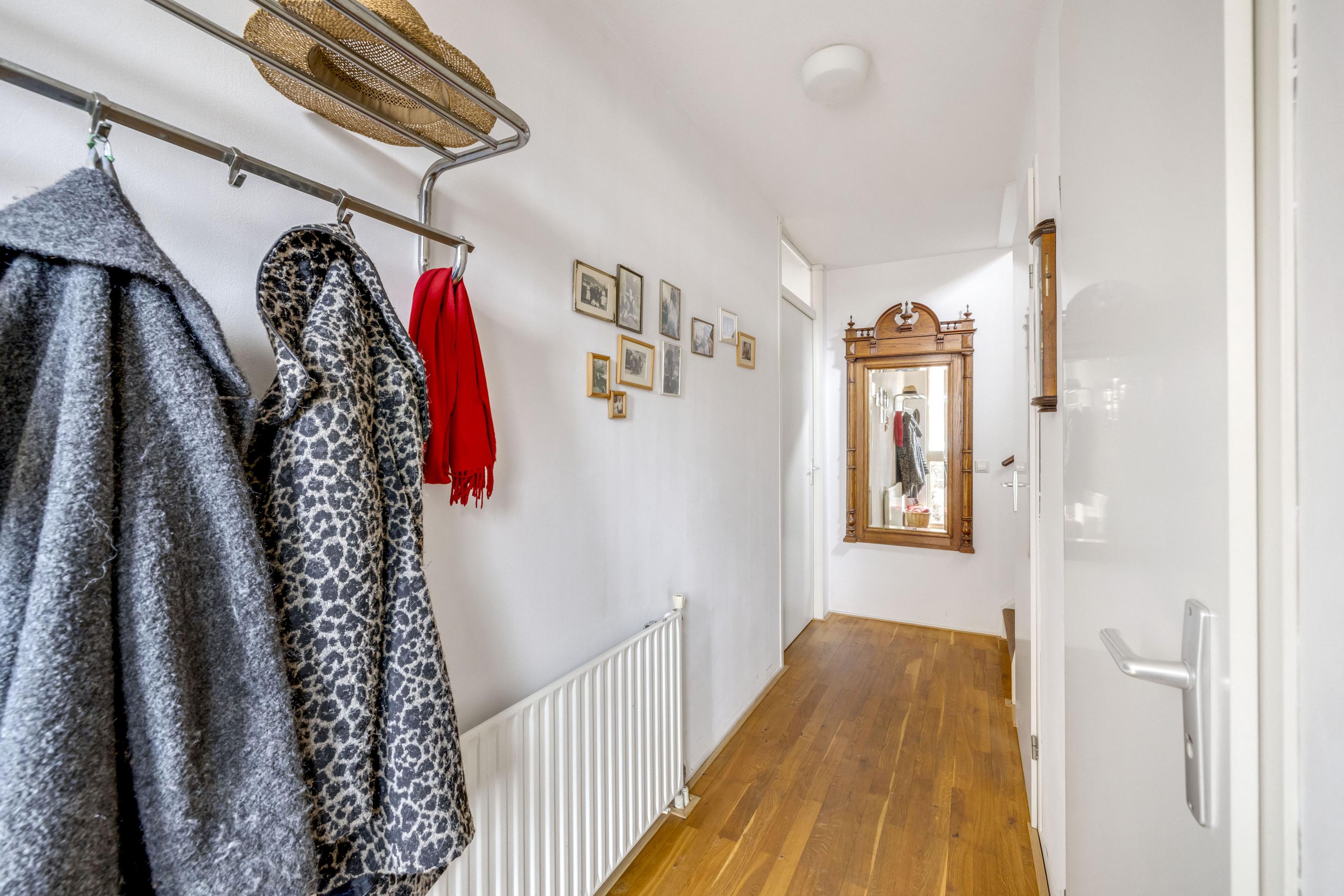 Entree/ hal met garderobe, meterkast, betegeld toilet met fonteintje, trapkast, trapopgang naar de 1e verdieping en toegang tot de woonkamer.