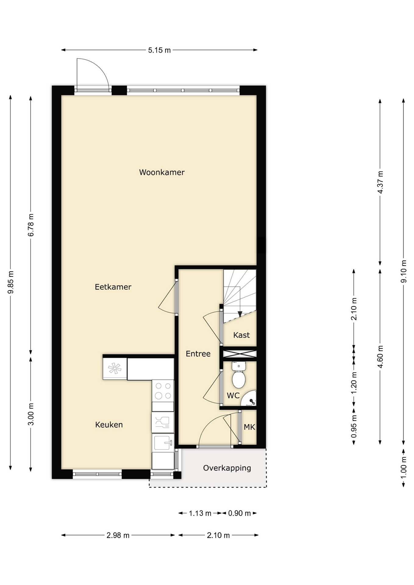 Deze informatie is door De Vreij Makelaardij met de nodige zorgvuldigheid samengesteld. De informatie is echter van algemene aard en niet meer dan een uitnodiging om in onderhandeling te treden. Onzerzijds en verkoper wordt echter geen enkele aansprakelijkheid aanvaard door enige onvolledigheid, onjuistheid of anderszins, dan wel de gevolgen daarvan. De meetinstructie is gebaseerd op de NEN2580. De meetinstructie is bedoeld om een meer eenduidige manier van meten toe te passen voor het geven van een indicatie van de gebruiksoppervlakte. De meetinstructie sluit verschillen in meetuitkomsten niet volledig uit, door bijvoorbeeld interpretatieverschillen, afrondingen of beperkingen bij het uitvoeren van de meting. Van toepassing zijn de VastgoedNed voorwaarden.