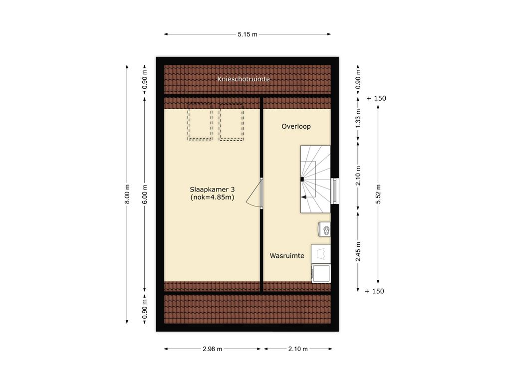 Voorzolder met zijraam, wasruimte met opstelplaats voor wasmachine, mechanische ventilatie en de CV-ketel (Atag 2015).