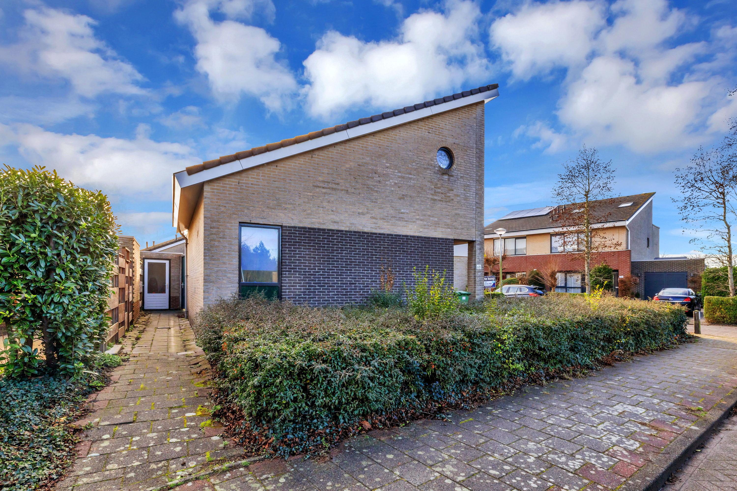 De voortuin beschikt over een eigen oprit en een fraaie border.