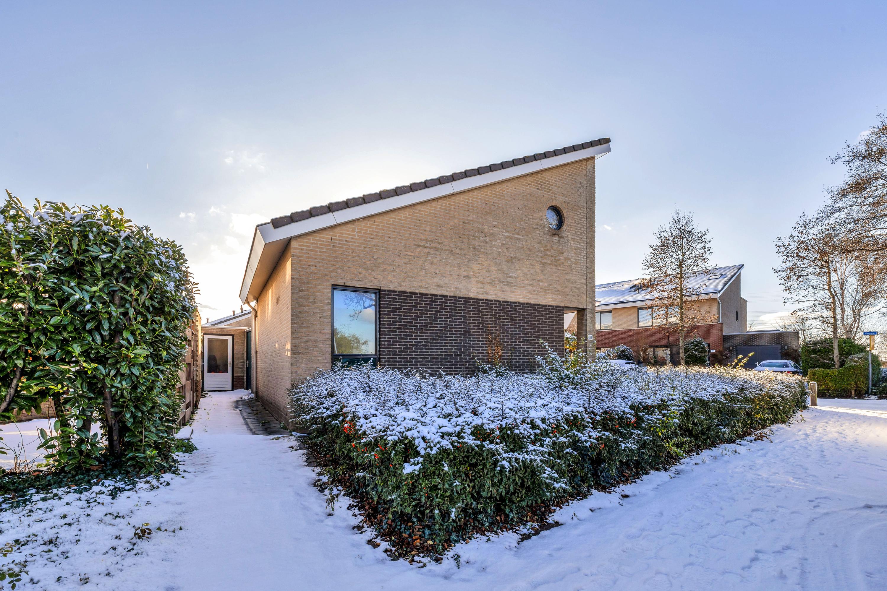 De voortuin beschikt over een eigen oprit en een fraaie border.