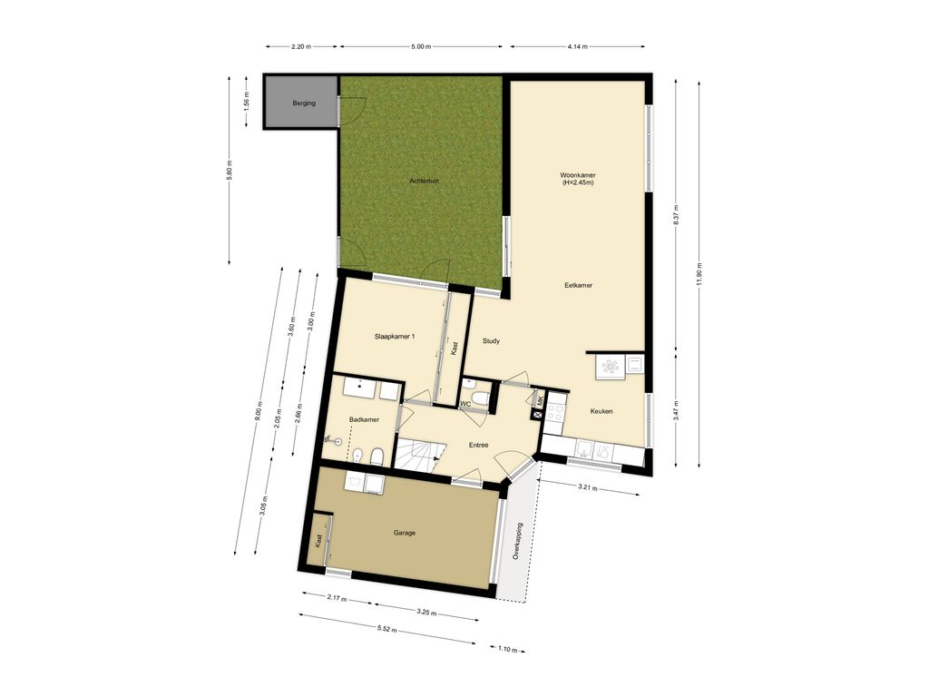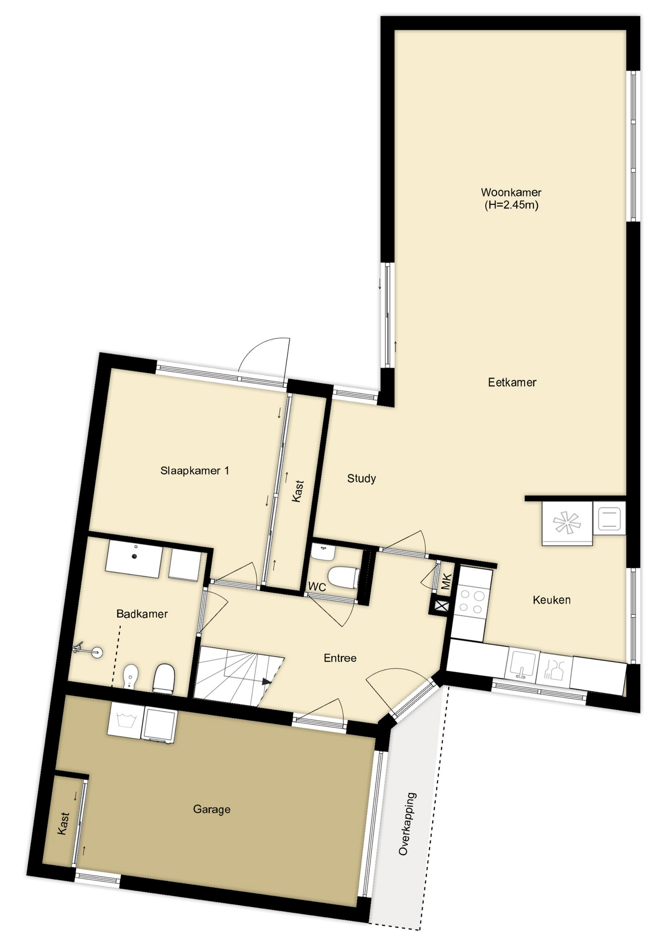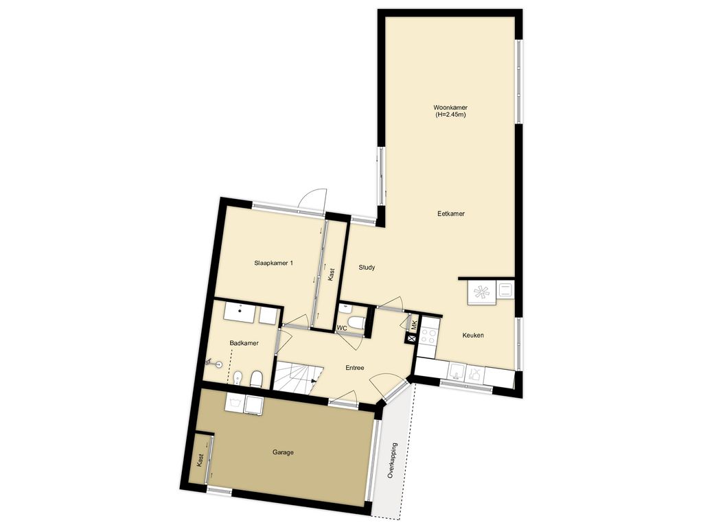 - open keuken en moderne badkamer;