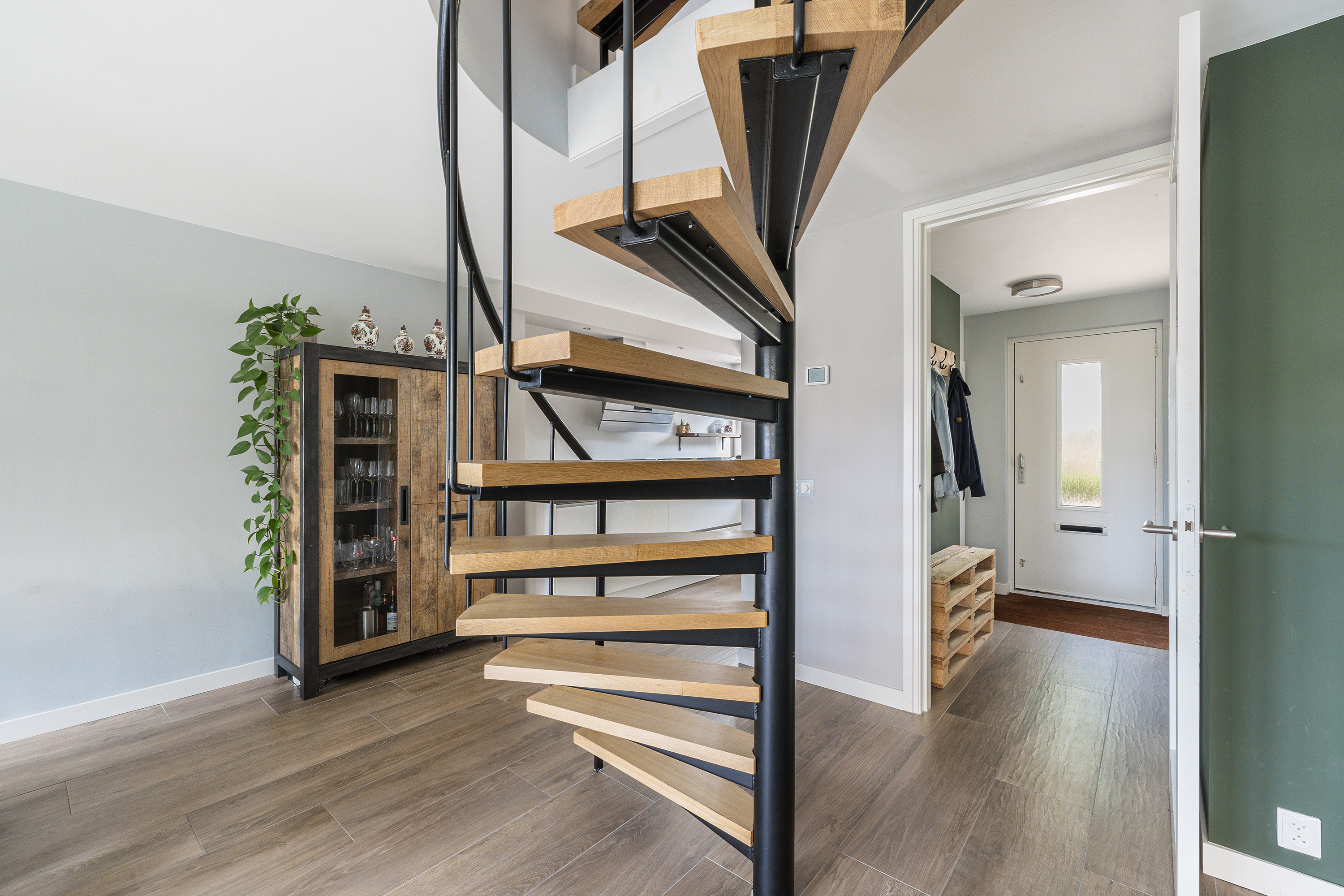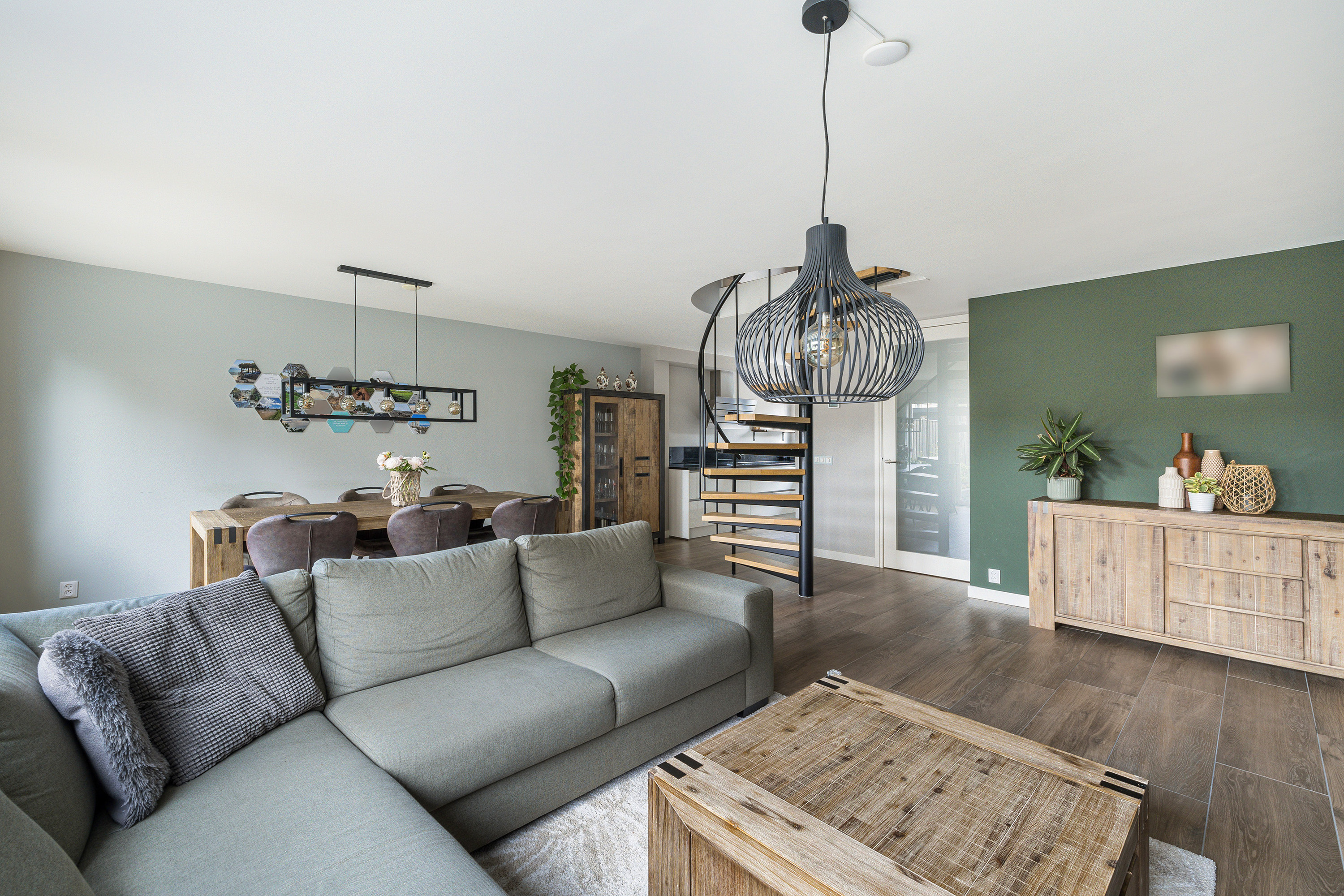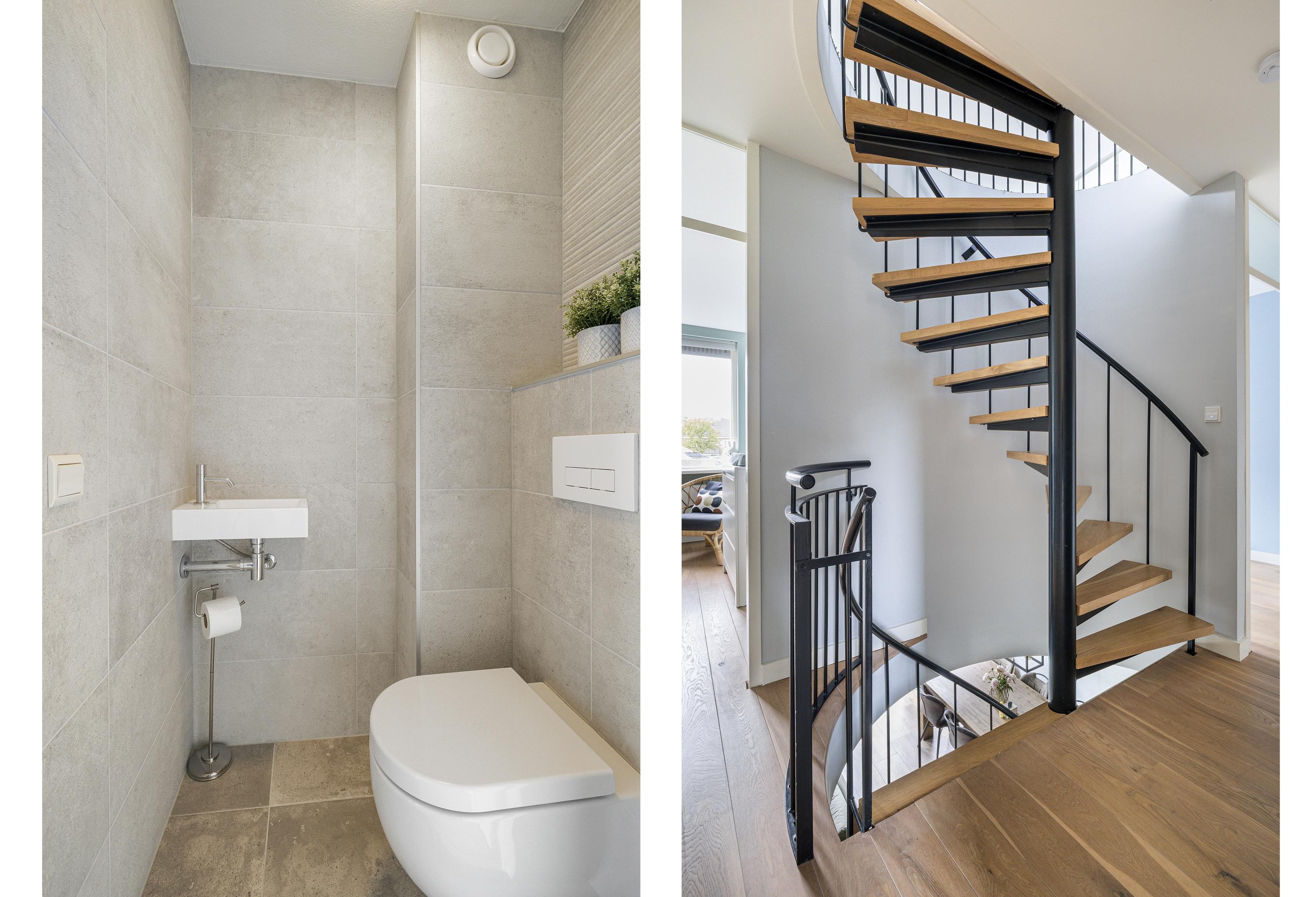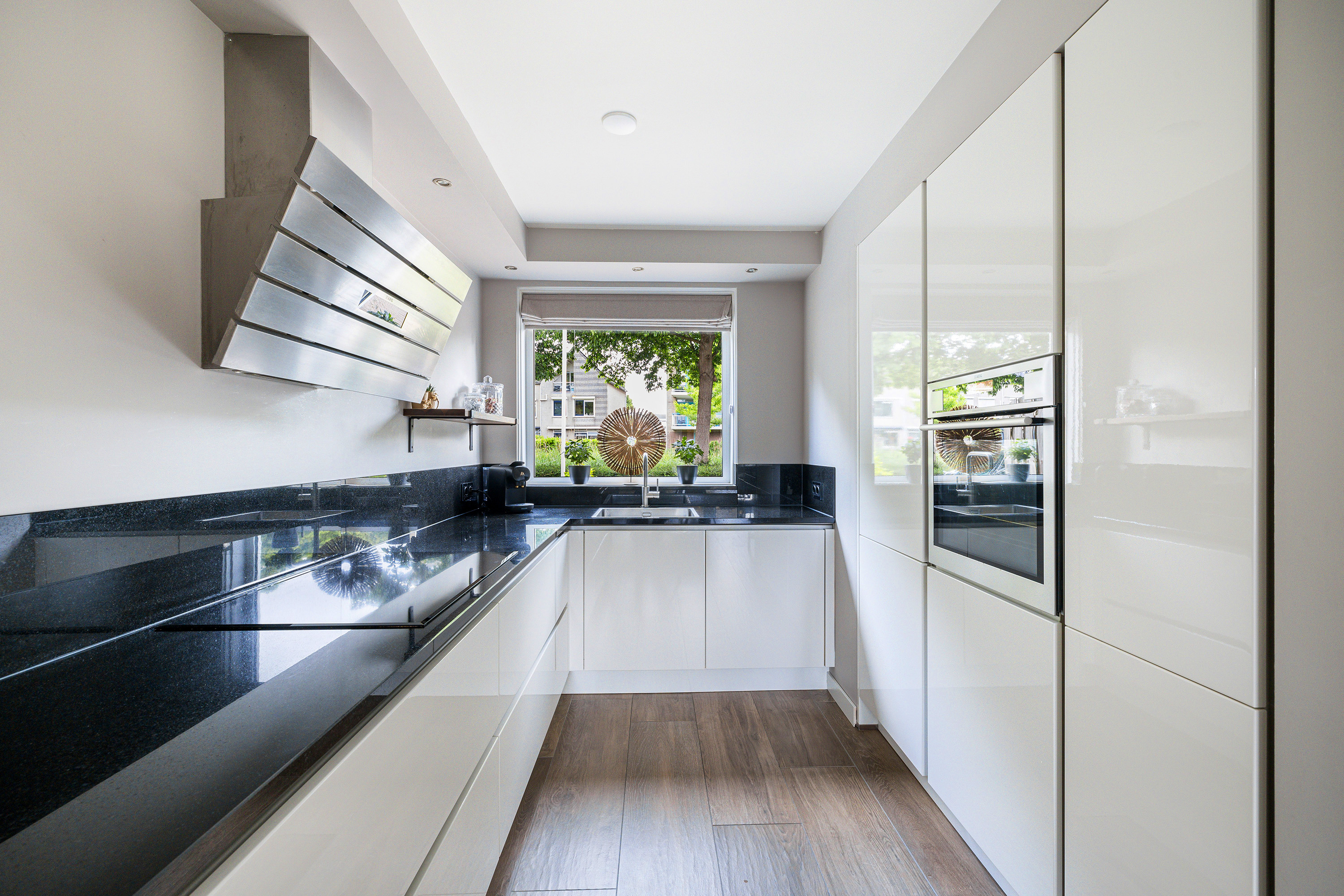 We komen binnen in de hal met meterkast, toegang tot de garage en een modern toilet met hangend closet, fontein, plafondspots en een nette betegeling tot aan het plafond. De royale woon- en eetkamer is heerlijk licht door de grote raampartijen en heeft openslaande deuren (met voorzethor) naar de zonnige achtertuin. De vloer is afgewerkt met een plavuis in houtlook, voorzien van vloerverwarming en de wanden zijn strak gestuct. De spiltrap naar de verdieping geeft de ruimte extra karakter. De moderne open keuken staat in een L-opstelling met daarnaast ook nog een praktische ingebouwde wandkast. De keuken is compleet uitgerust met een inductiekookplaat, wandschouw afzuigkap, koel-/vriescombinatie, oven en een vaatwasser. Onder het granieten aanrechtblad is sier led verlichting aangebracht.