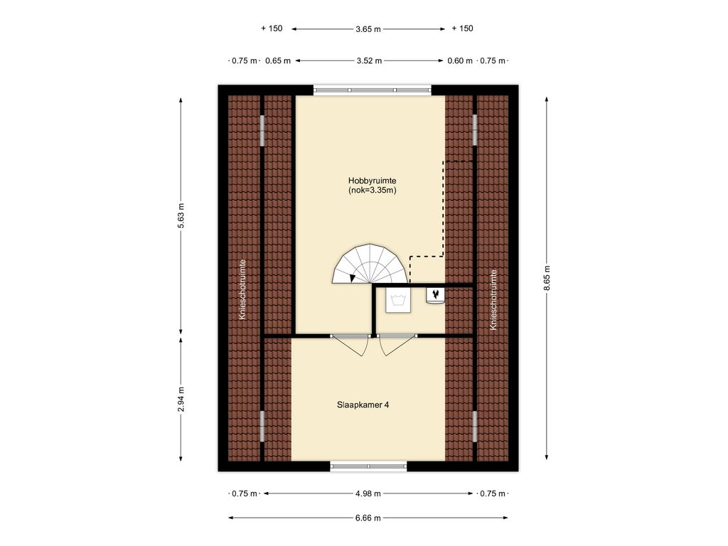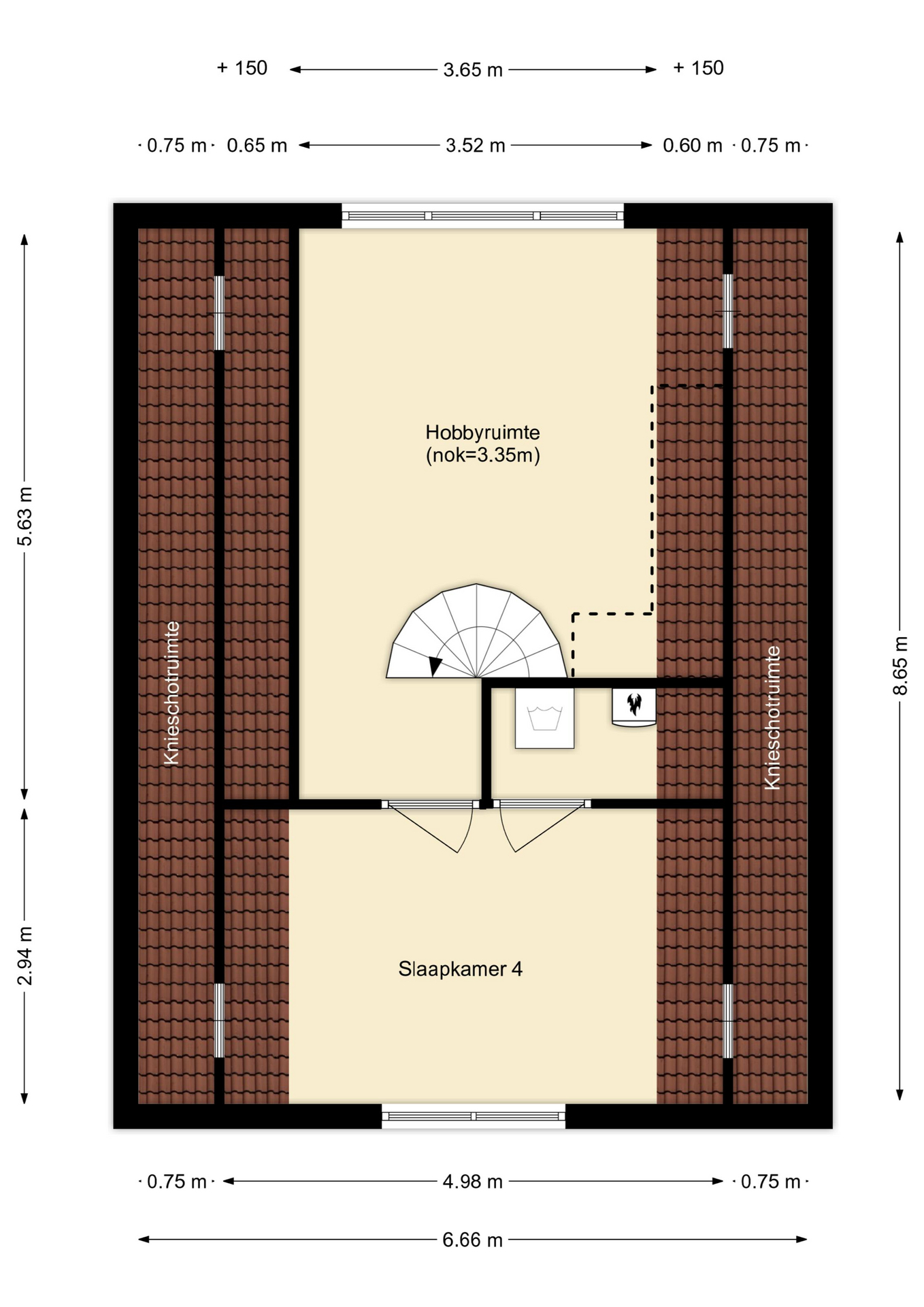 Een royale zolderverdieping waar eenvoudig nog een extra slaapkamer of een werk/hobbykamer gerealiseerd kan worden. Aan de achterzijde bevindt zich praktische bergruimte achter knieschotten met schuifdeuren. Verder is er een 4e slaapkamer aan de voorzijde en een separate technische ruimte met de cv-ketel (Nefit 2023), mechanische ventilatie en aansluitingen voor wasmachine en droger. De zolder is voorzien van tapijt.