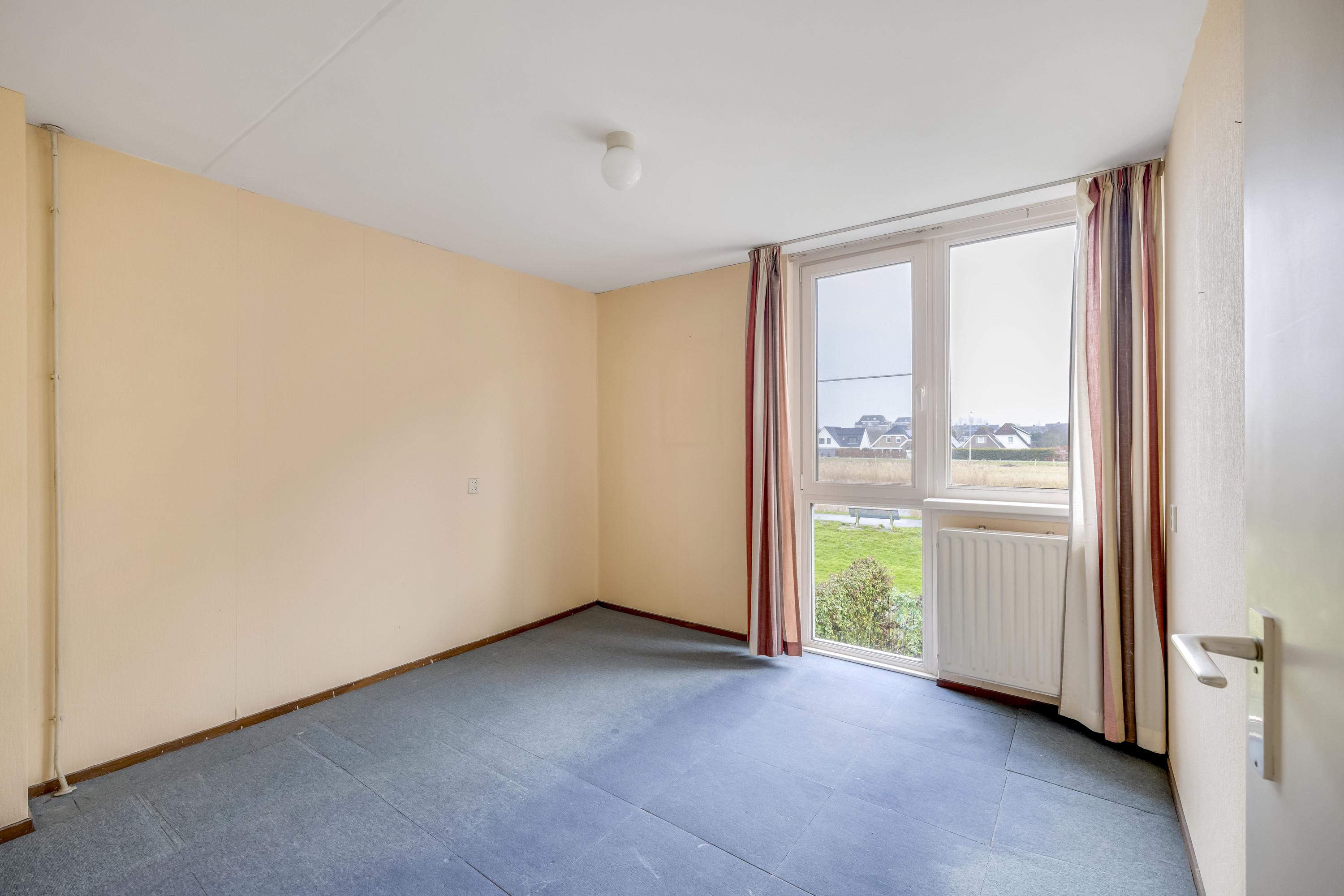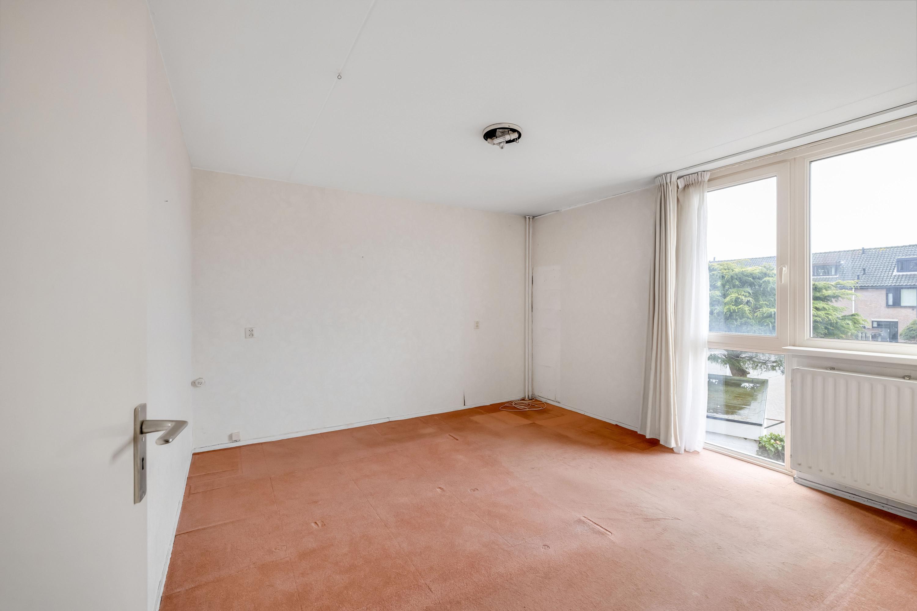 Deze hoofdslaapkamer is gelegen aan de voorzijde van de woning en v.v. een royaal gevelraam tot aan de vloer.