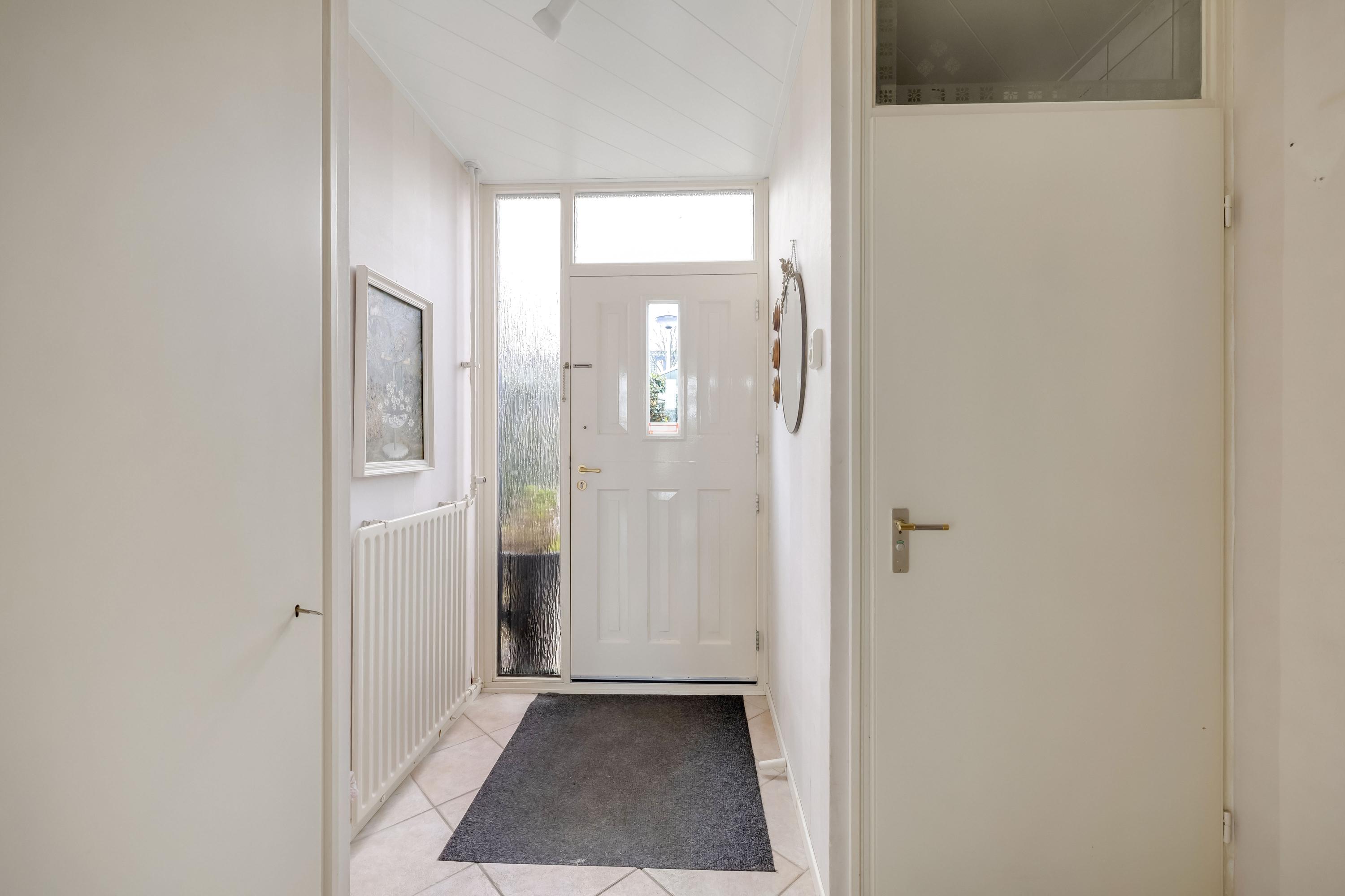 Entree/ hal met moderne meterkast met voldoende groepen, betegeld toilet met fonteintje en de trapopgang naar de eerste verdieping.
