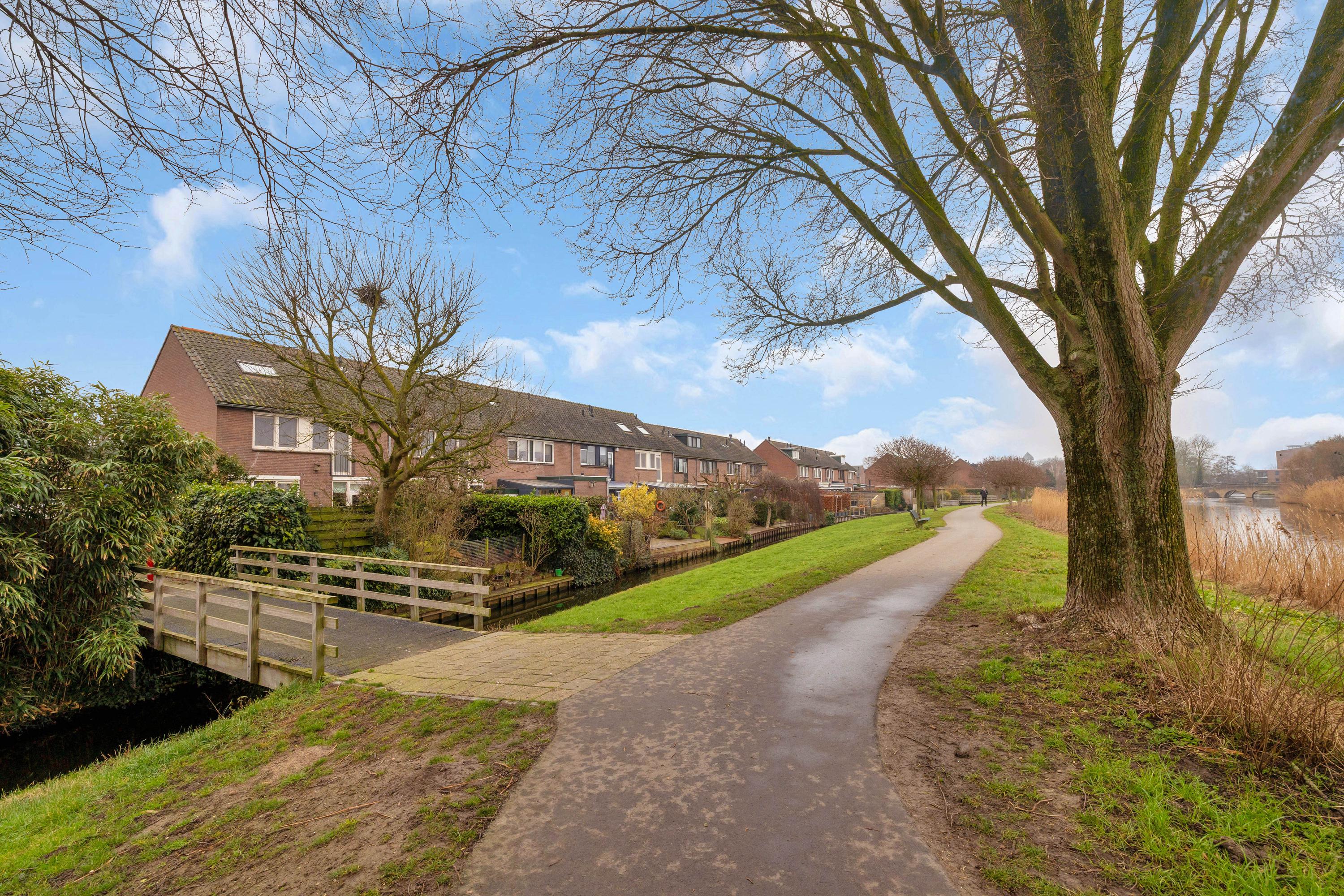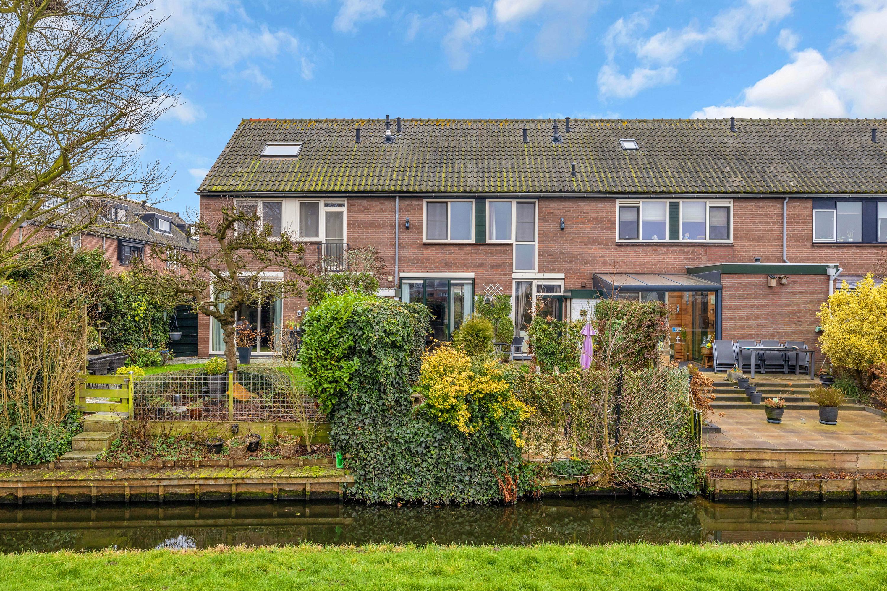 De sfeervolle achtertuin is aan het water gelegen en is ingedeeld in 2 niveau's.