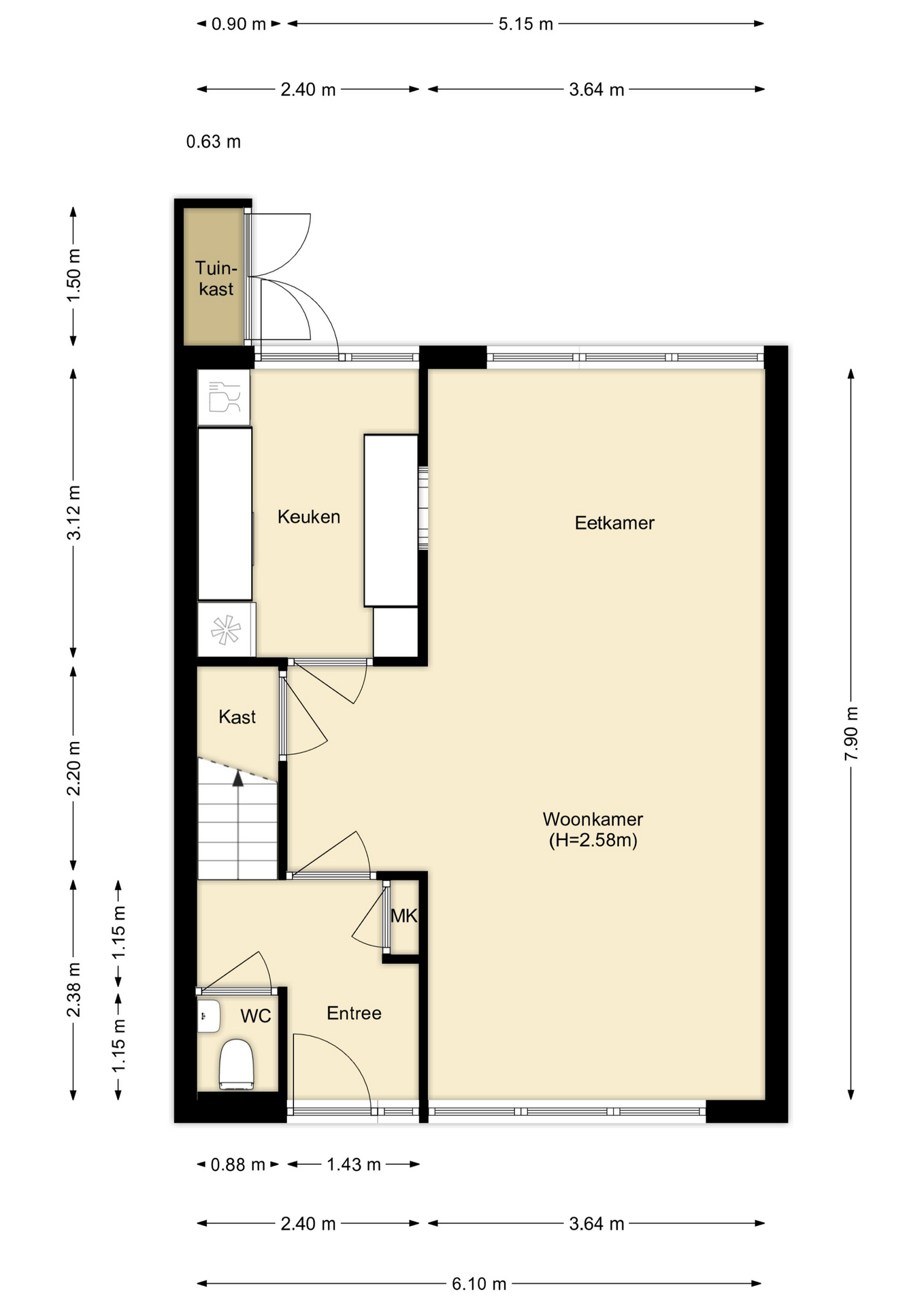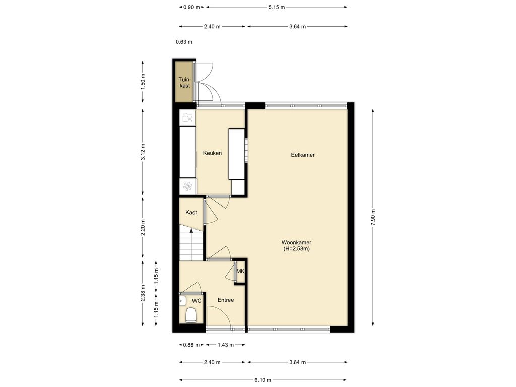 Deze informatie is door De Vreij Makelaardij met de nodige zorgvuldigheid samengesteld. De informatie is echter van algemene aard en niet meer dan een uitnodiging om in onderhandeling te treden. Onzerzijds en verkoper wordt echter geen enkele aansprakelijkheid aanvaard door enige onvolledigheid, onjuistheid of anderszins, dan wel de gevolgen daarvan. De meetinstructie is gebaseerd op de NEN2580. De meetinstructie is bedoeld om een meer eenduidige manier van meten toe te passen voor het geven van een indicatie van de gebruiksoppervlakte. De meetinstructie sluit verschillen in meetuitkomsten niet volledig uit, door bijvoorbeeld interpretatieverschillen, afrondingen of beperkingen bij het uitvoeren van de meting. Van toepassing zijn de Vastgoed Ned voorwaarden.