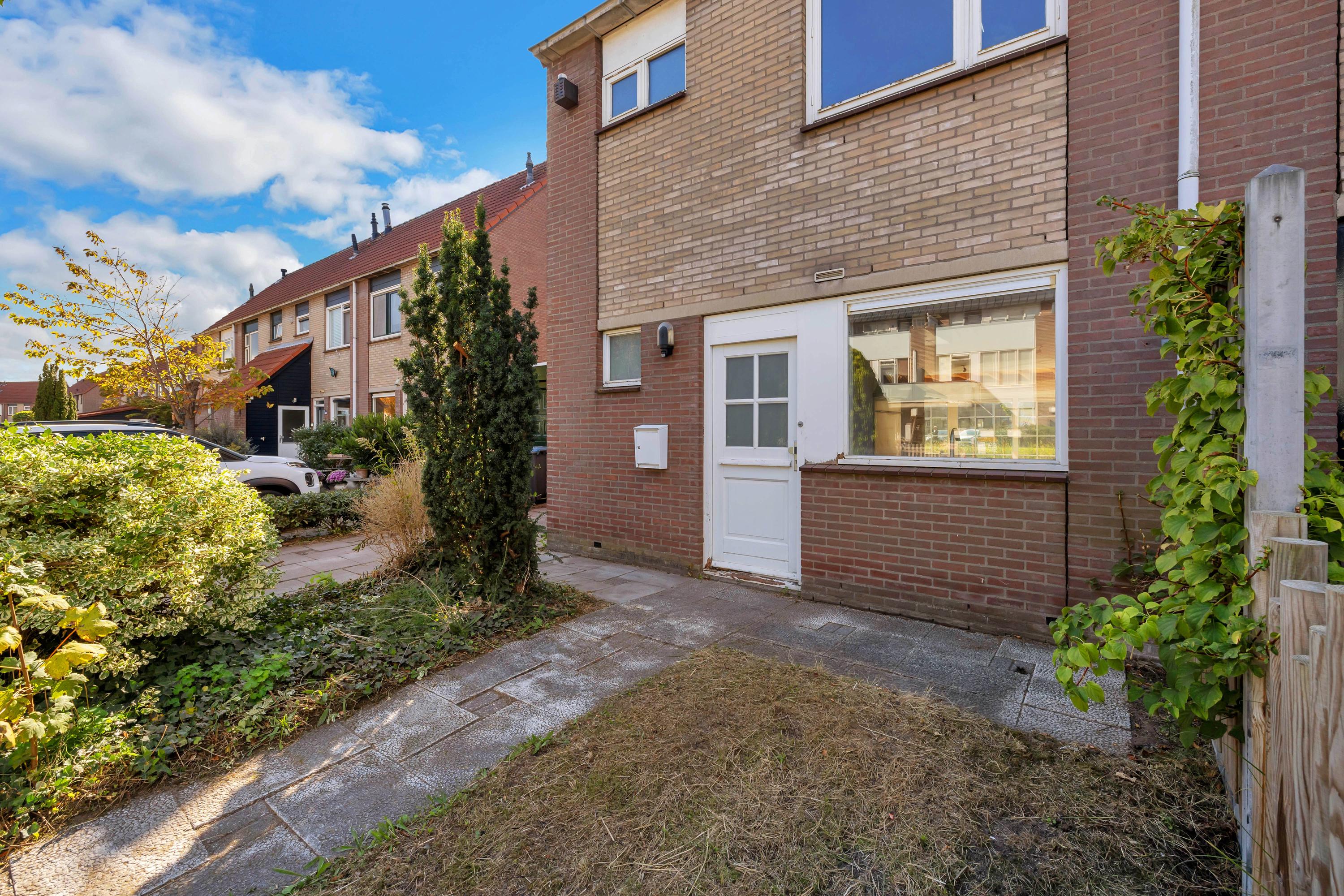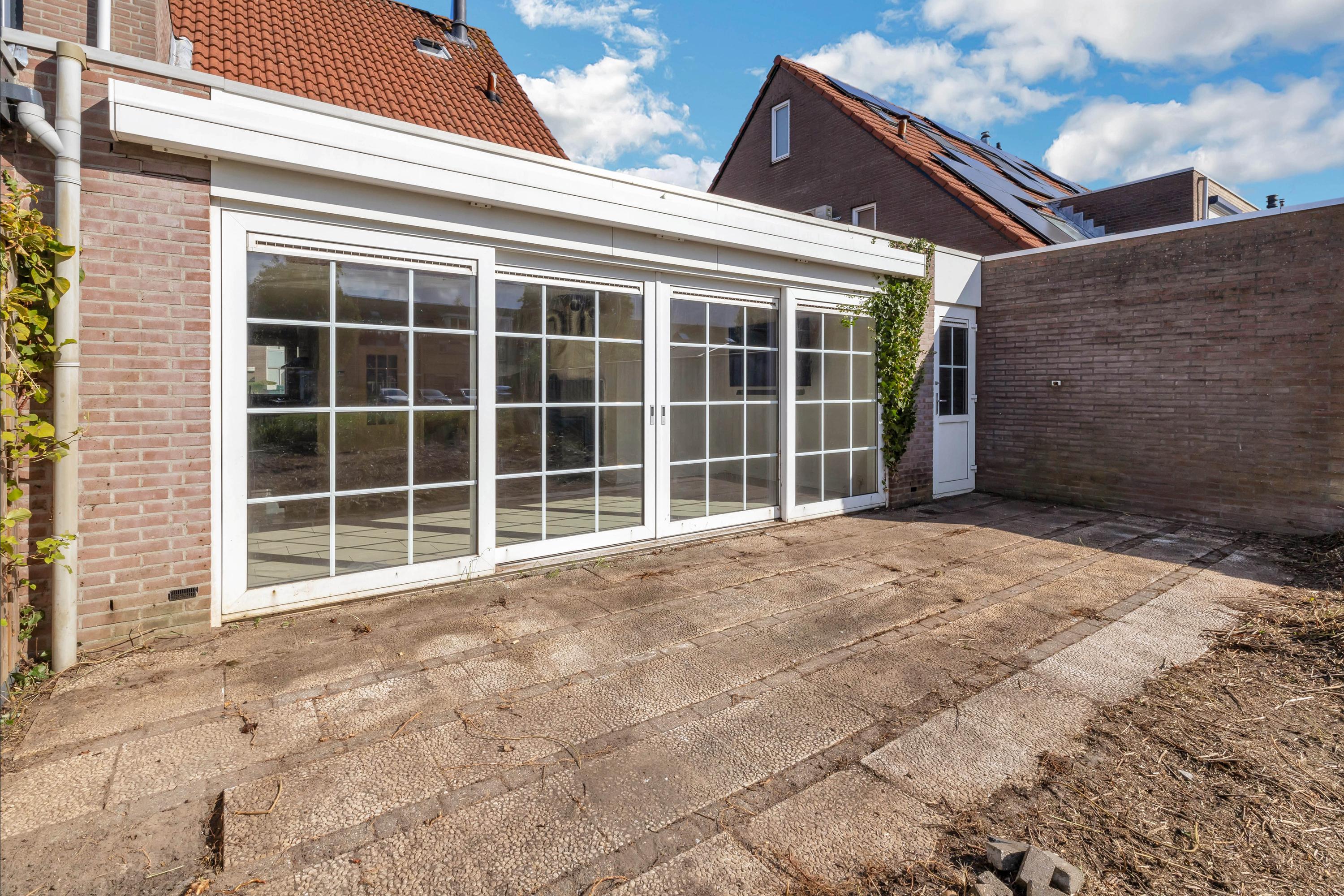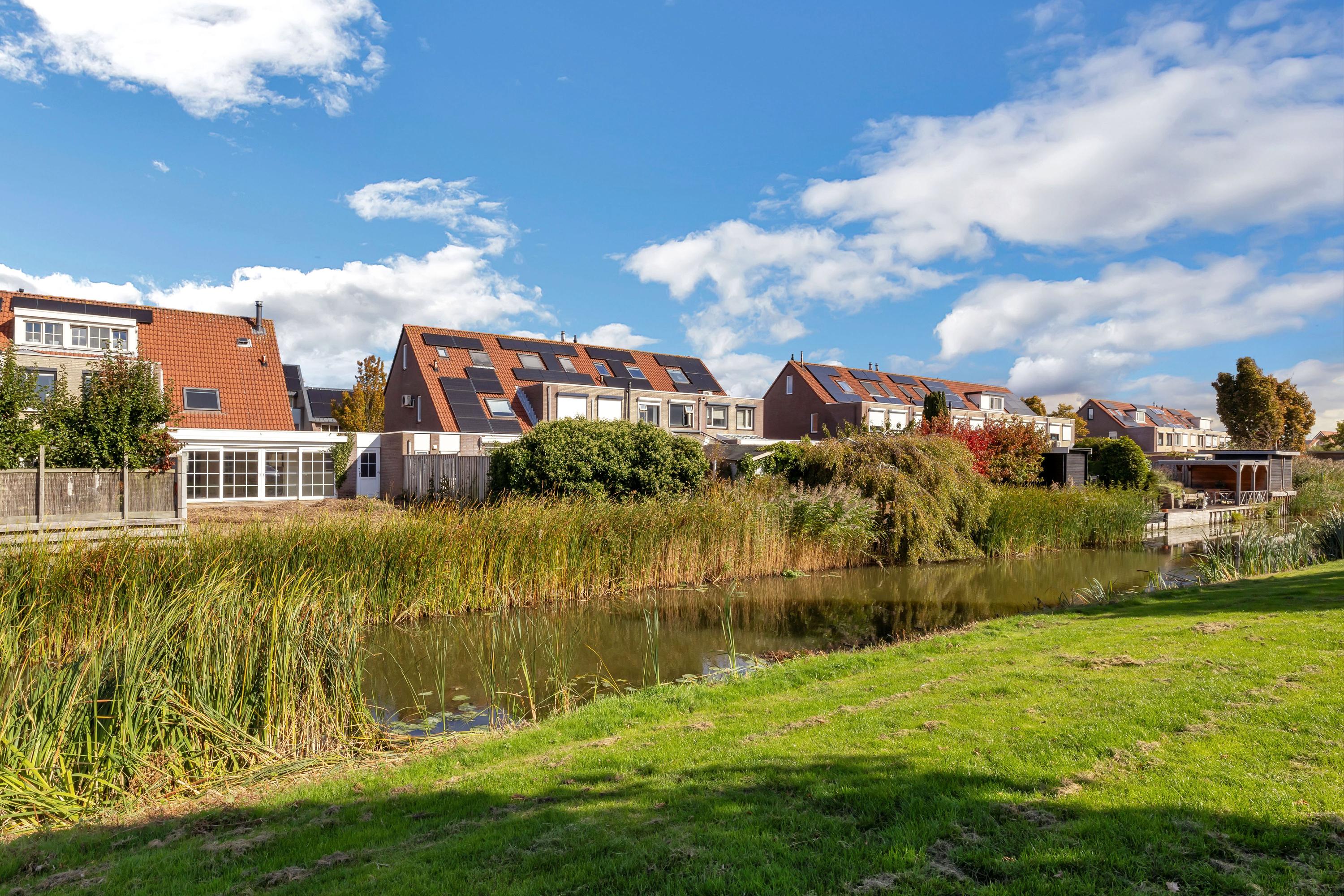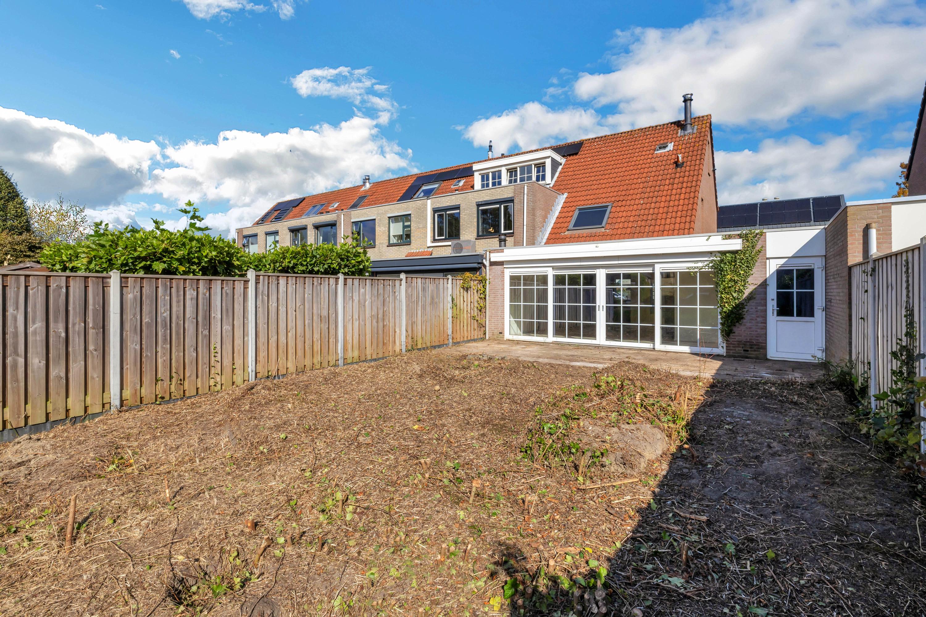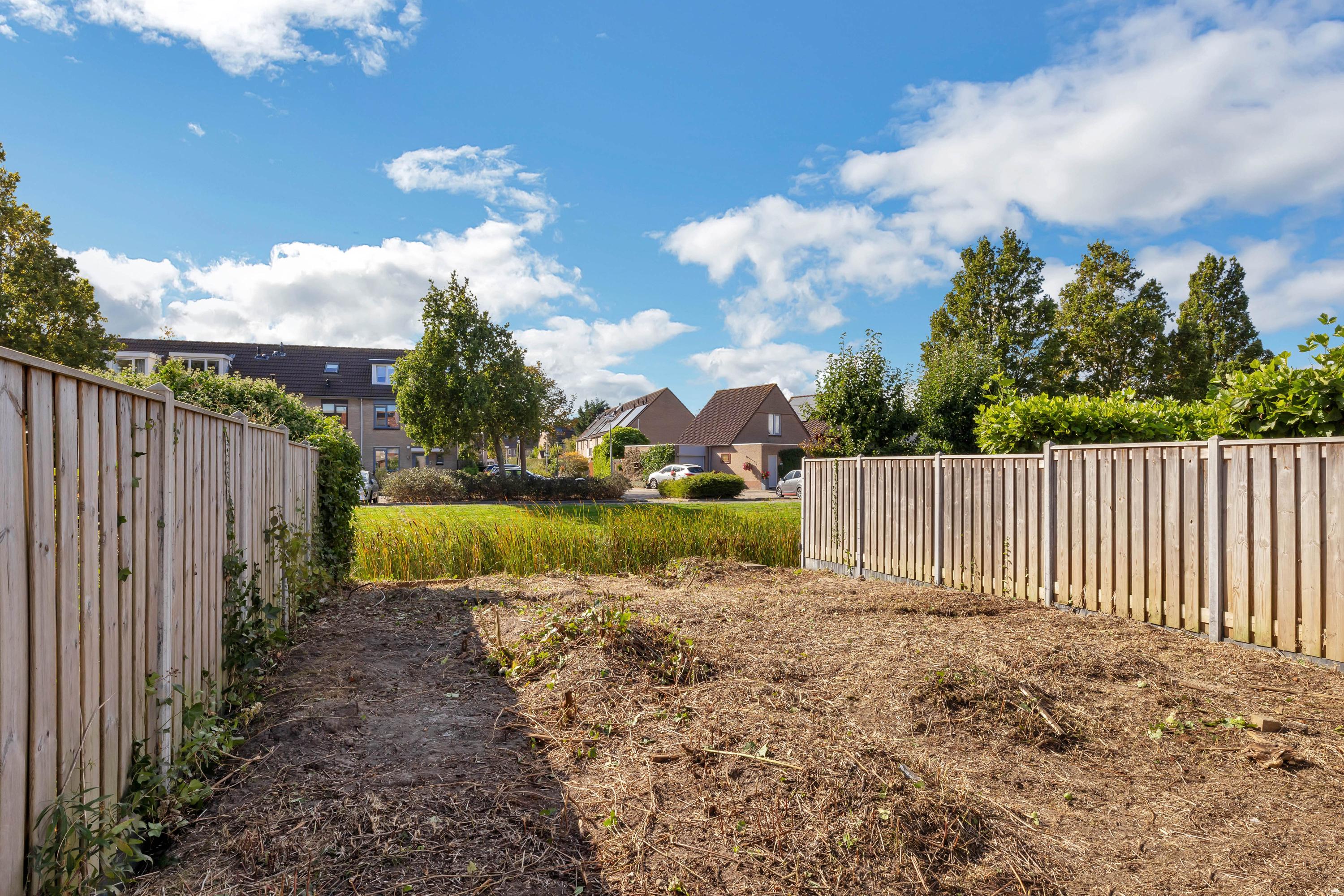 De achtertuin is gelegen aan een singel en bereikbaar via de schuifpui in de woonkamer. De tuin behoeft wat liefde en onderhoud, maar is een heerlijke plek in de zon. Via de garage is er een achterom.