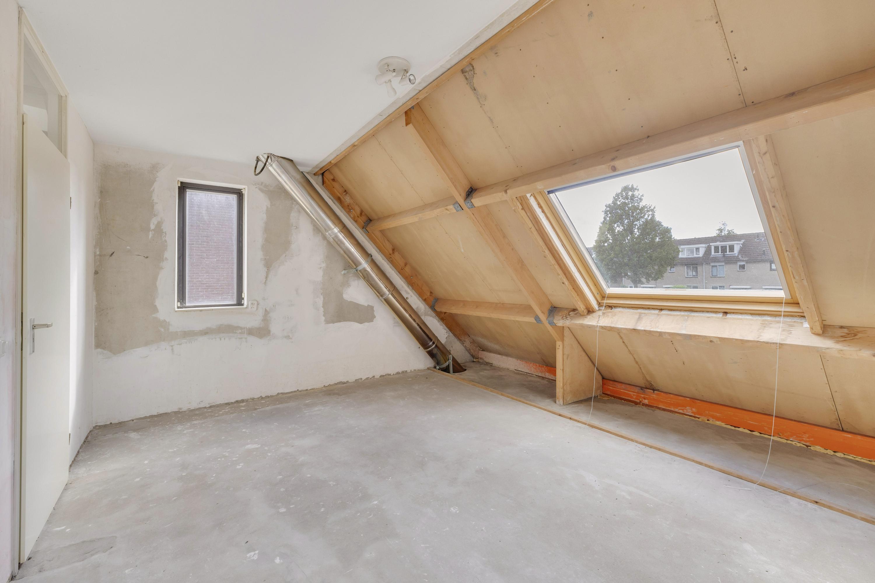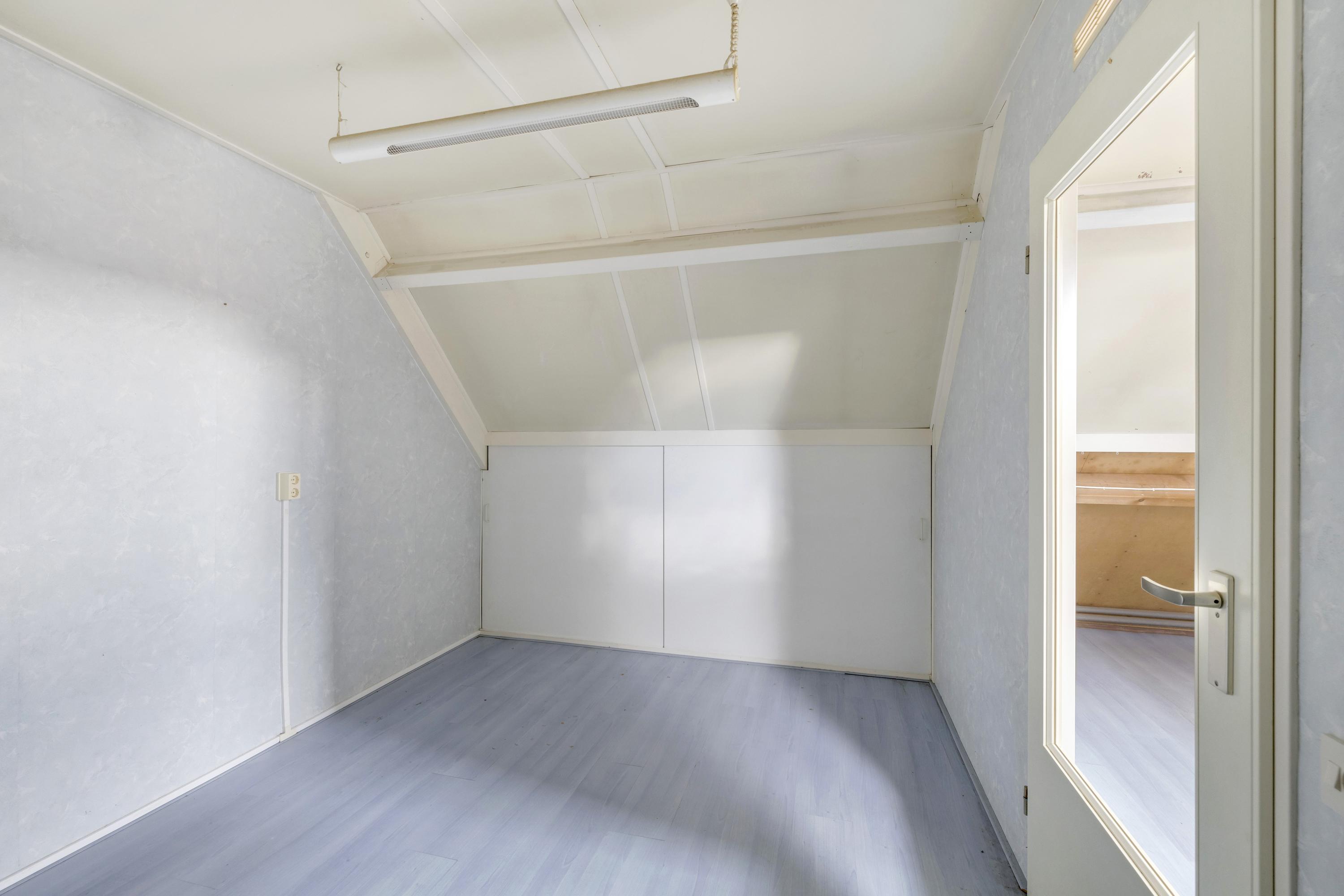 Deze kamer is voorzien van bergruimte achter knieschotten. Hier is mogelijk een dakraam of dakkapel te plaatsen.