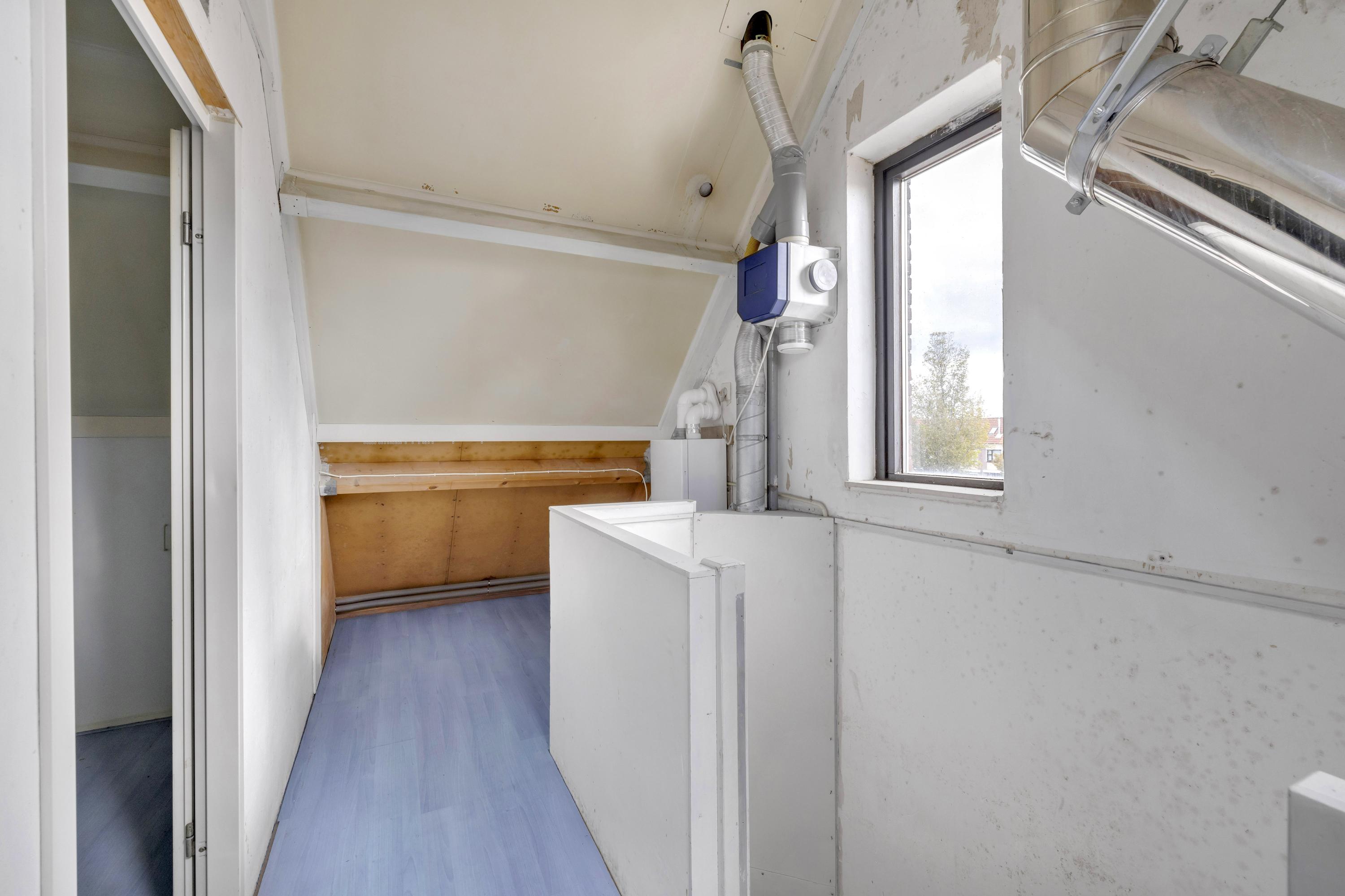 Ruime overloop met zijraam, dakraam, opstelplaats voor cv-ketel (Remeha 2020) en toegang tot de hobbyruimte/ slaapkamer III.