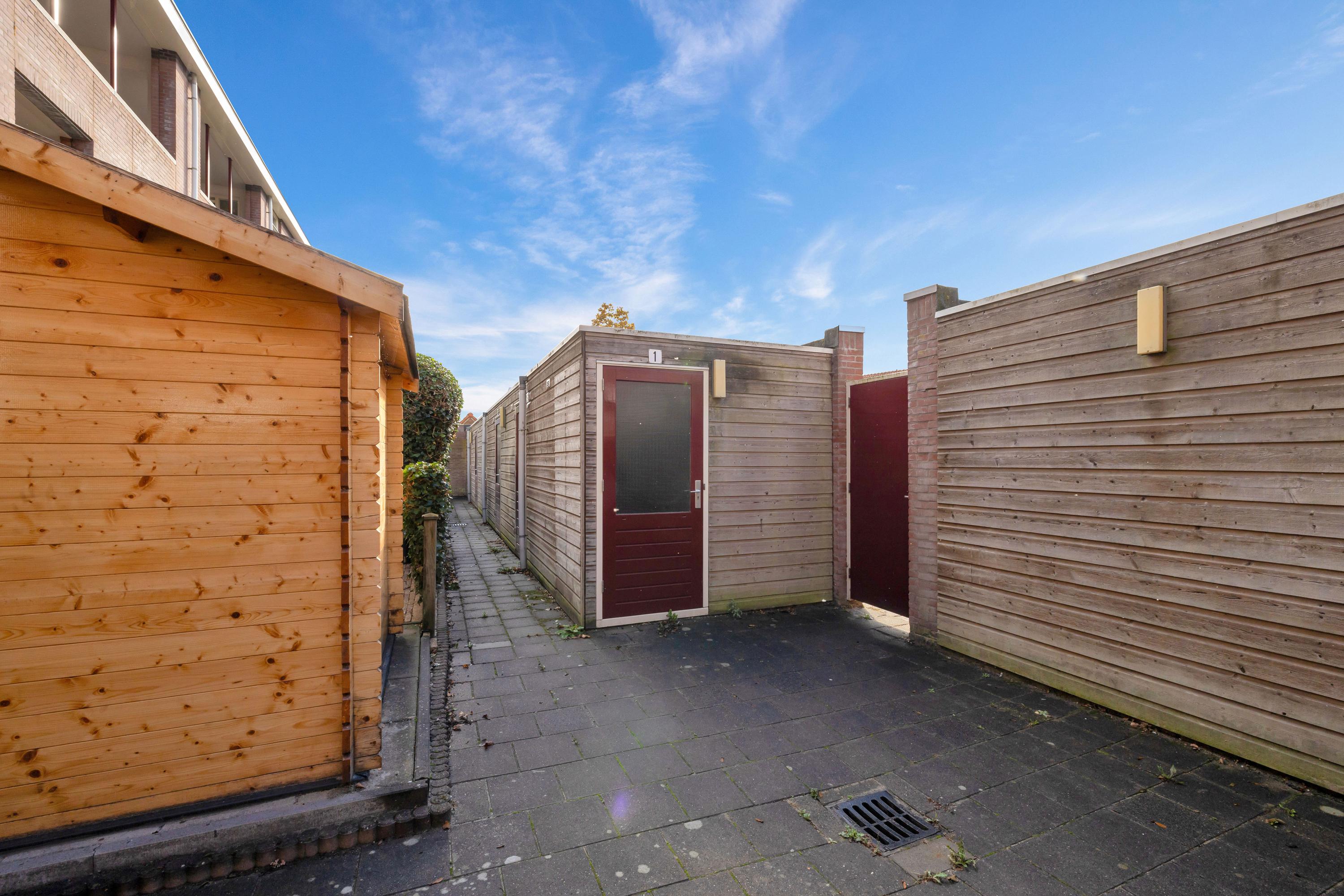 Het appartement beschikt op de begane grond over een eigen houten (fietsen)berging, welke is voorzien van elektra.