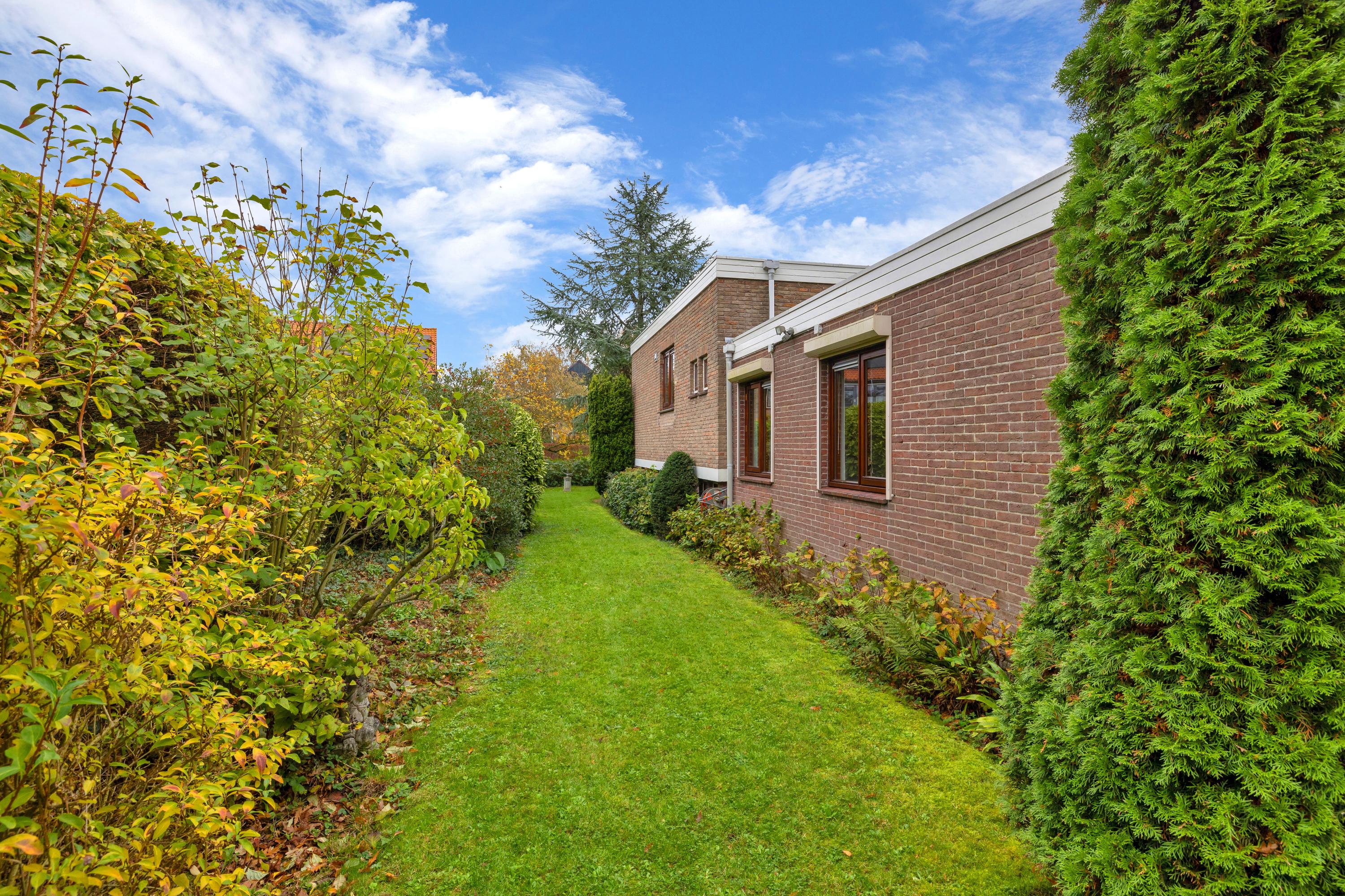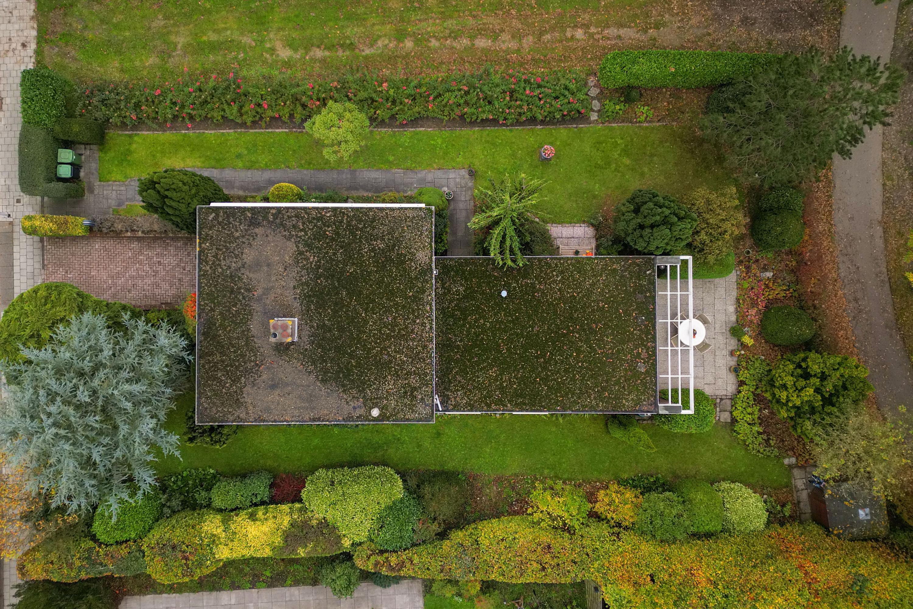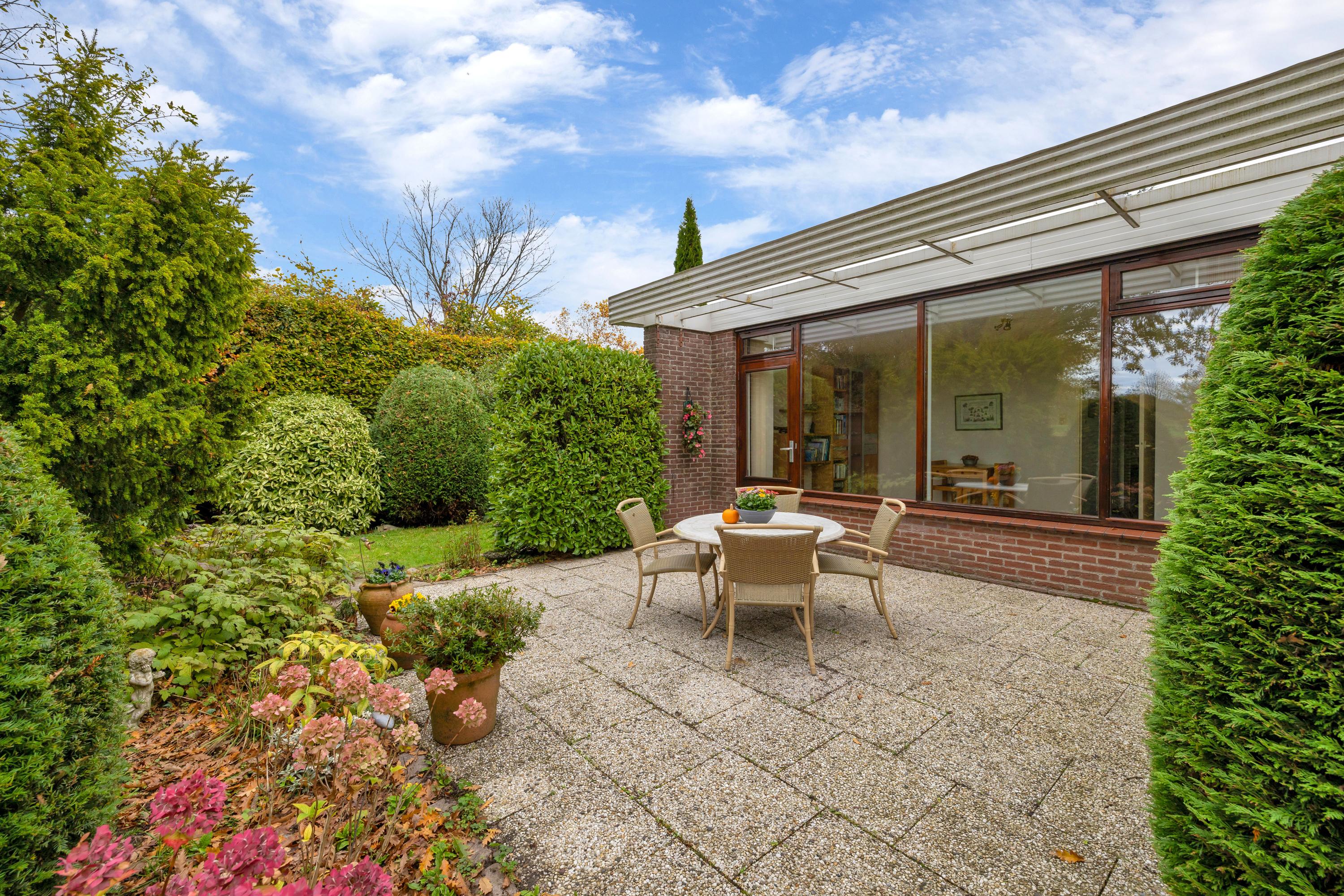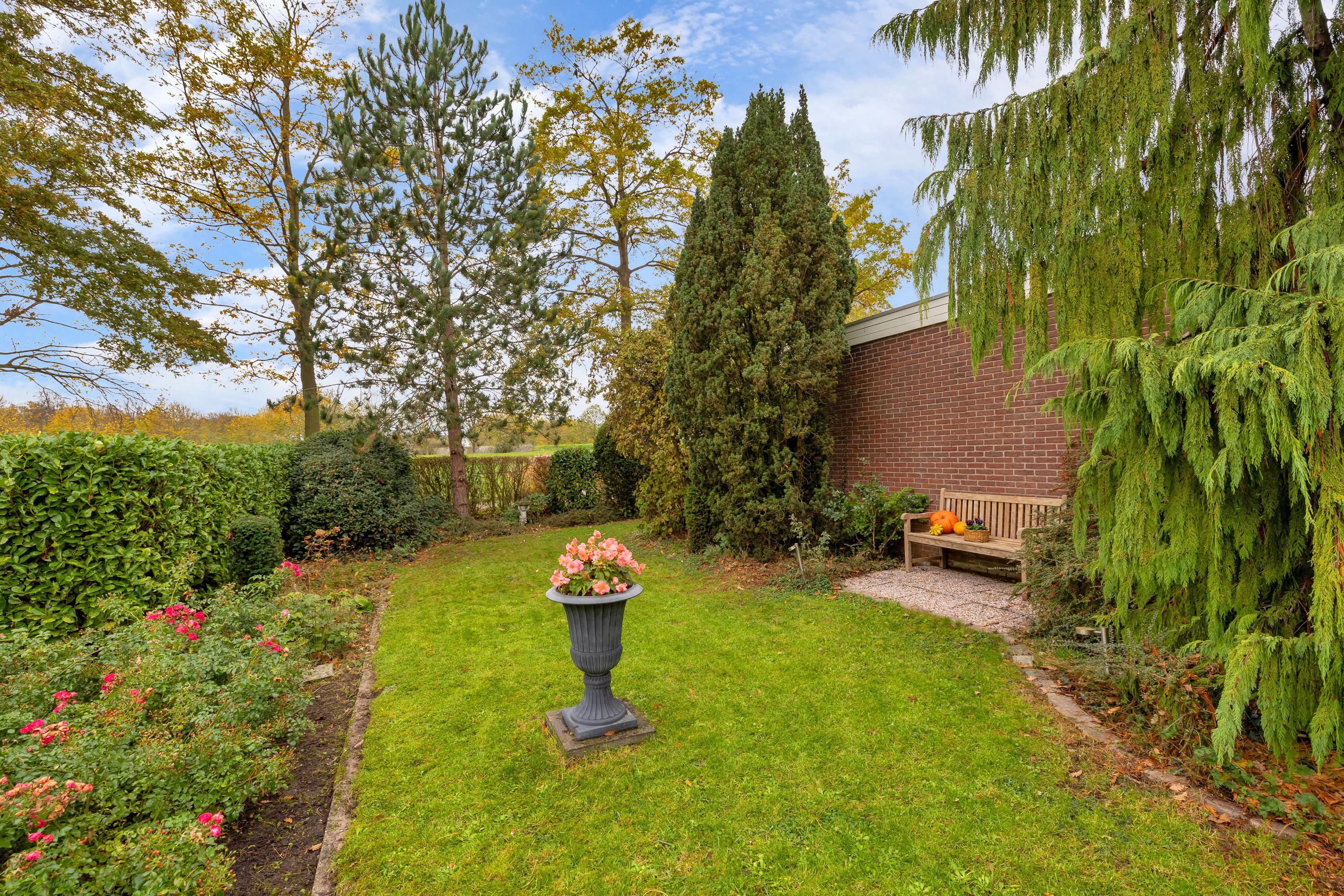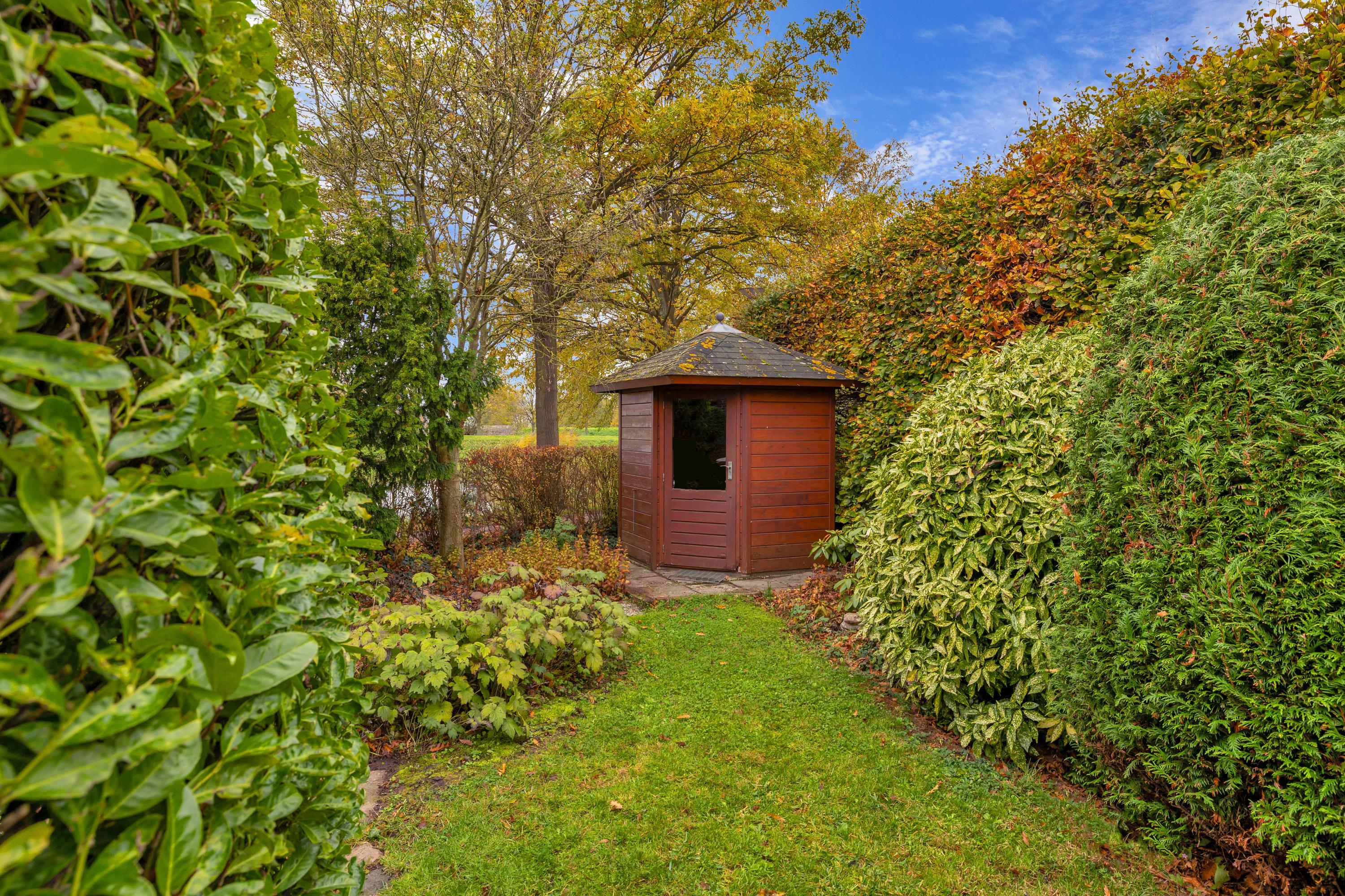 De bungalow ligt op een prachtig perceel met een groene borders rondom. De tuin biedt veel privacy, met aan de voorzijde een afrit naar de garage. Rondom is er volop ruimte voor bloemen, planten en meerdere zitplekken waar je kunt genieten van de rust, het uitzicht en het buitenleven. Achter in de tuin bevindt zich bovendien een klein houten schuurtje, ideaal voor het opbergen van tuingereedschap – praktisch én passend bij het groene karakter van de tuin.