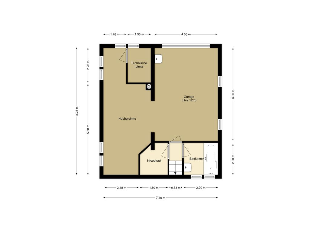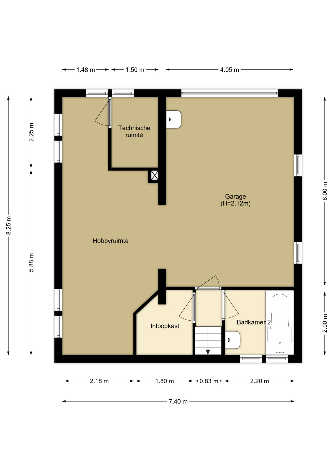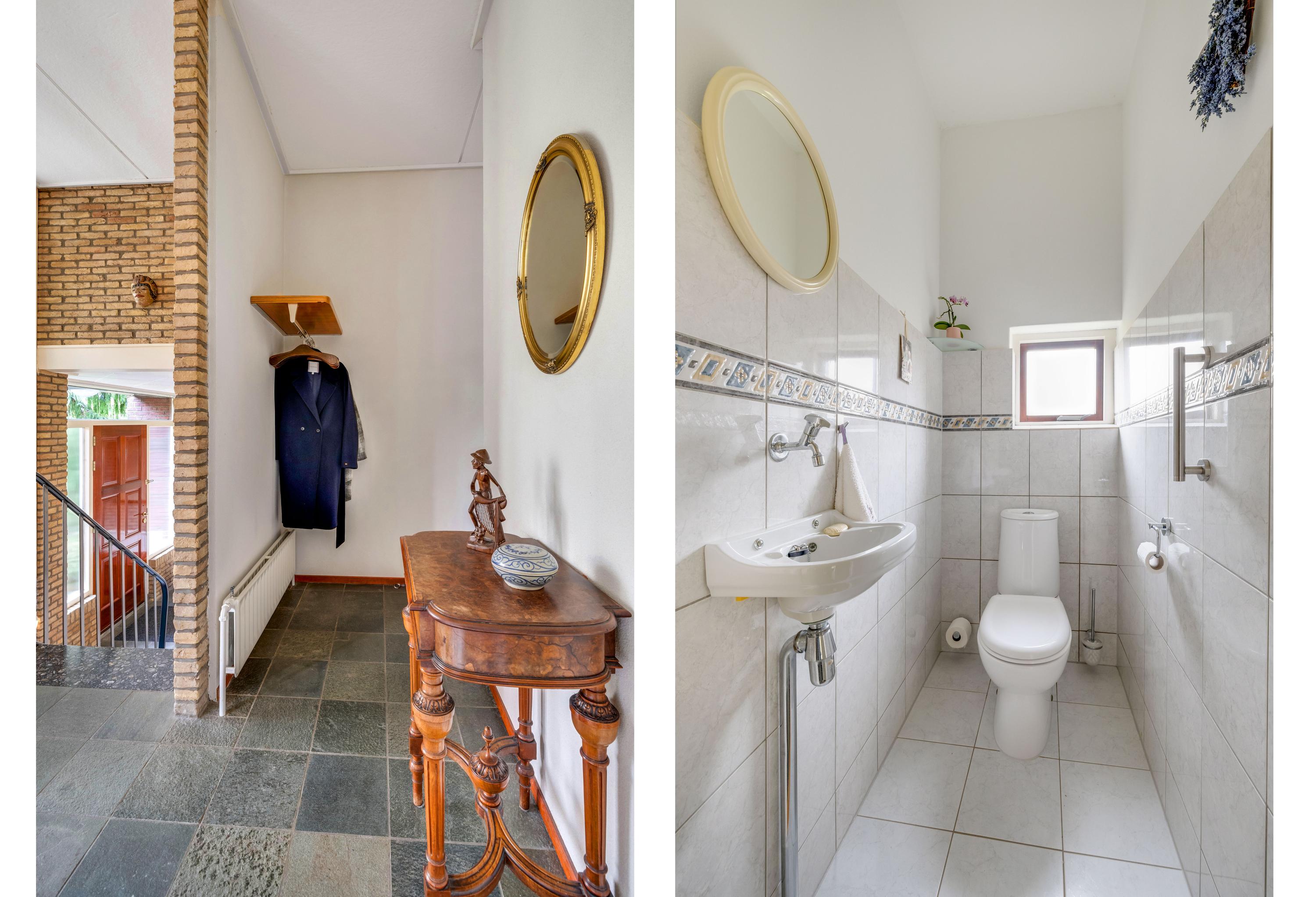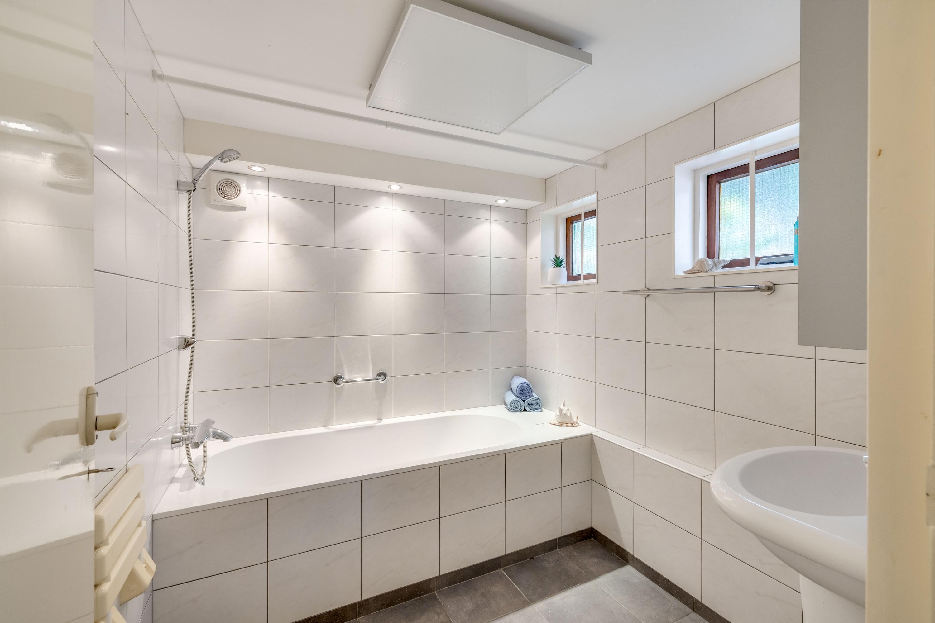 Via een trapje bereik je de lagergelegen verdieping, waar zich een halletje met trapkast bevindt. Hier vind je ook een tweede badkamer, voorzien van ligbad met douche voorziening en wastafel. Het aanwezige raam zorgt voor natuurlijk licht en ventilatie. Vanuit het halletje kom je in de ruime garage, voorzien van een elektrische sectionaaldeur, elektra, wateraansluiting en een stookruimte met de opstelling van cv-combiketel (ATAG, 2018). Dankzij de hellingafrit aan de buitenzijde is de garage uitstekend bereikbaar en praktisch in gebruik.