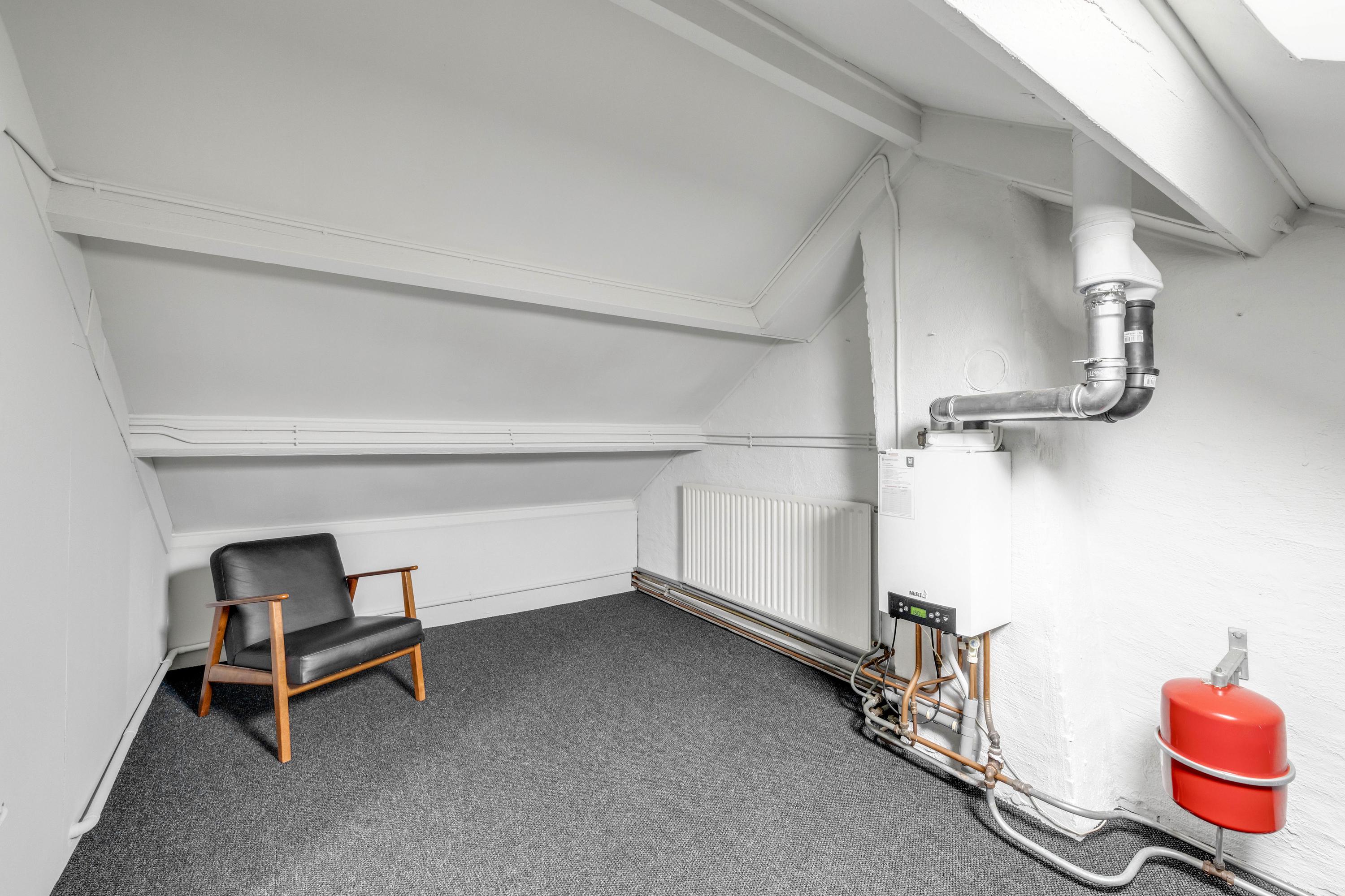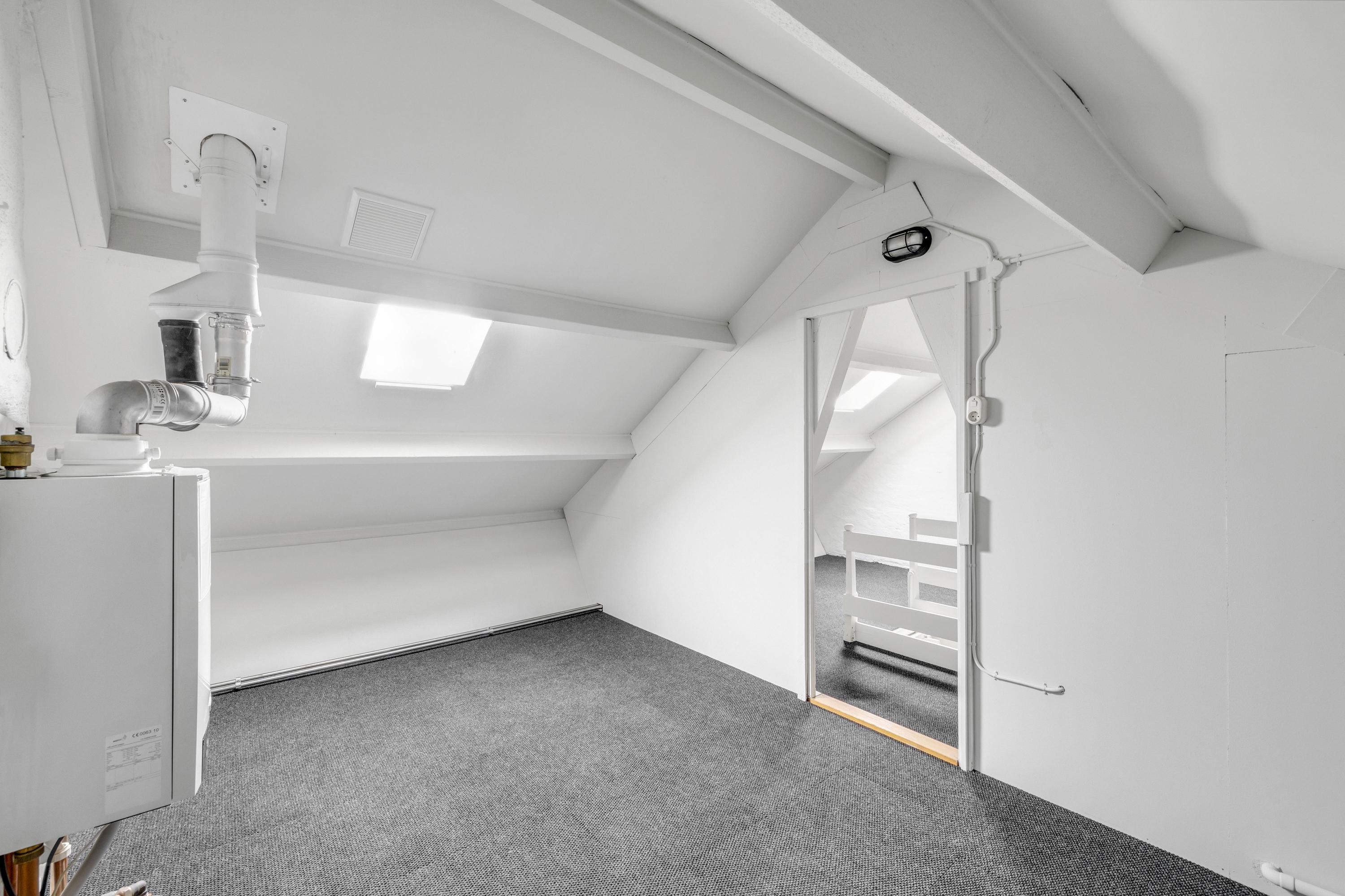 Deze ruimte met dakraam zou met een vaste trap kunnen dienen als vierde slaapkamer. De vloer is v.v. tapijt en hier bevindt zich de cv ketel.