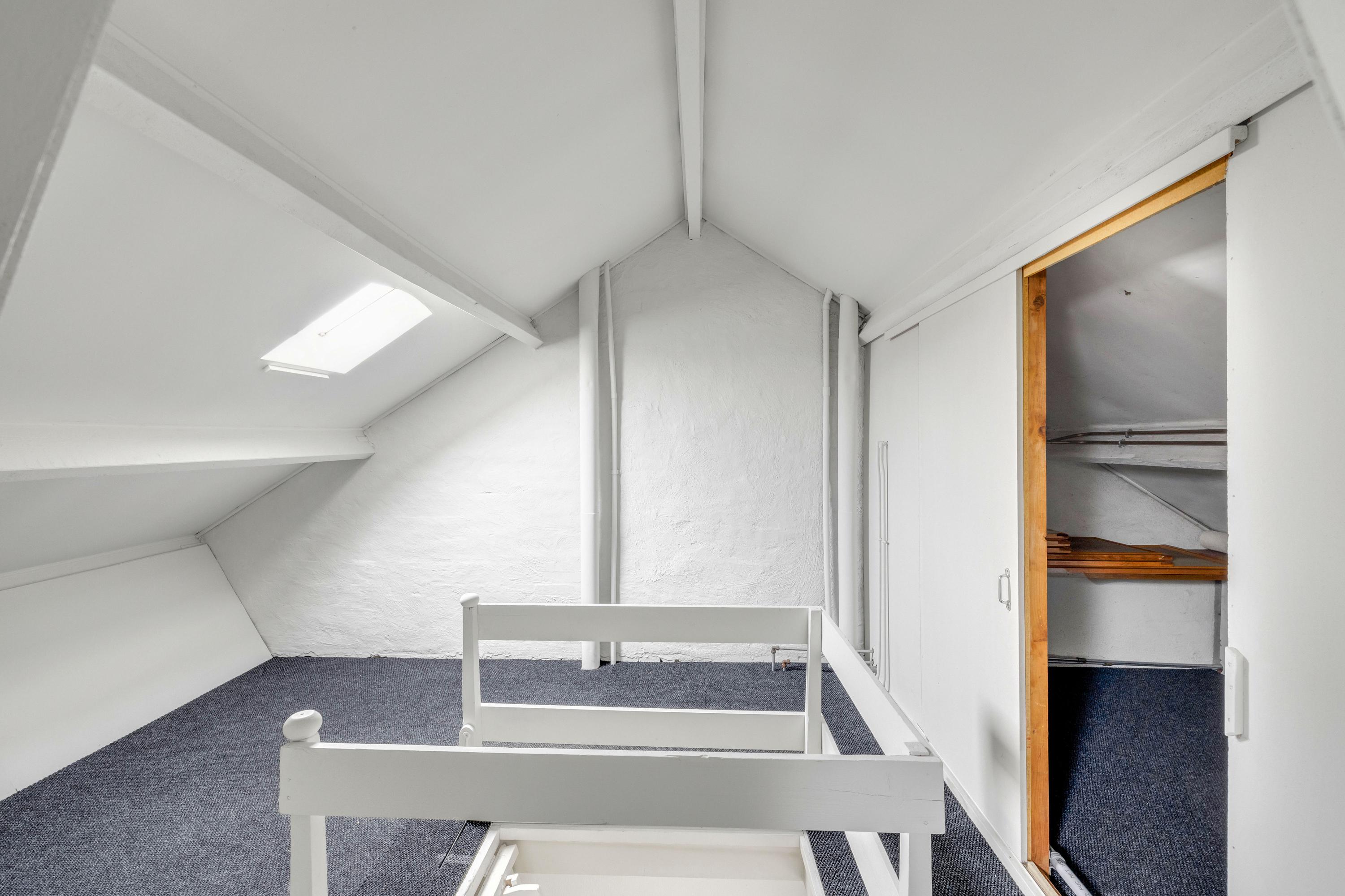 Via de vlizotrap is de zolder bereikbaar. Voorzolder met bergruimte en dakraam.