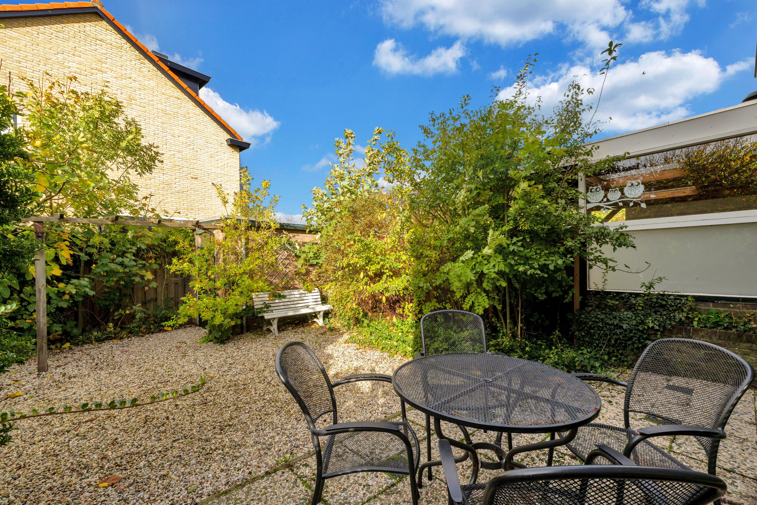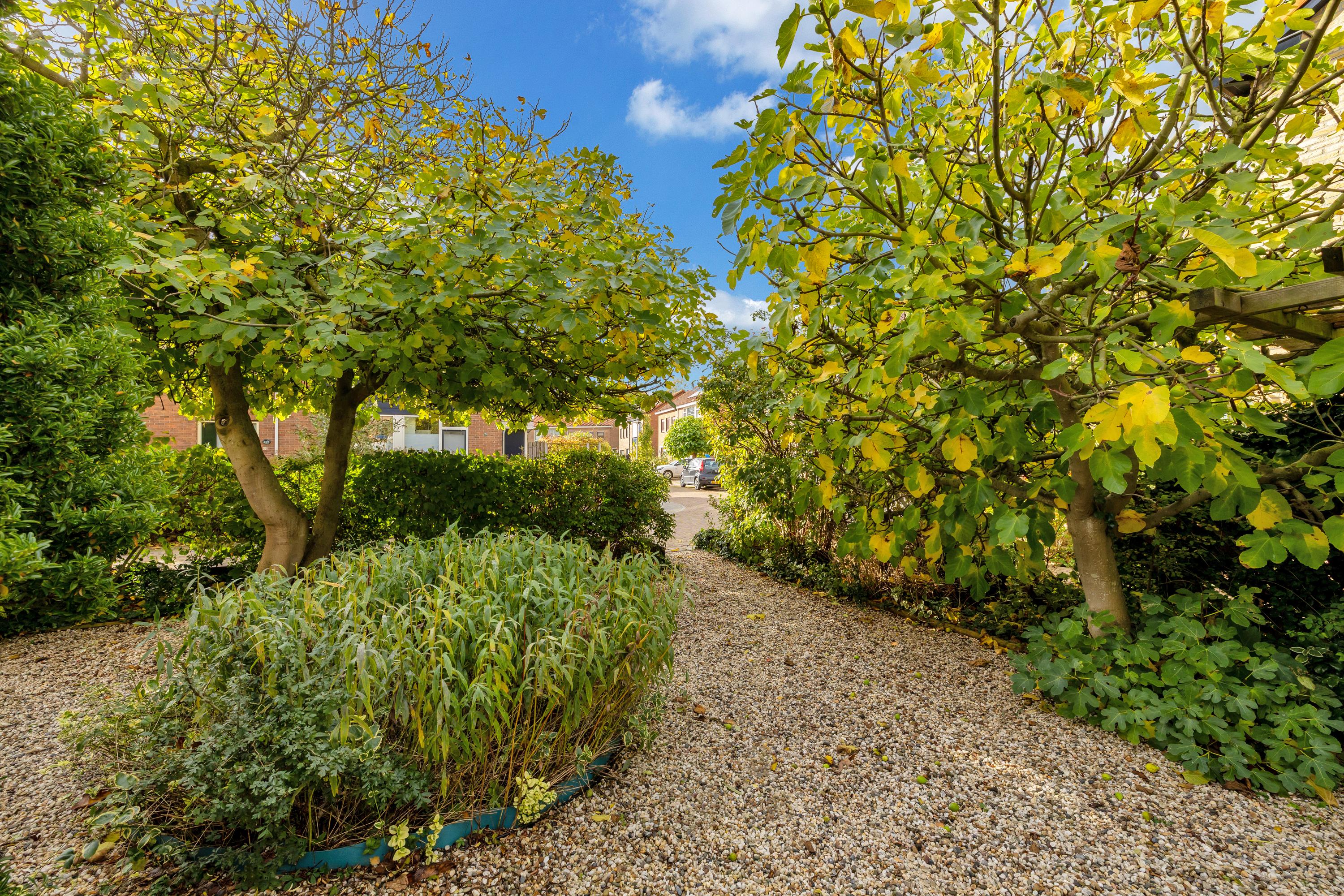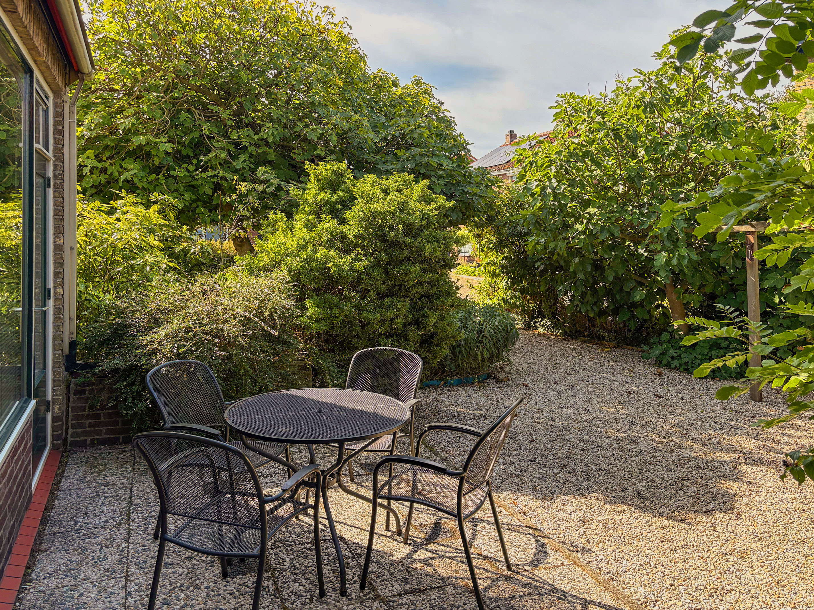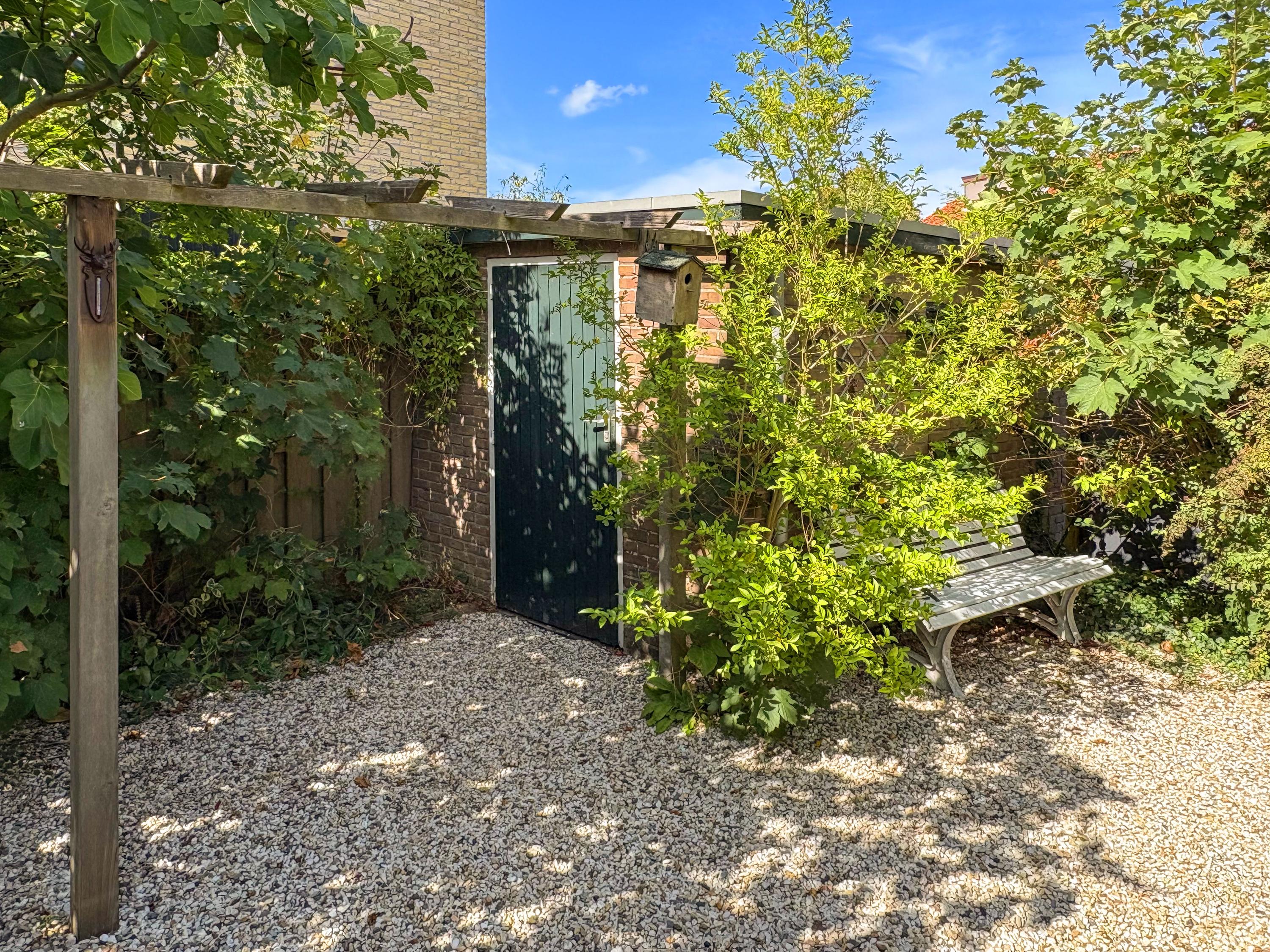 De ruime tuin rondom de woning is voorzien van een terras, grind, borders en een vrijstaande stenen schuur. Door de volwassen beplanting is het een fantastische plek. Ook de ruimte om aan te bouwen is aanwezig. De zonligging is goed met zuid/ zuidwest.