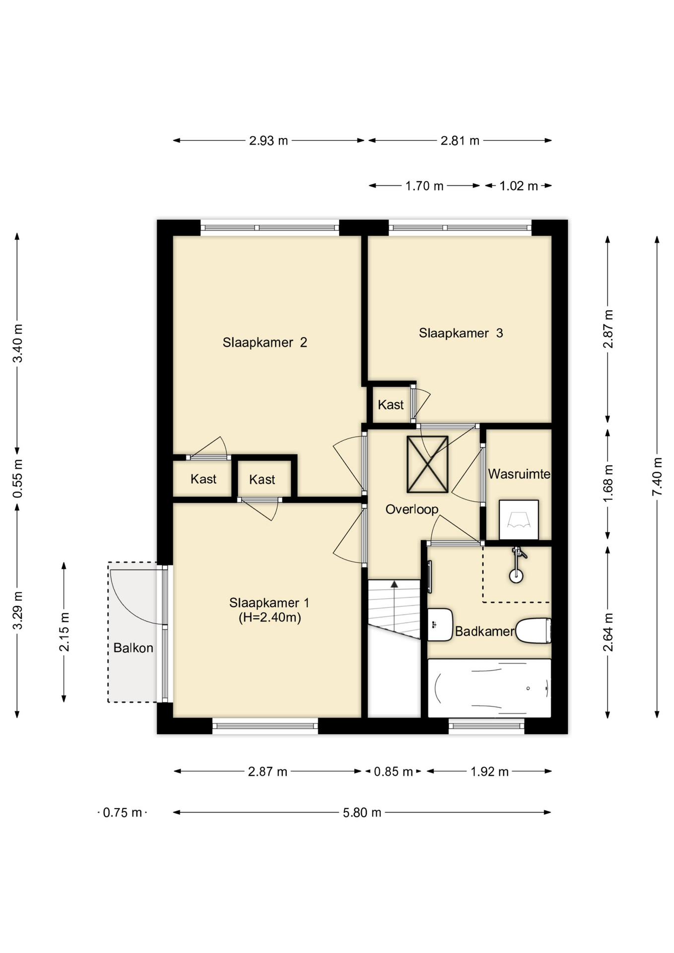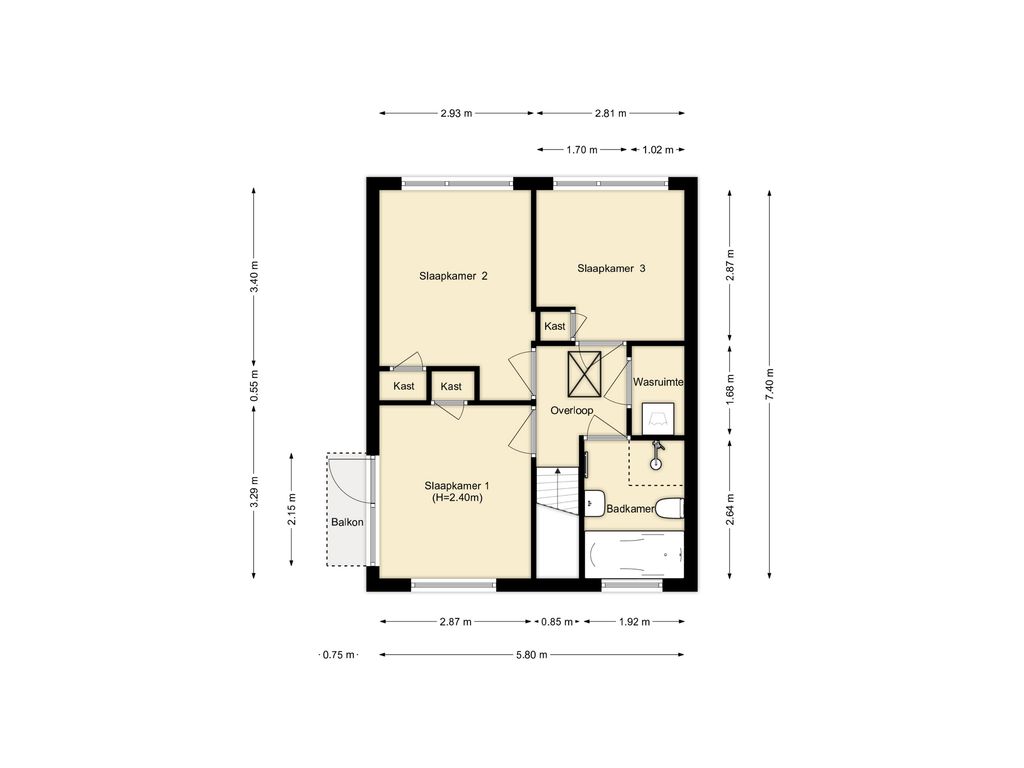 Slaapkamer III - ca. 2.87 x 2.81 m