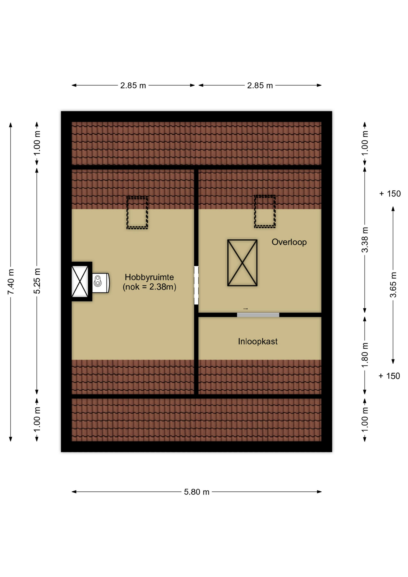 Hobbyruimte (optioneel slaapkamer IV) - ca. 5.25 x 2.85 m